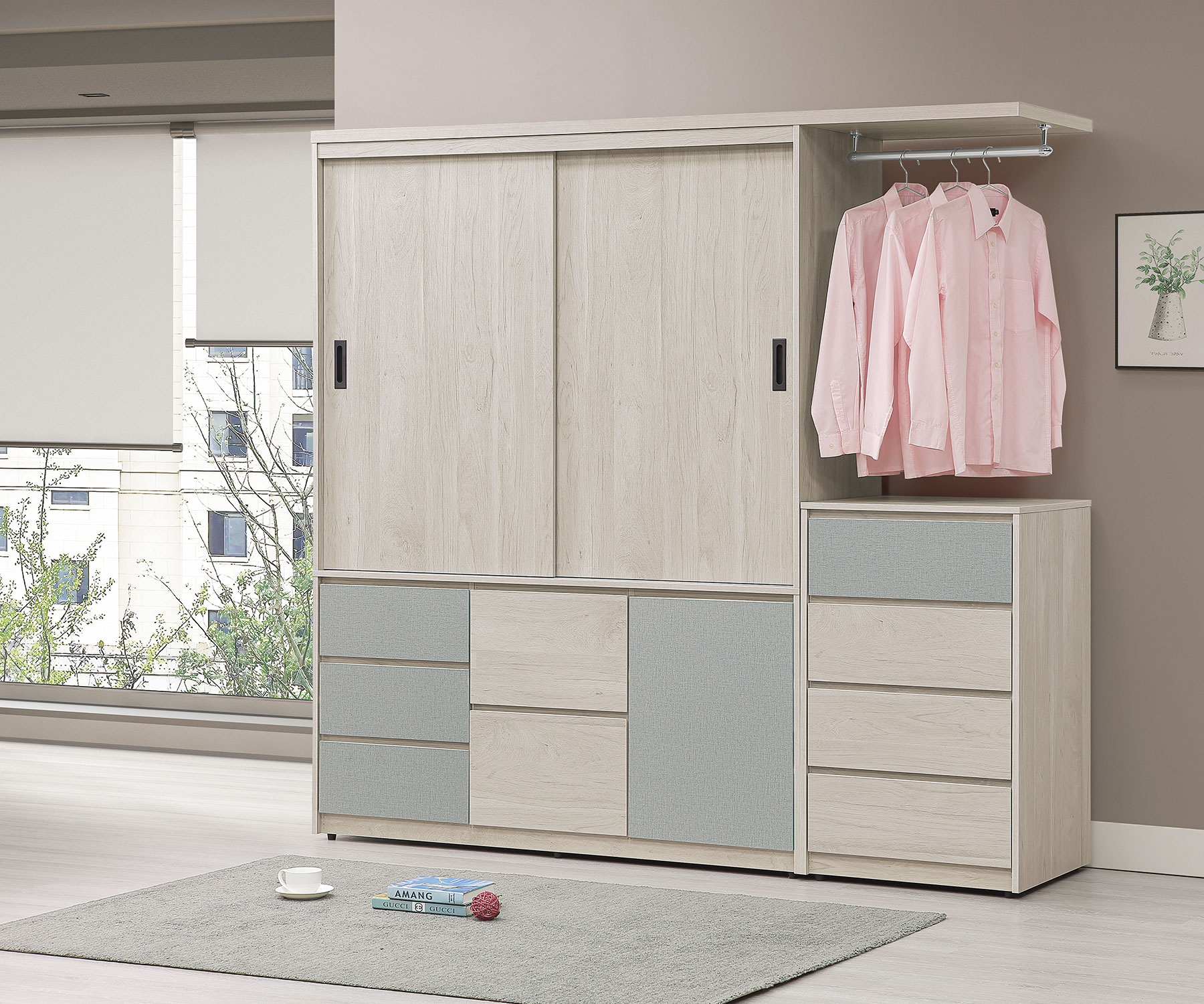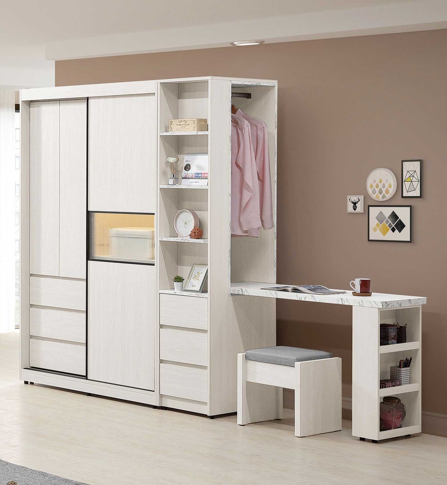 蘿拉4x6.5尺推門衣櫃(附燈)