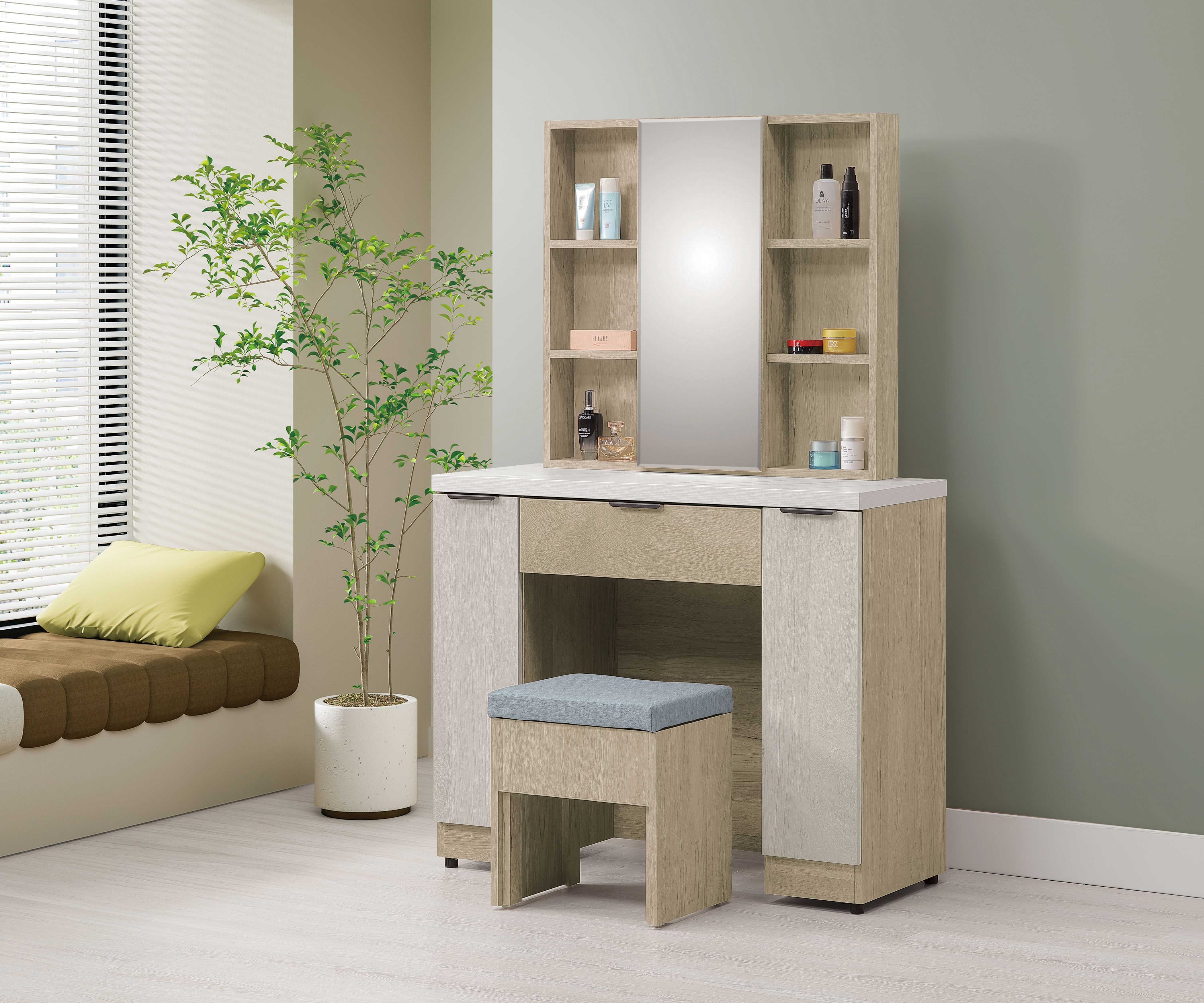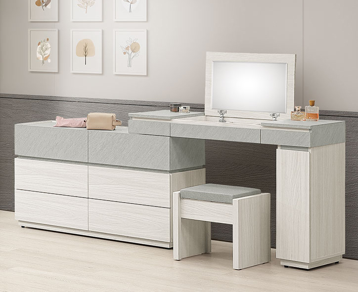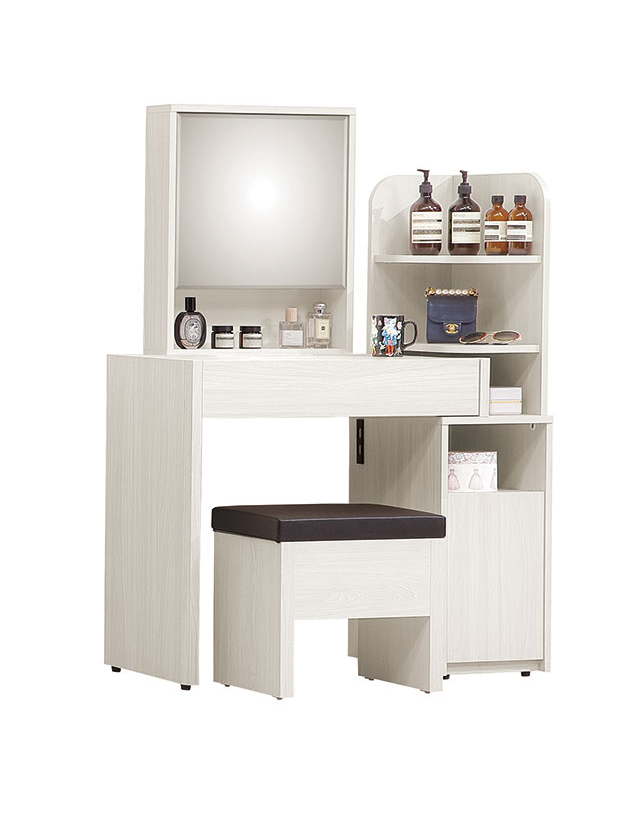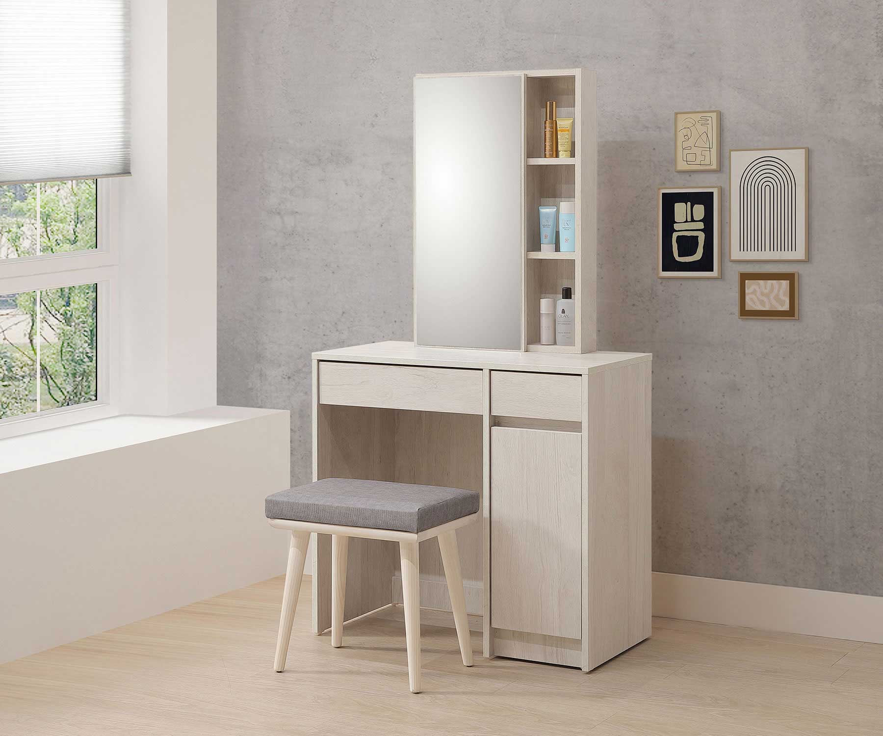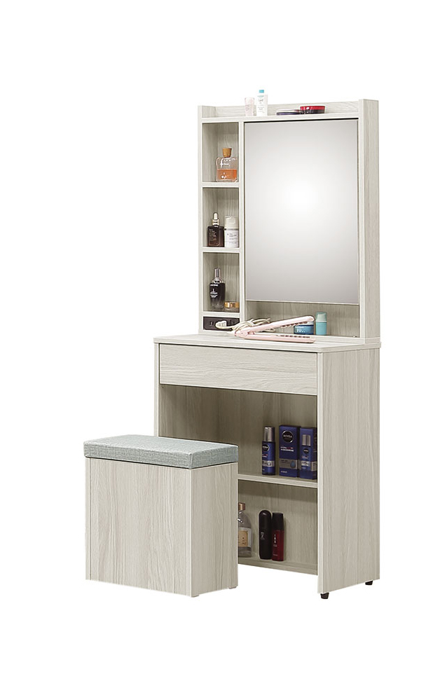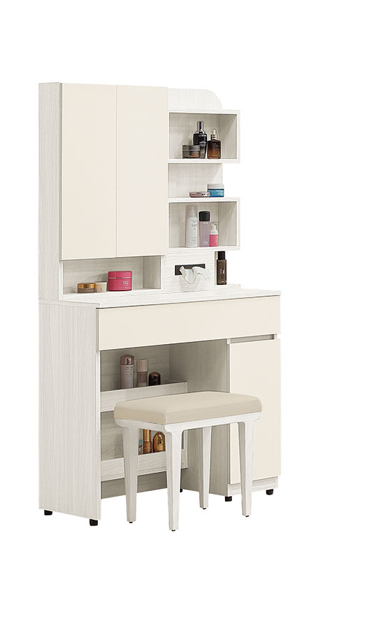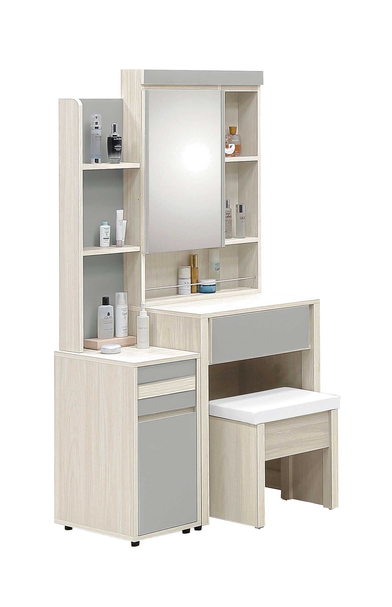 卡亞白梧桐色2.7尺掀式鏡台(含椅)