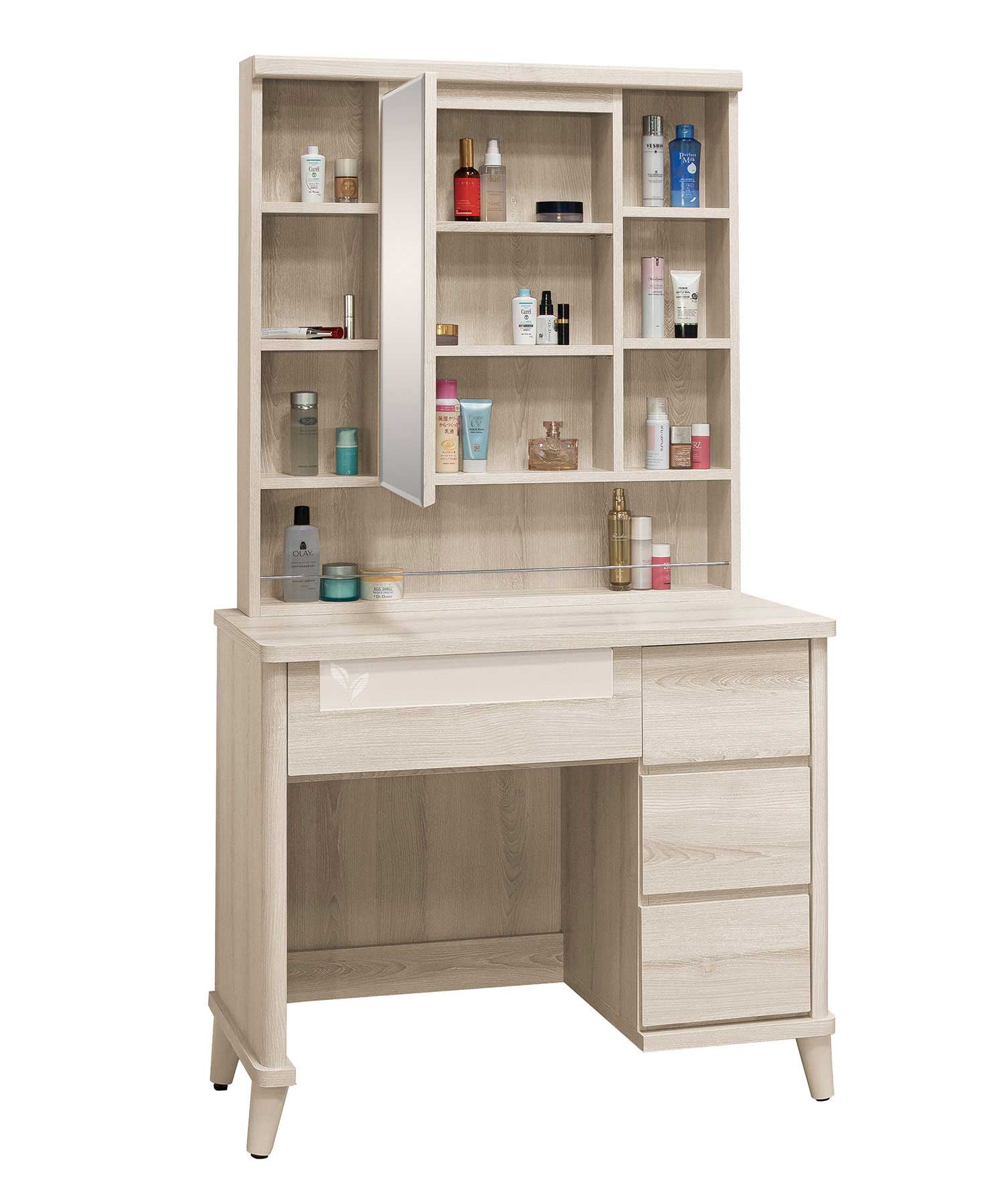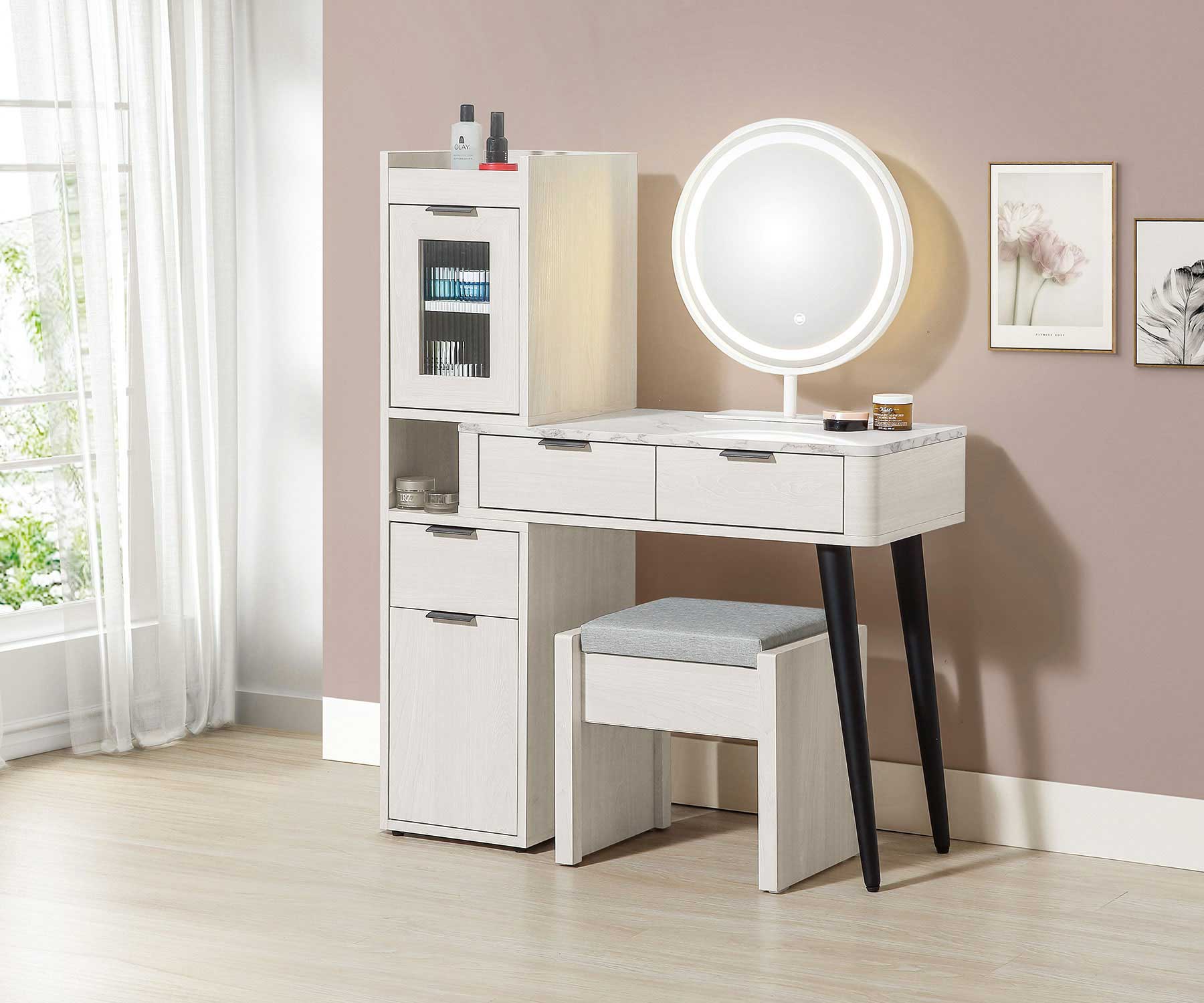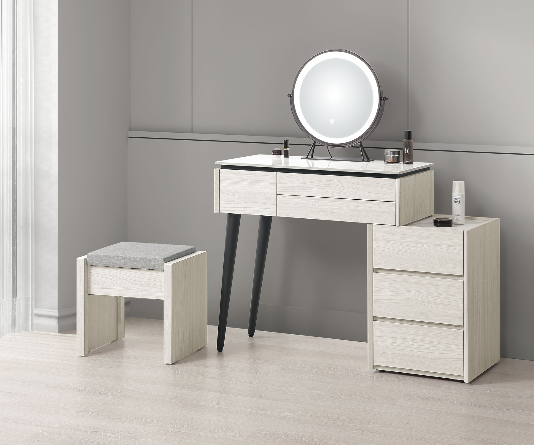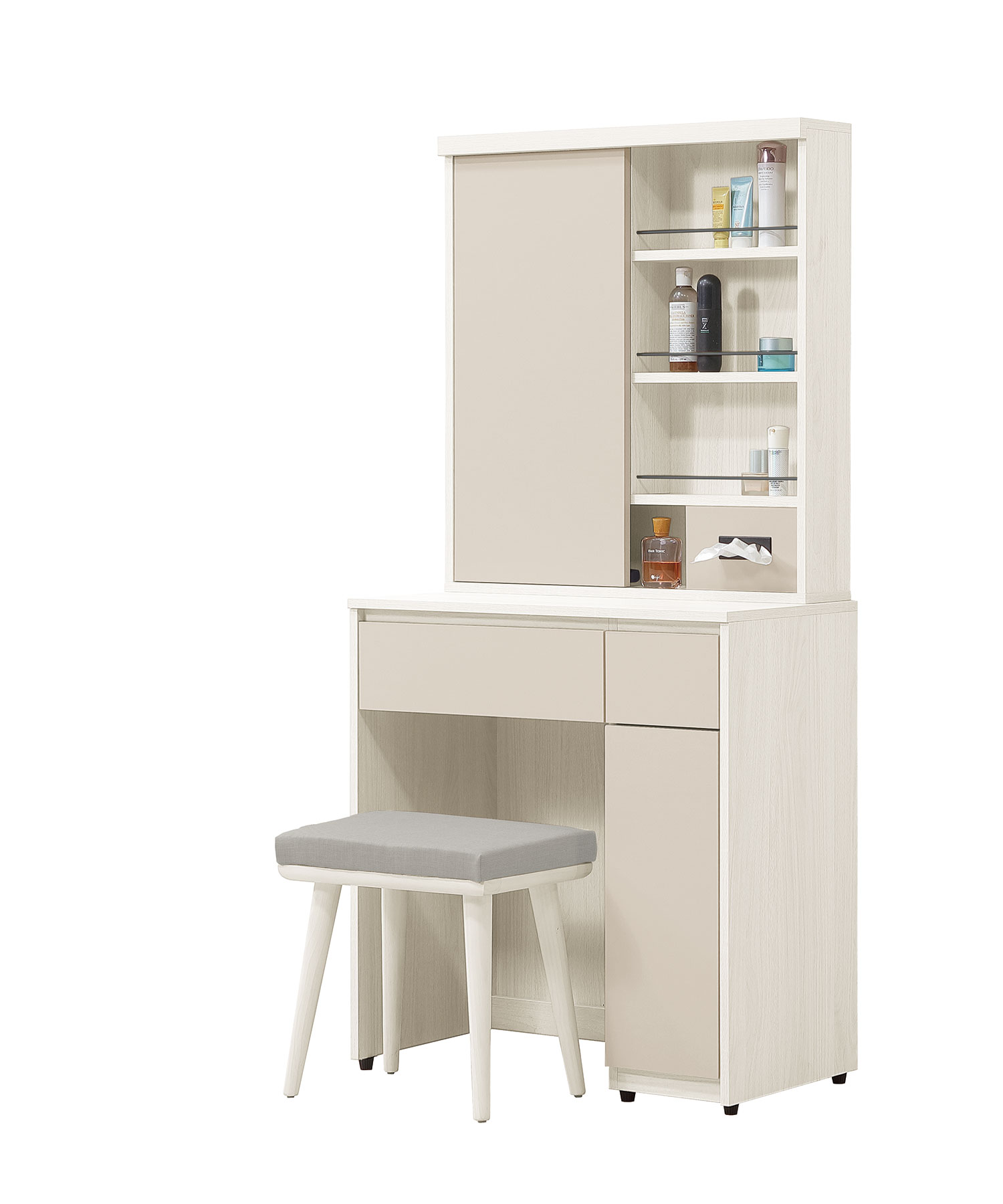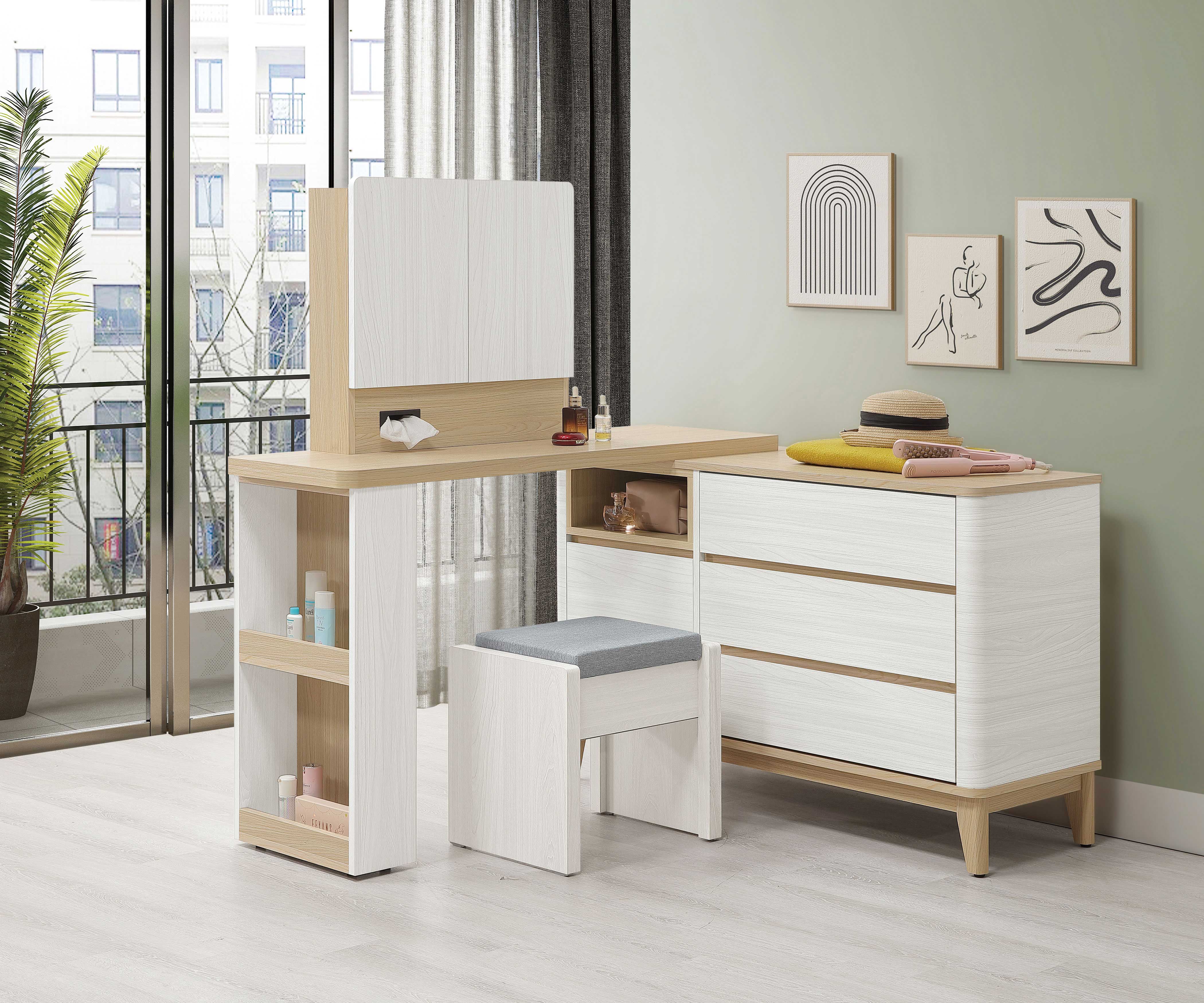 卡亞白梧桐色2.7尺掀式鏡台(含椅)