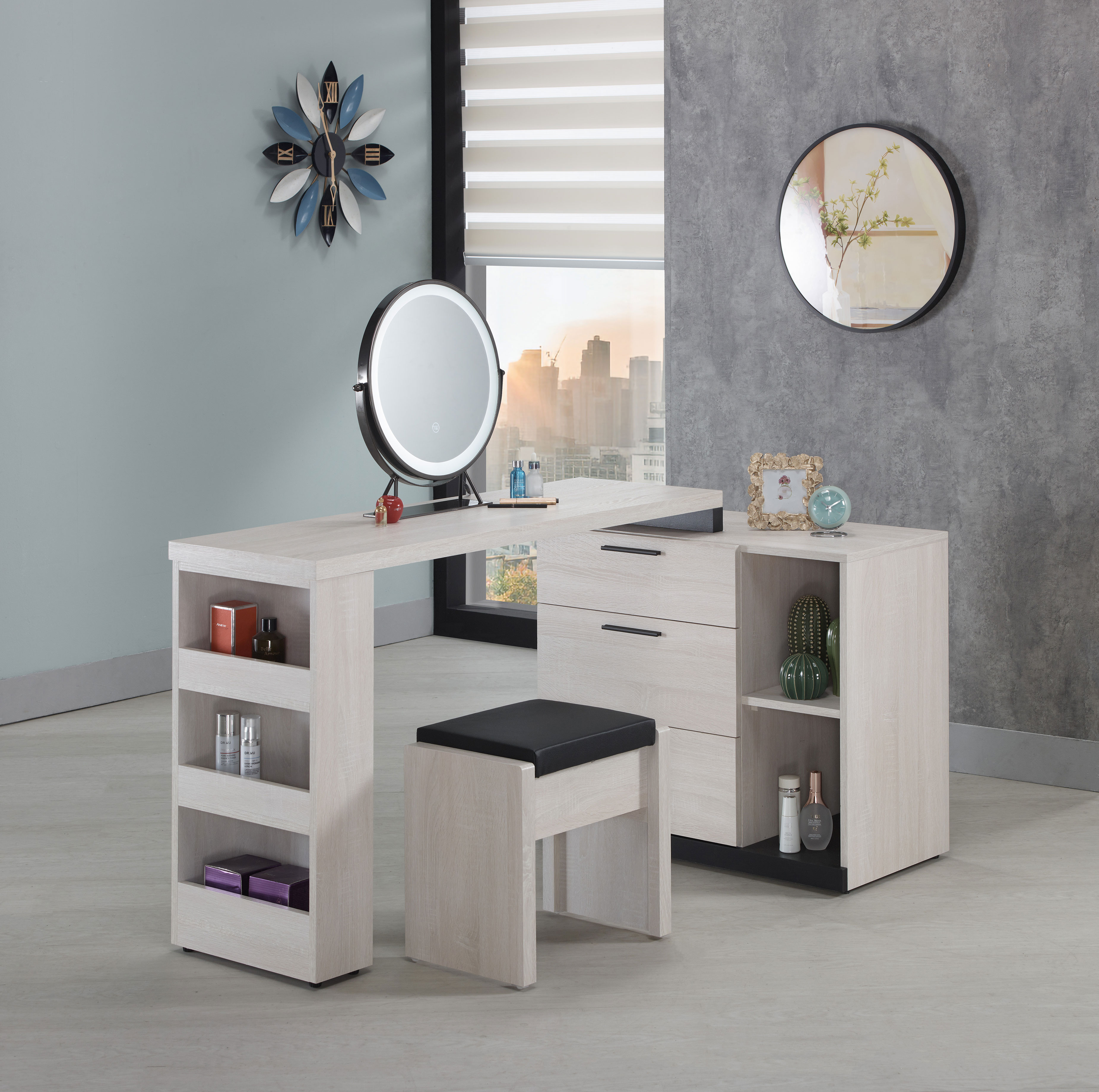 蘿拉5.28尺多功能組合鏡台(全組含椅)