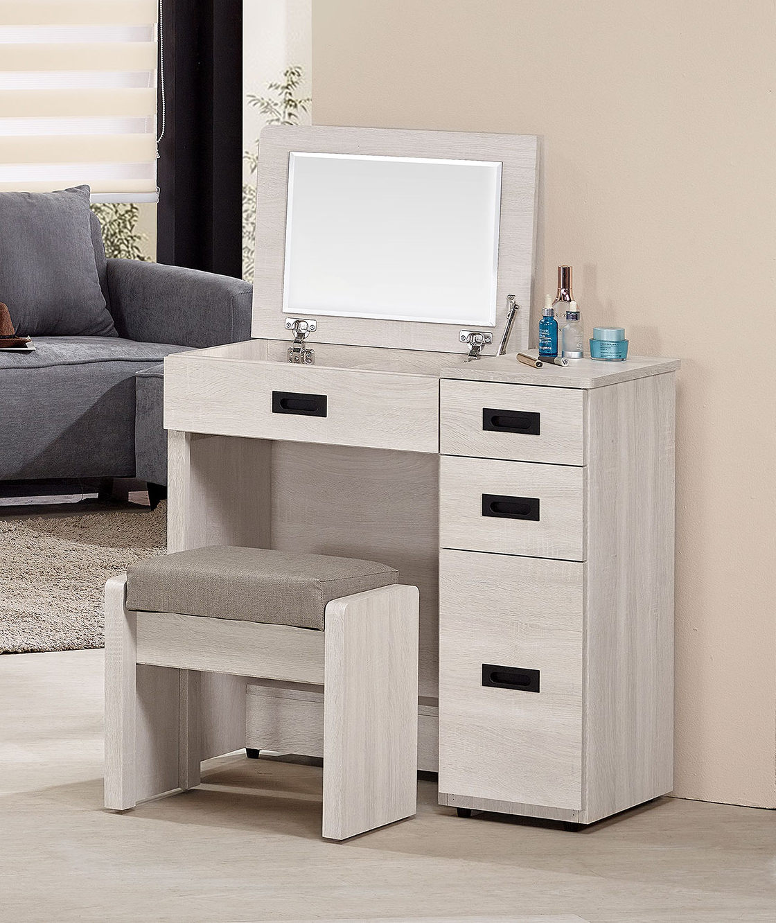 拉比灰橡2.7尺掀式鏡台(含椅)