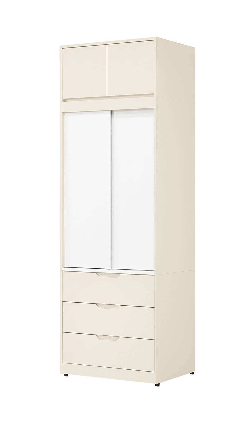 萊拉2x7.8尺三抽開放櫃 寬60.5x深40x高236.5(公分) (170900) (附3片活動隔板) (可視需求左右擺放) 202-6 萊拉2.65x7.8尺三抽推門衣櫃 寬80x深60.5x高236.5(公分) (216700) 202-8 萊拉2.65x7.8尺雙吊推門衣櫃 寬80x深60.5x高236.5(公分) (200900) |