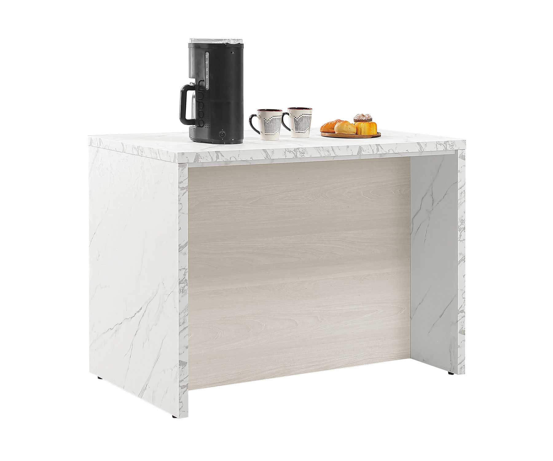蘿拉4尺中島型碗碟櫃 寬120.8x深70.5x高89(公分) B22106 (176700) (附1片活動隔板) (側板附1個出線孔蓋) (仿大理石紋美耐皿桌面) 材質說明請參考 815 頁 |