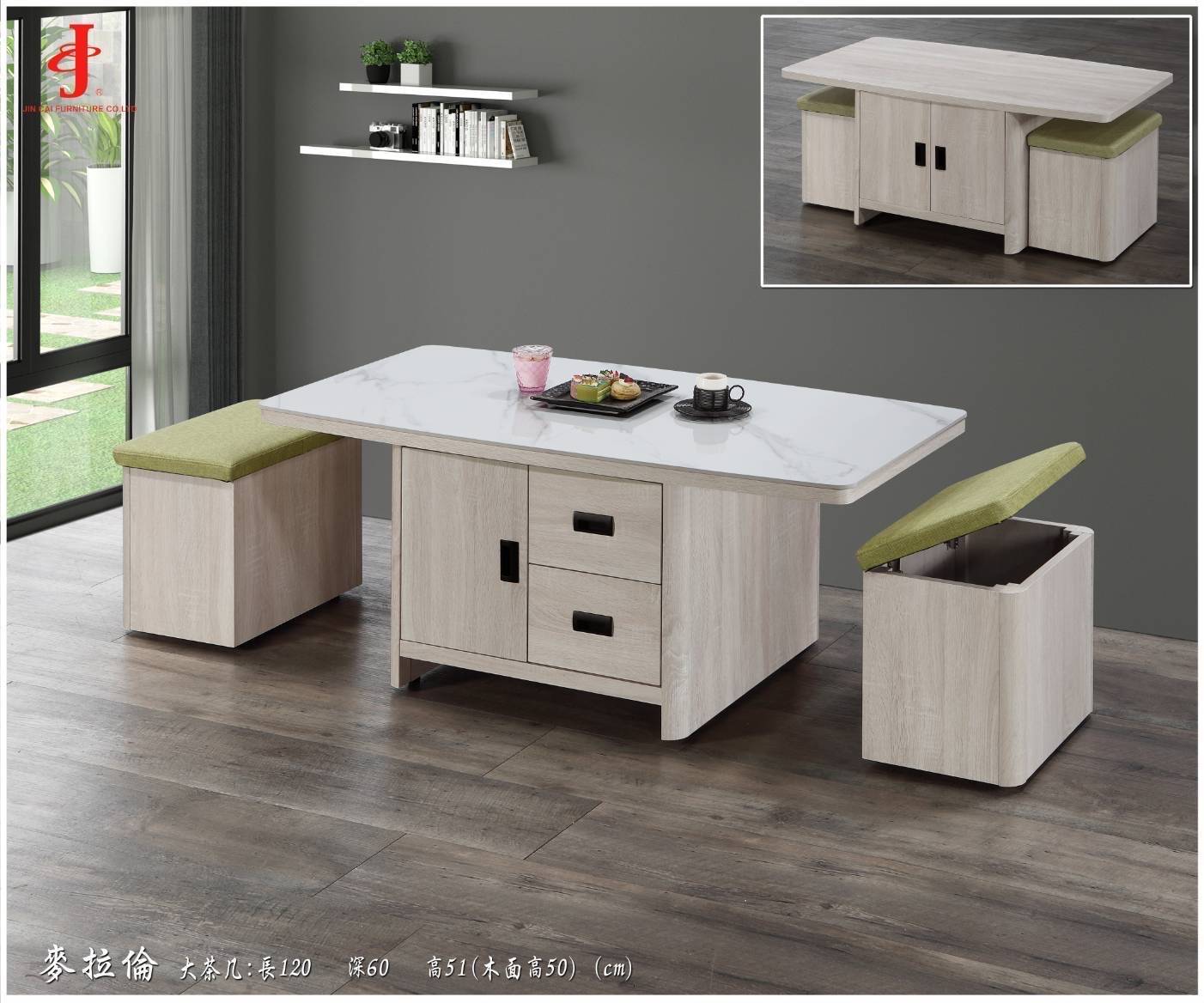 賀倫4尺二門大茶几