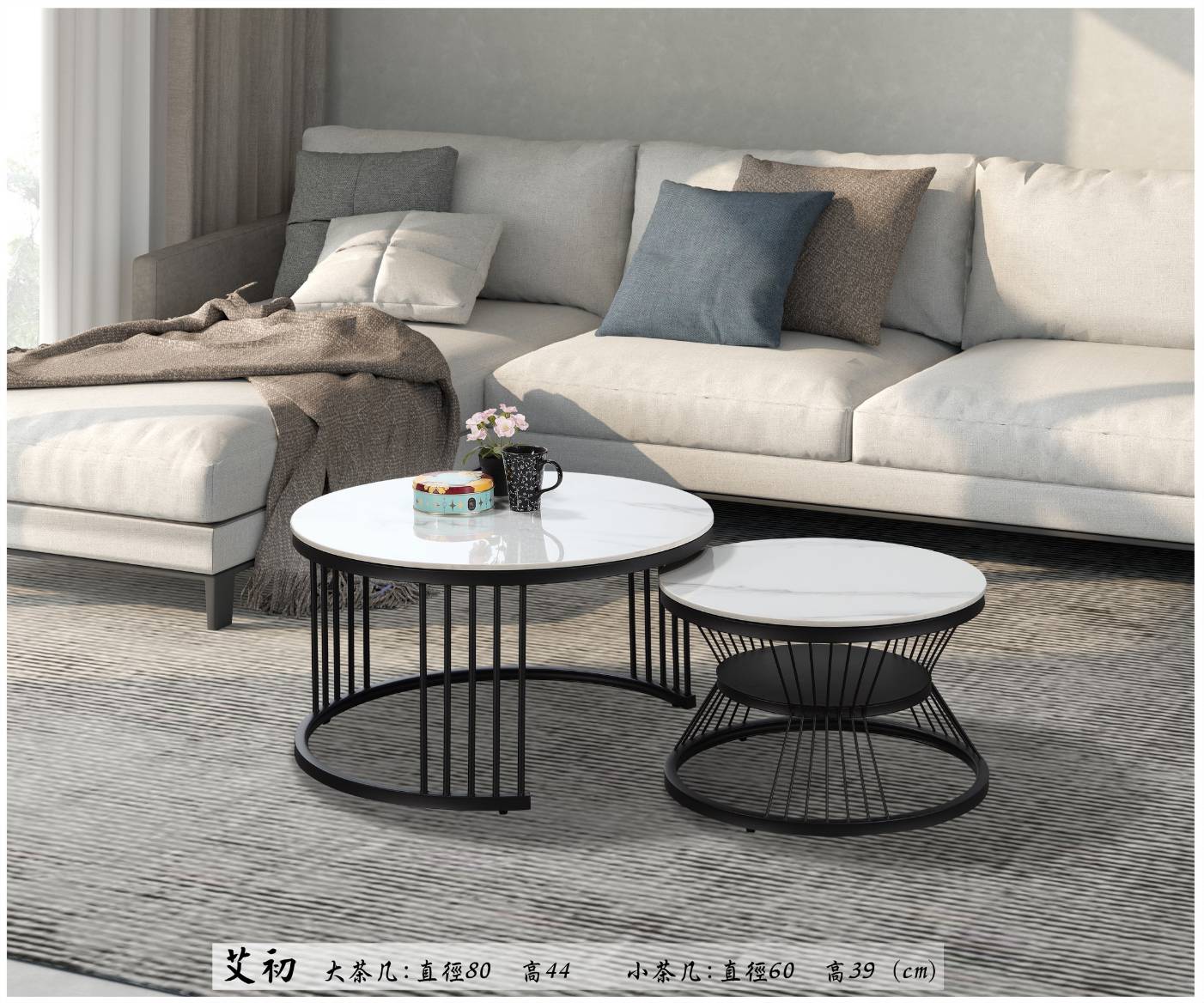 塔莎雙岩板組合圓几(全組)