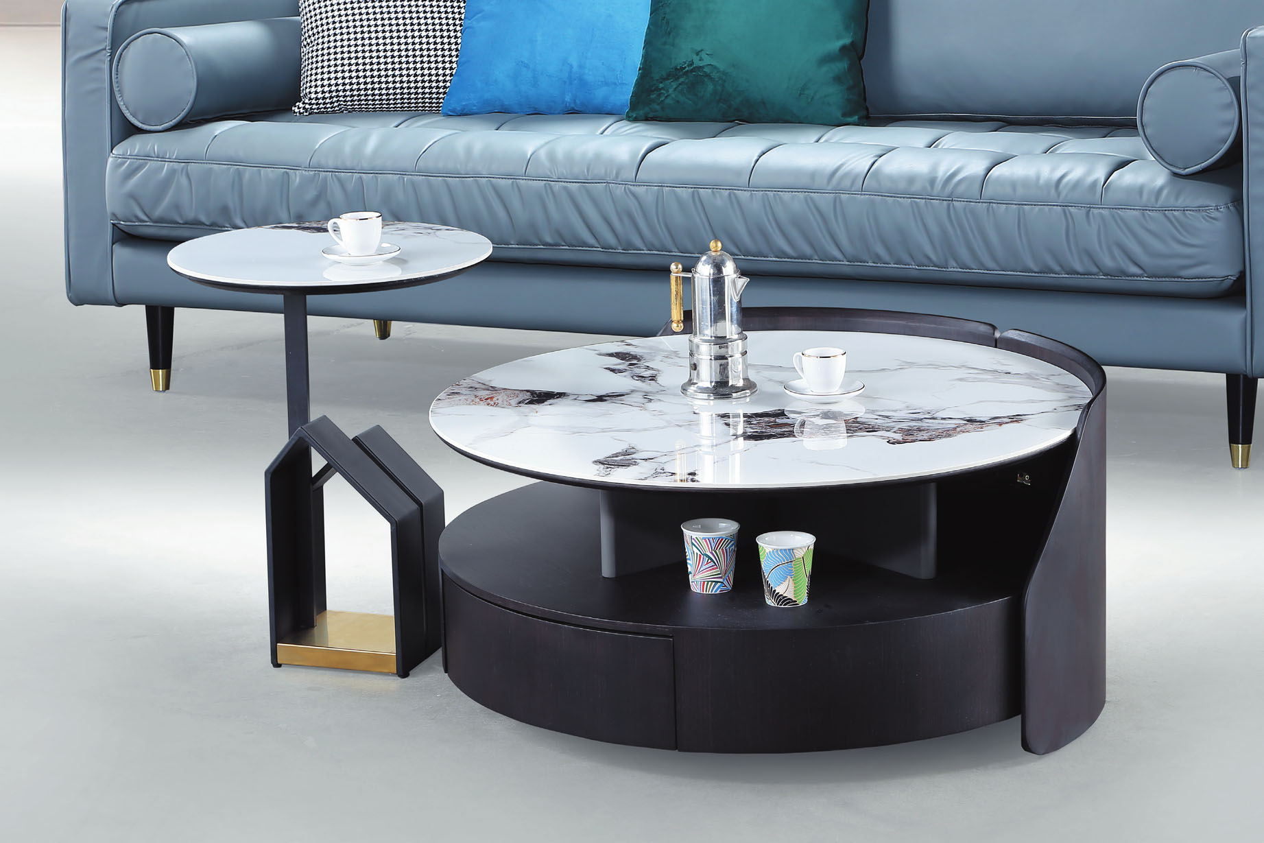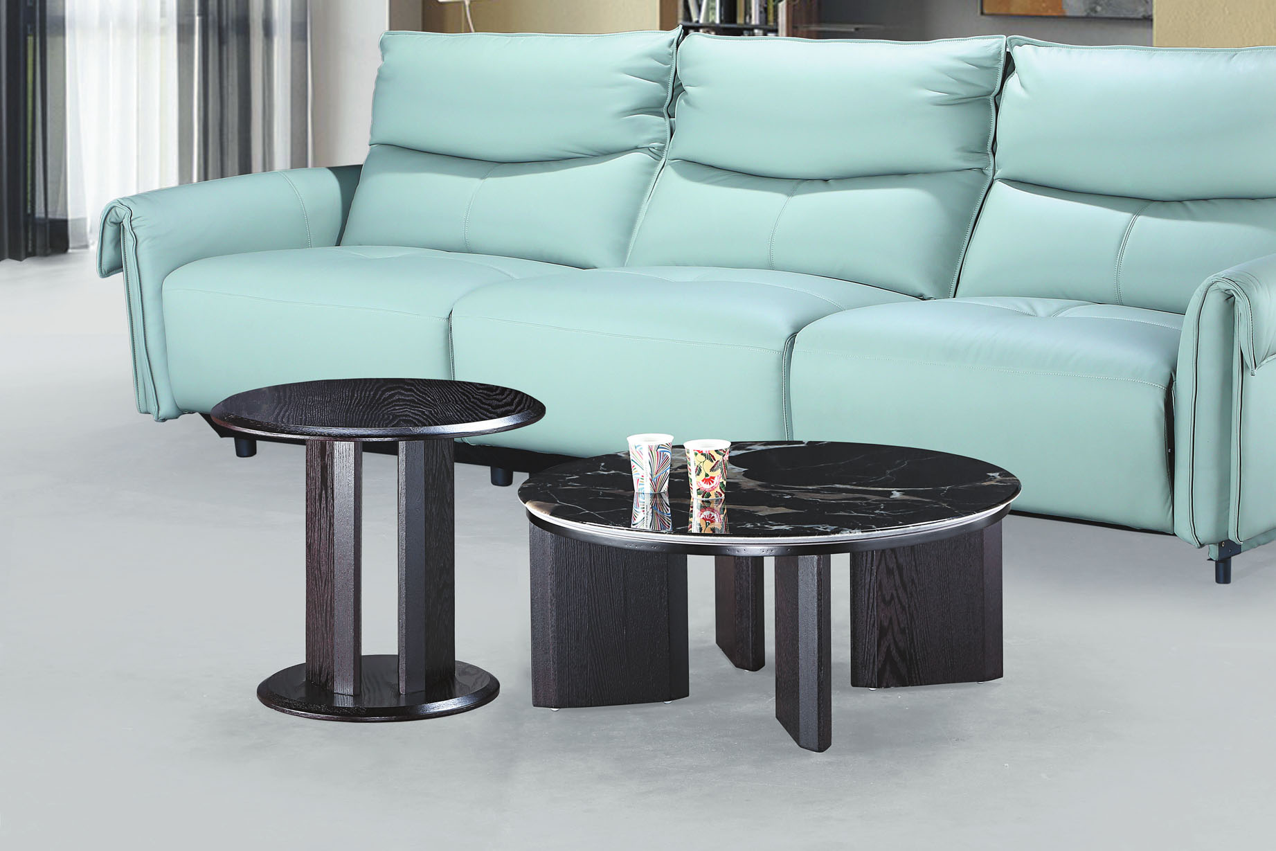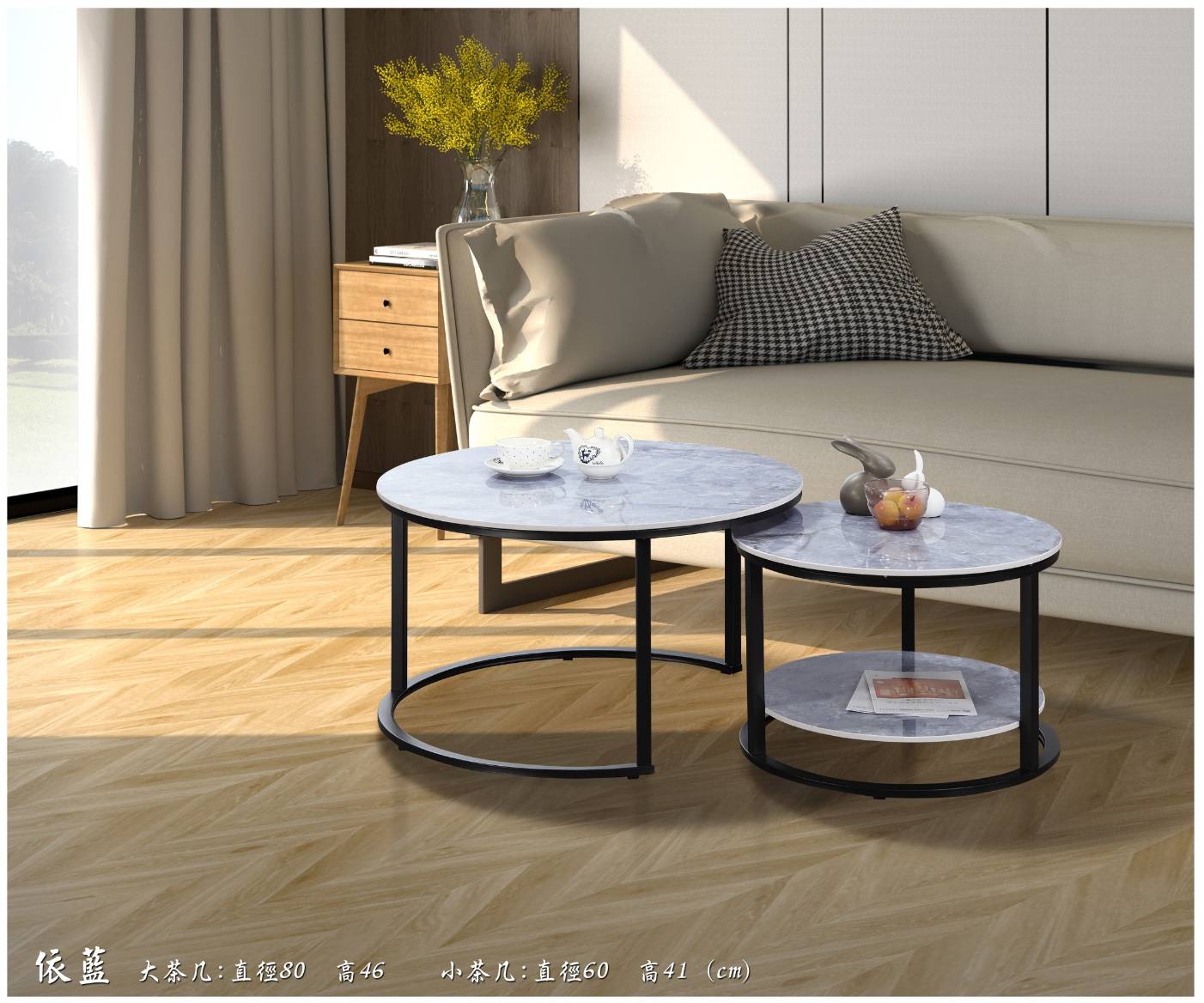 薩娃雙岩板組合圓几(全組)