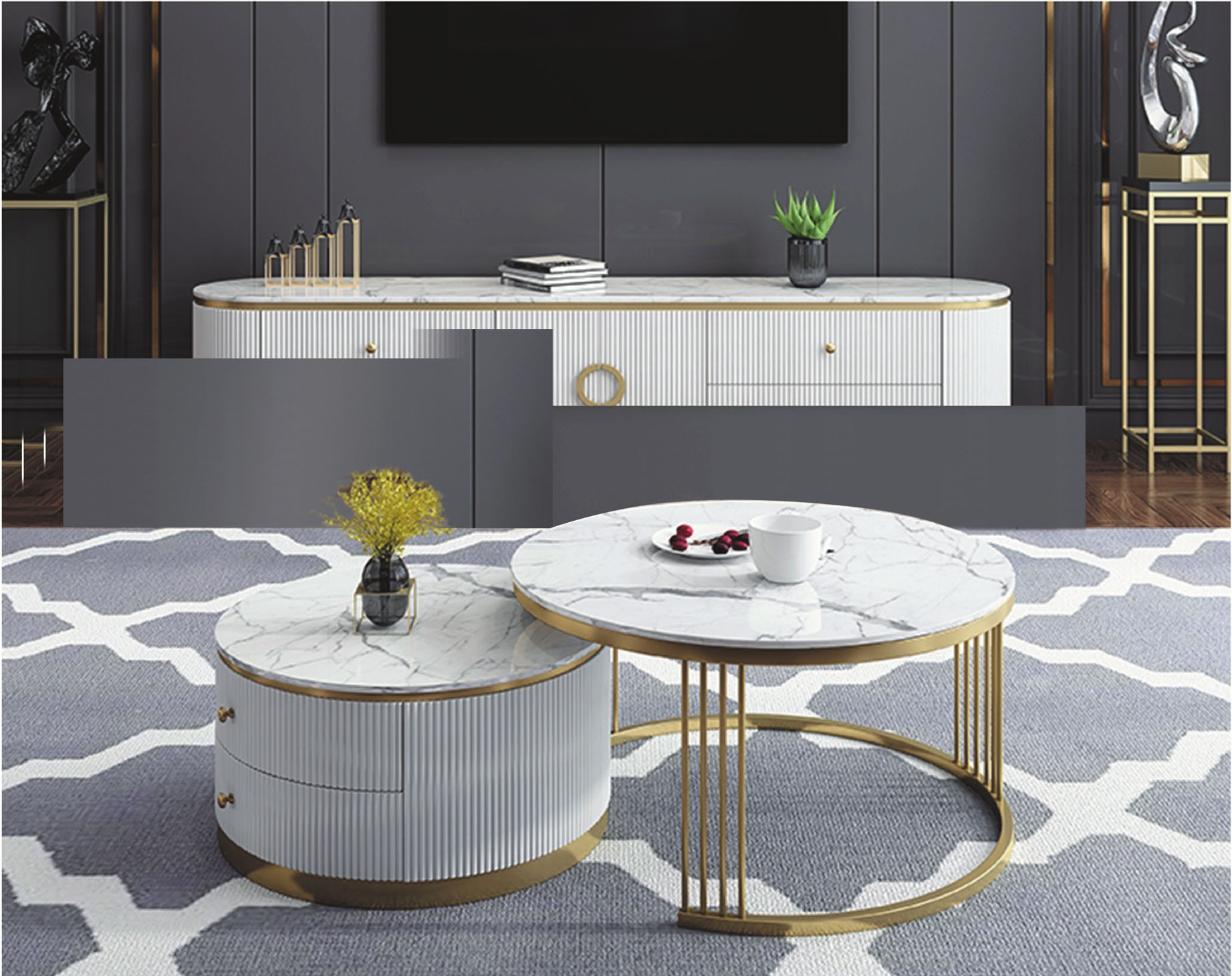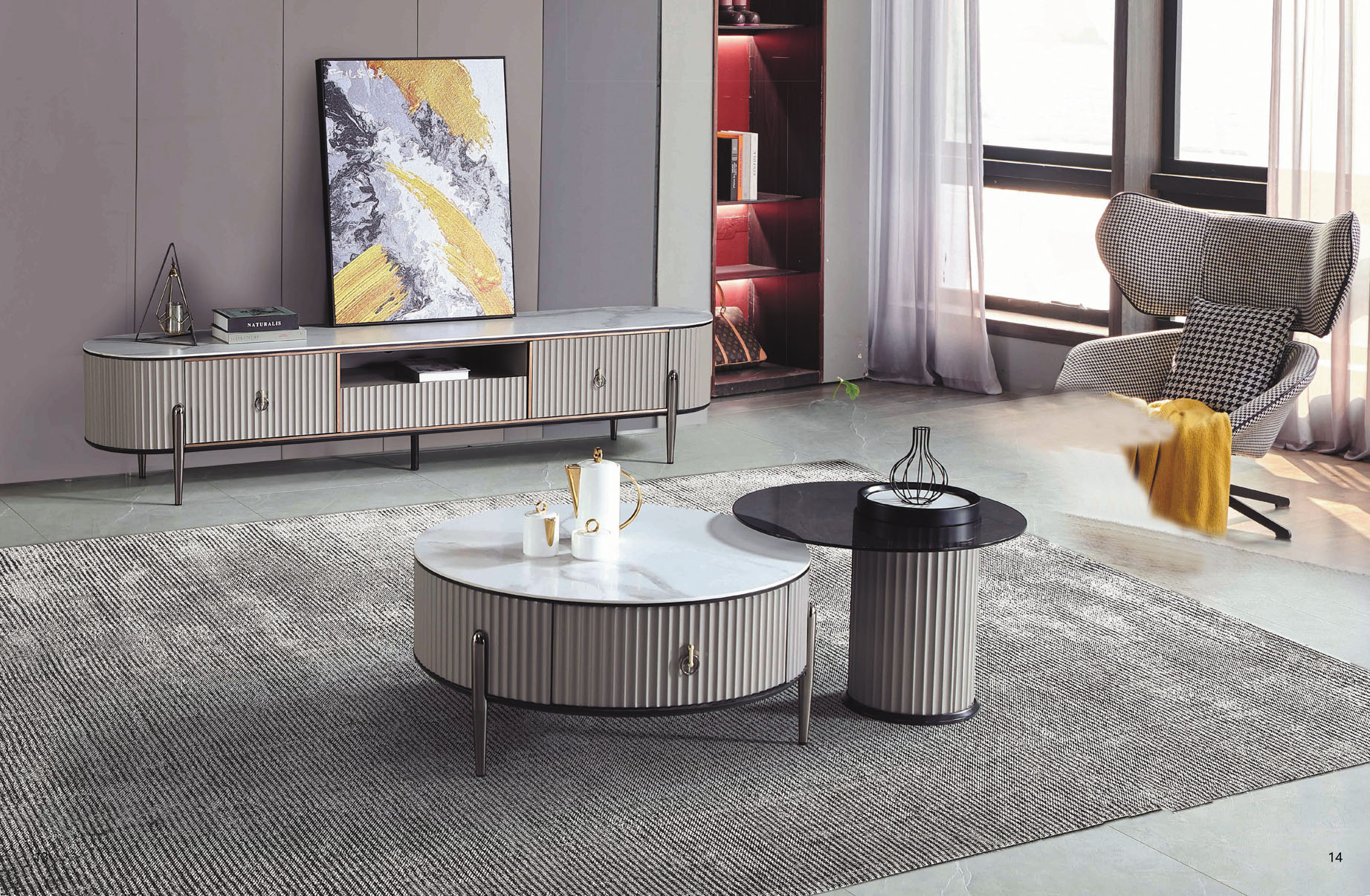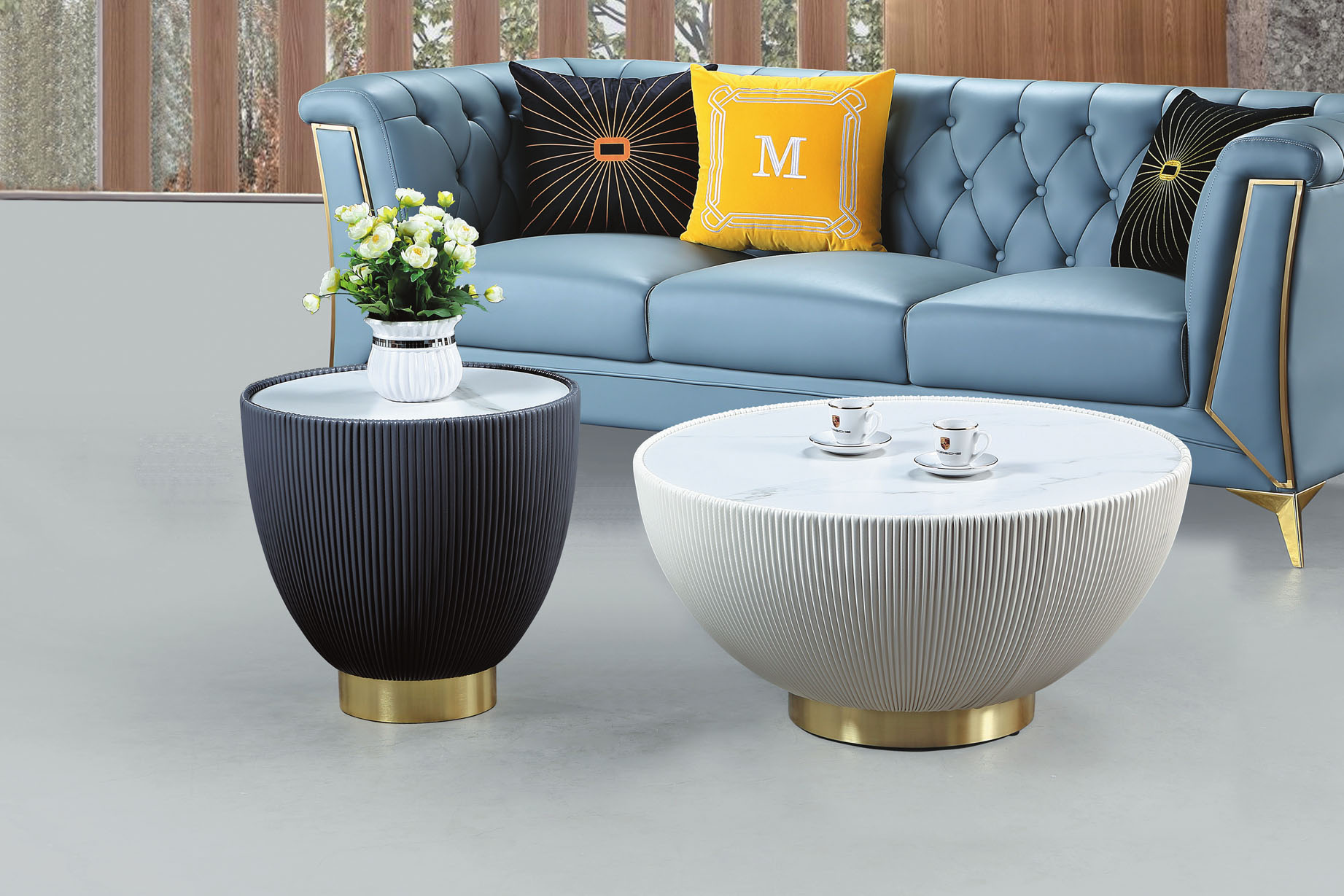 薩娃雙岩板組合圓几(全組)