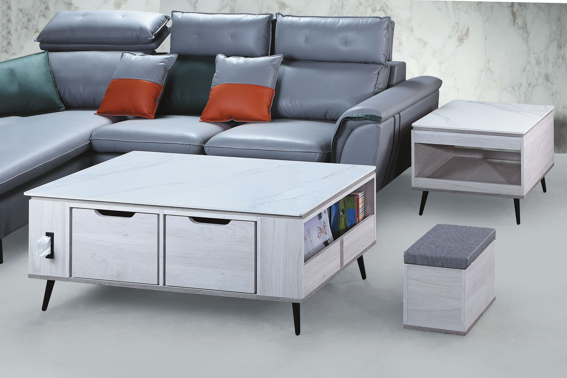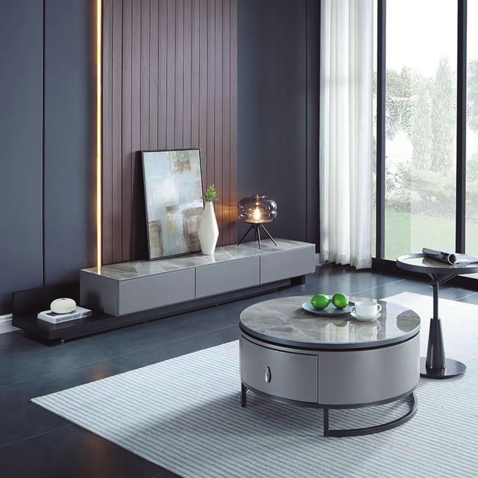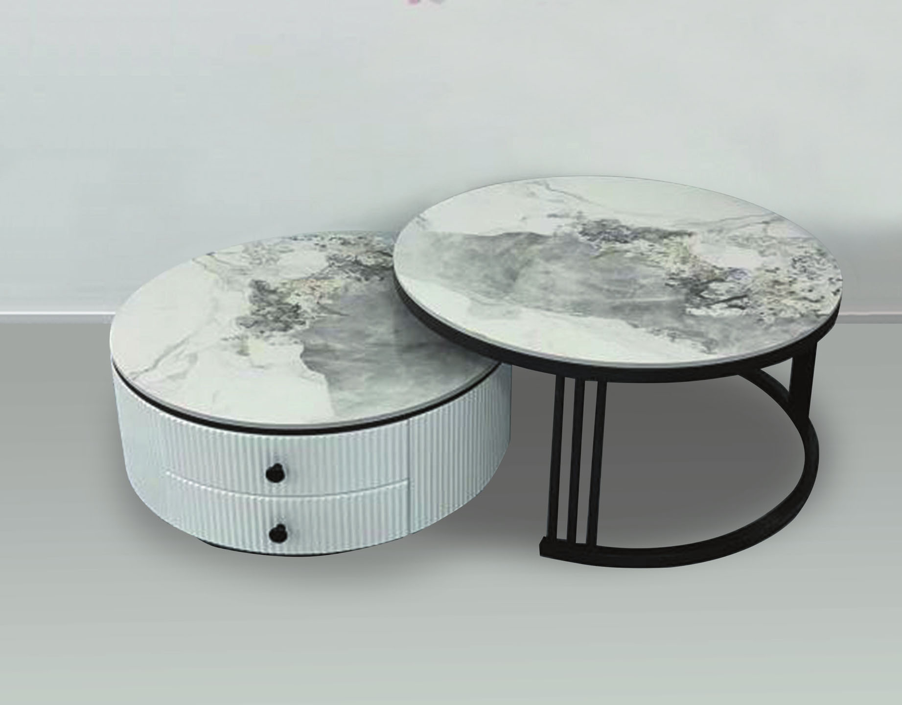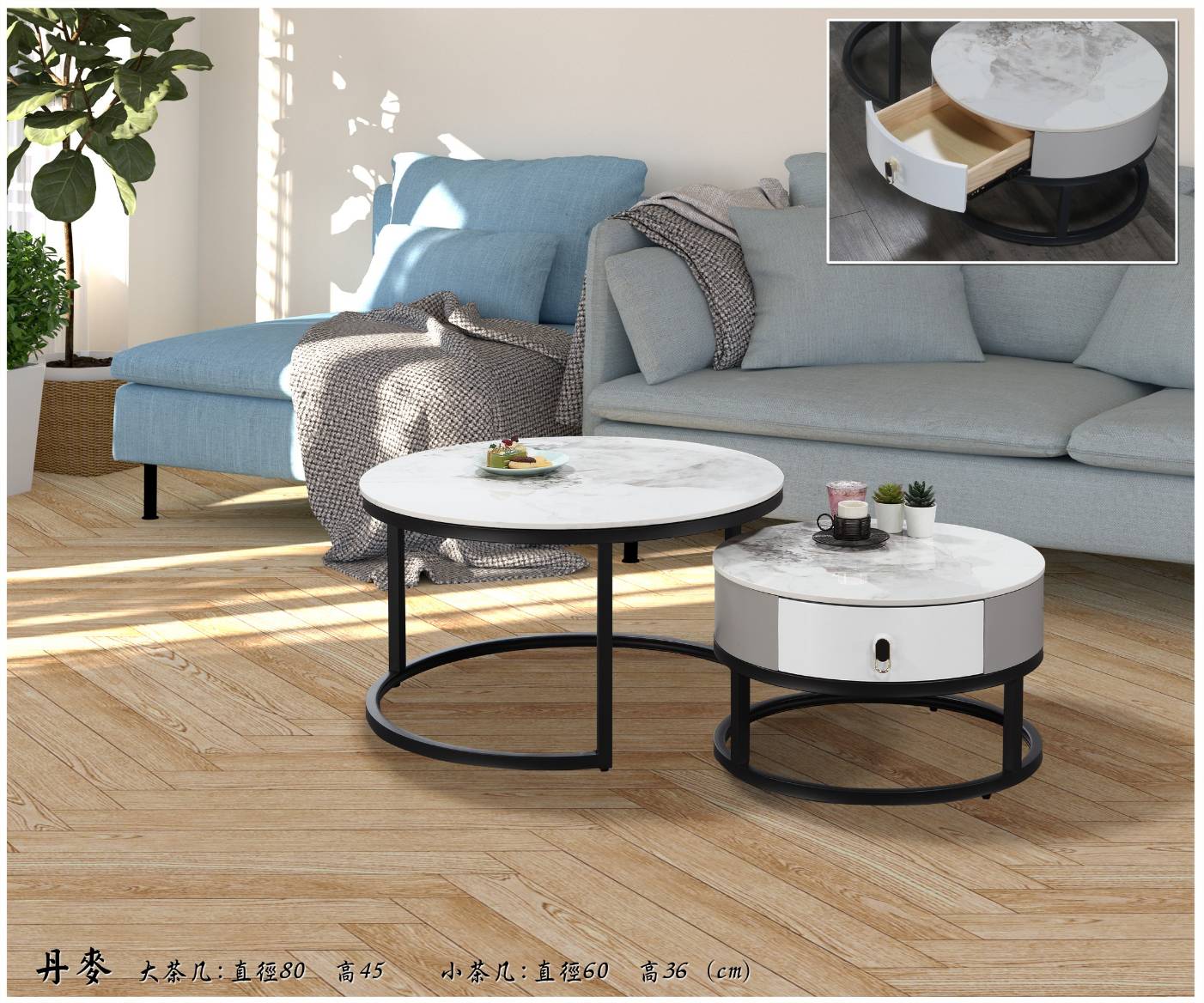 妍旭岩板單抽組合圓几(全組)