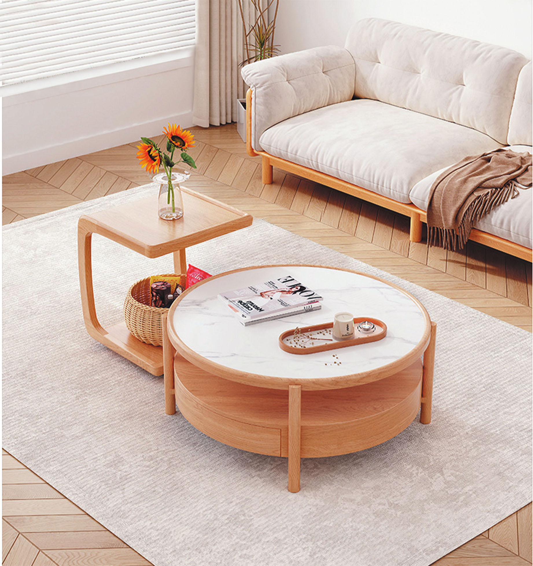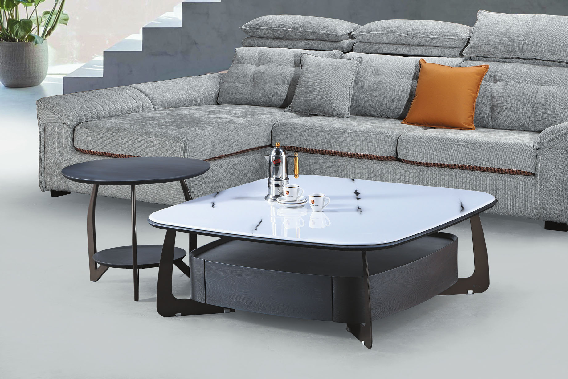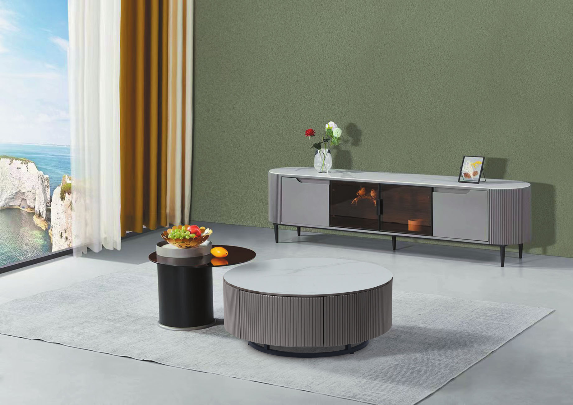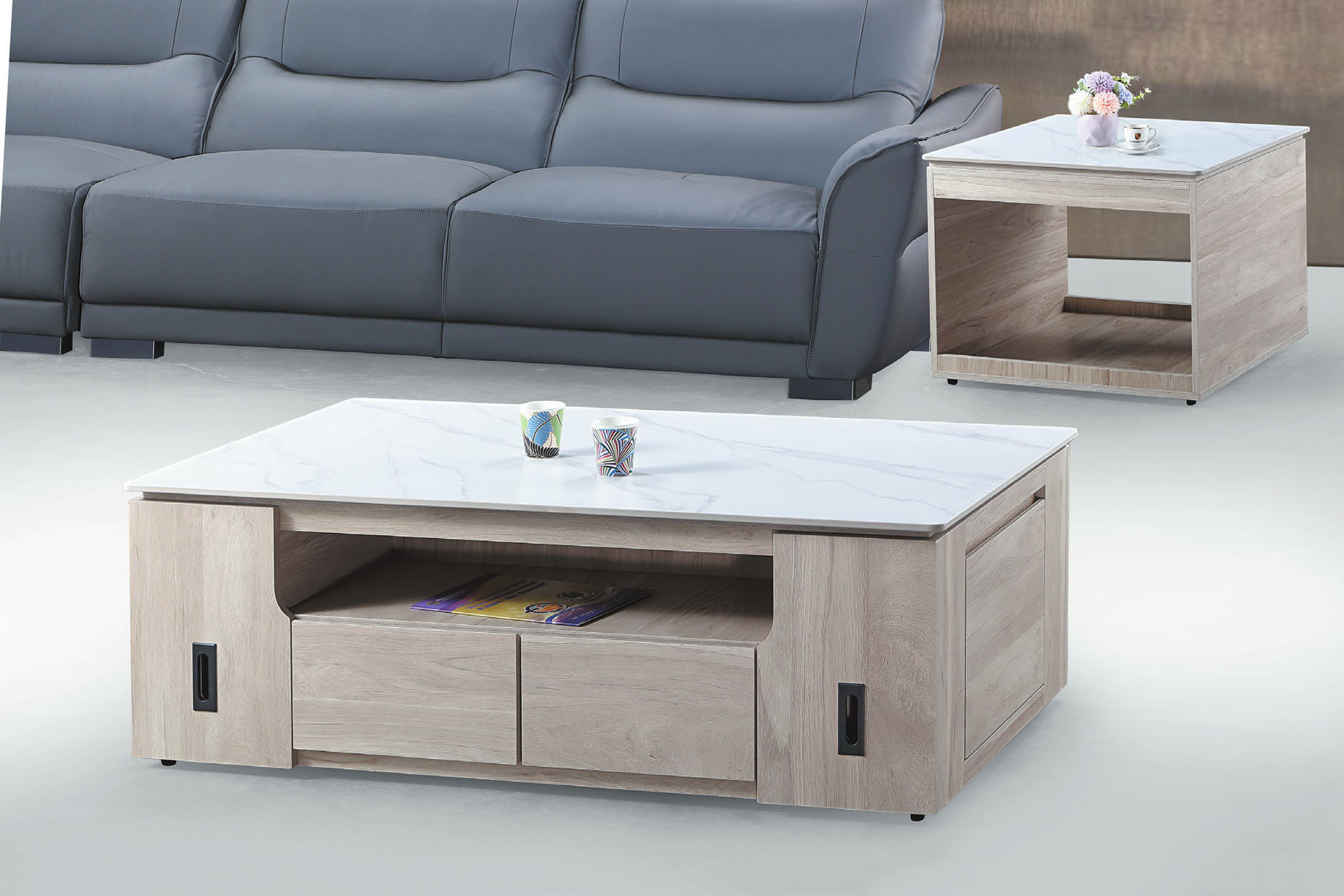 妍旭岩板單抽組合圓几(全組)