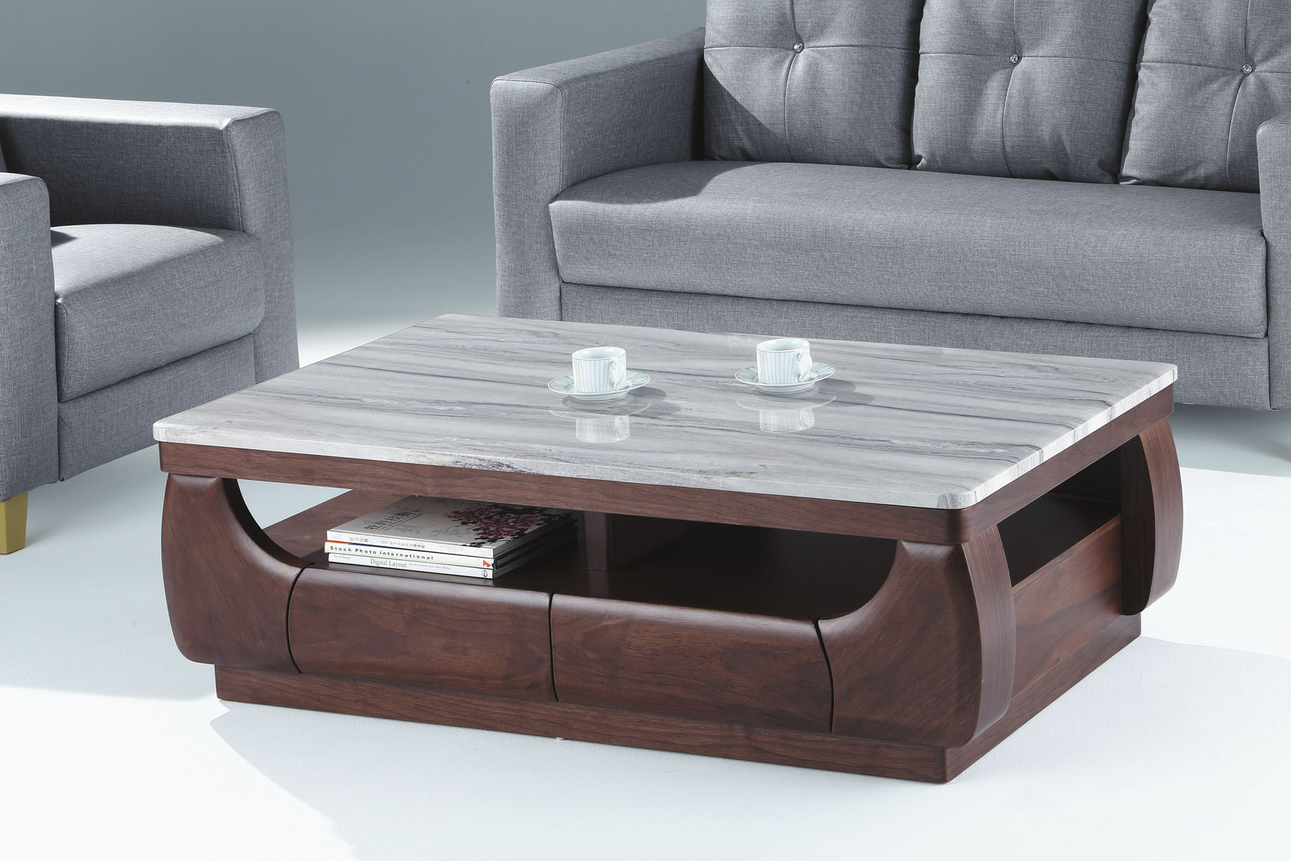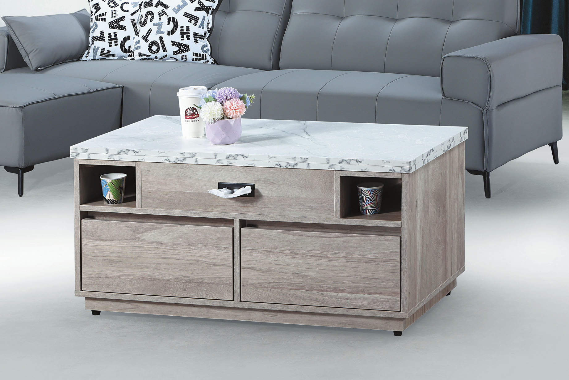 灰橡雲杉4尺大茶几(仿石)