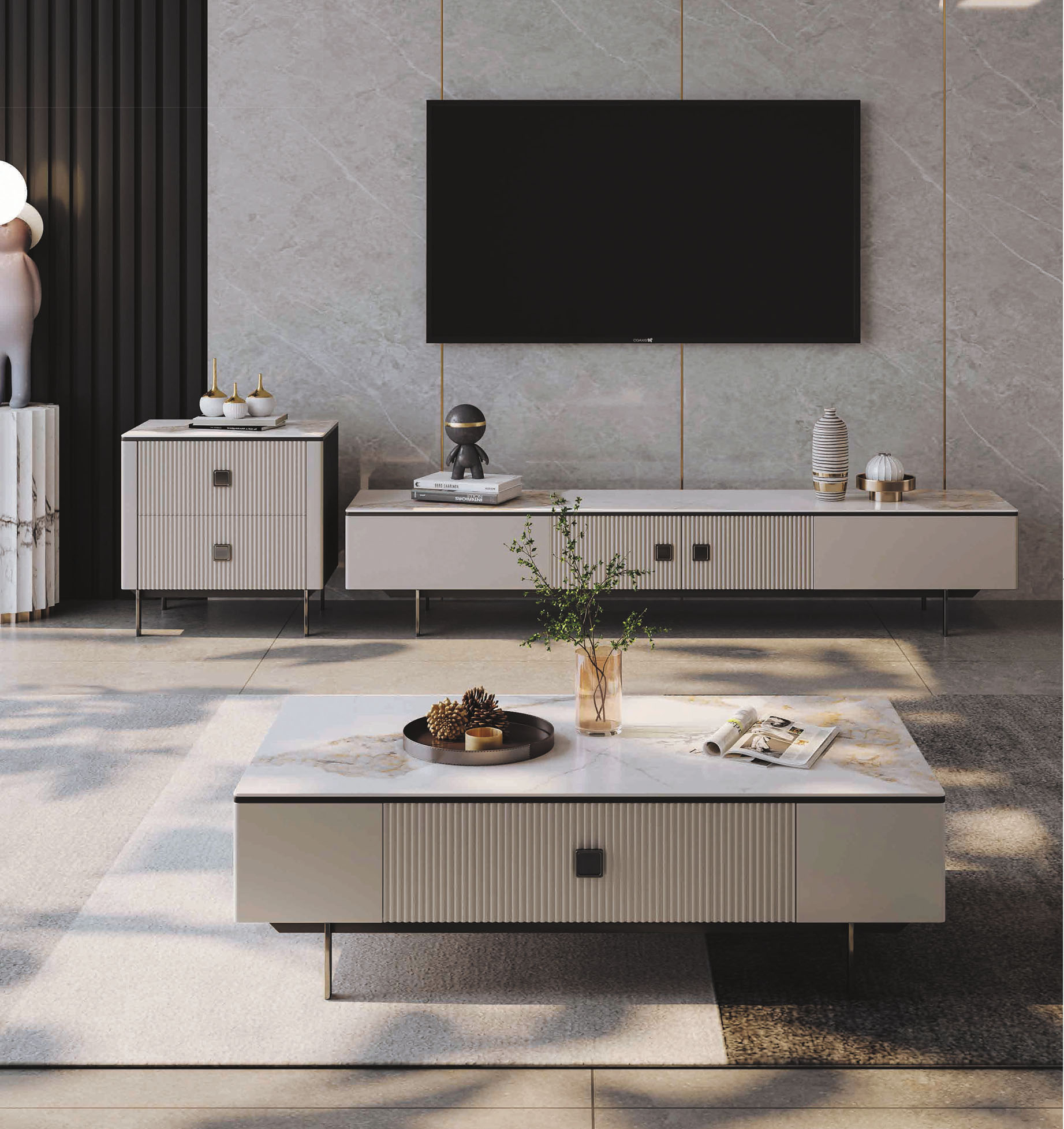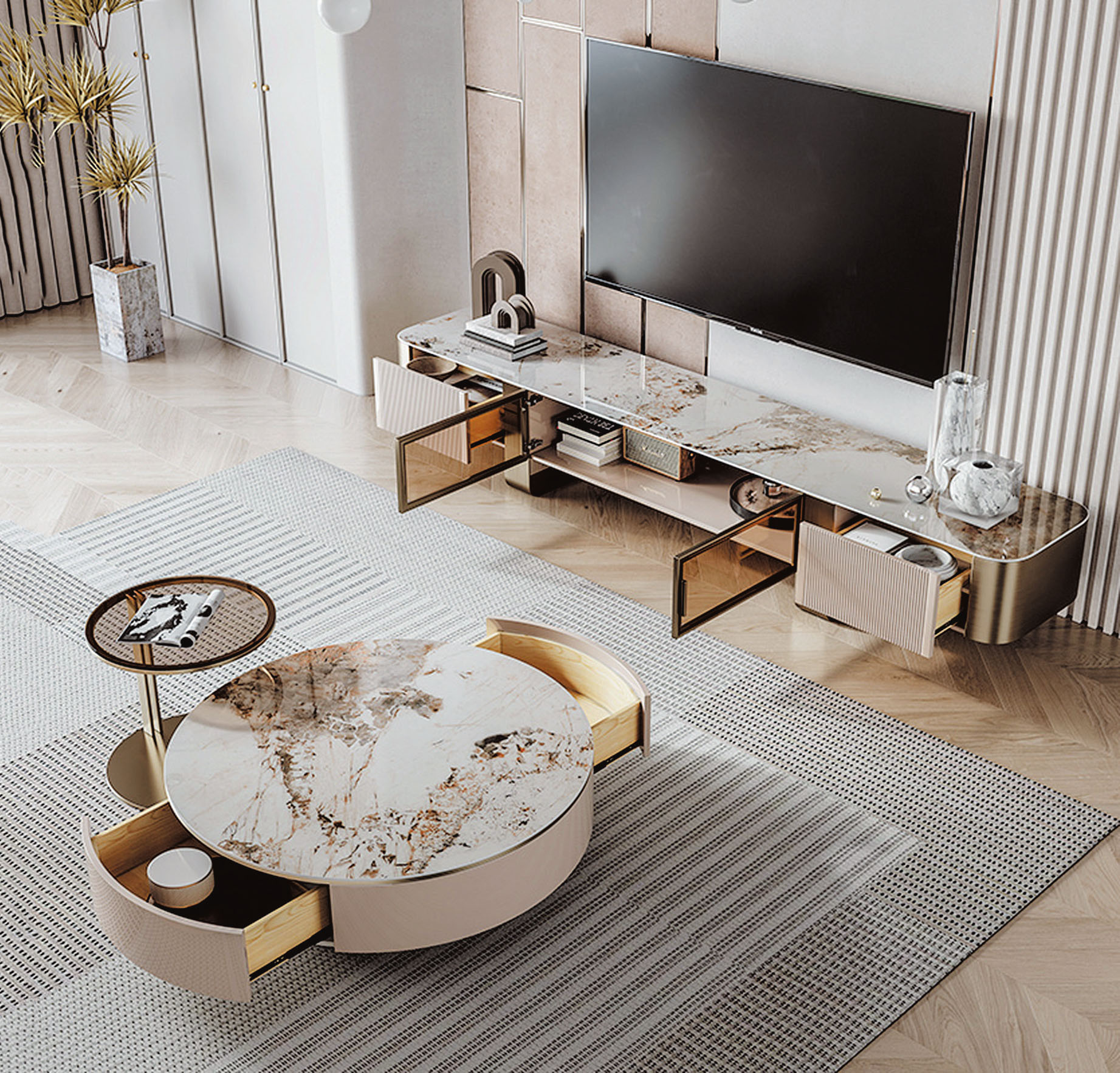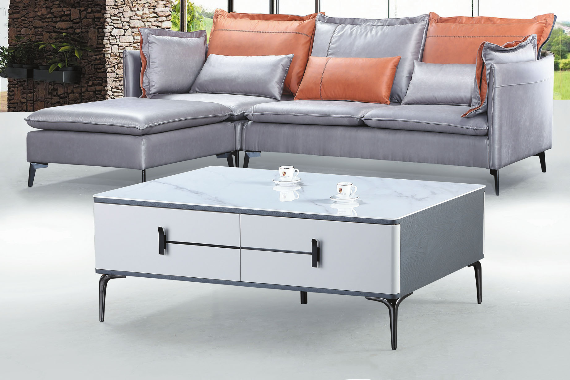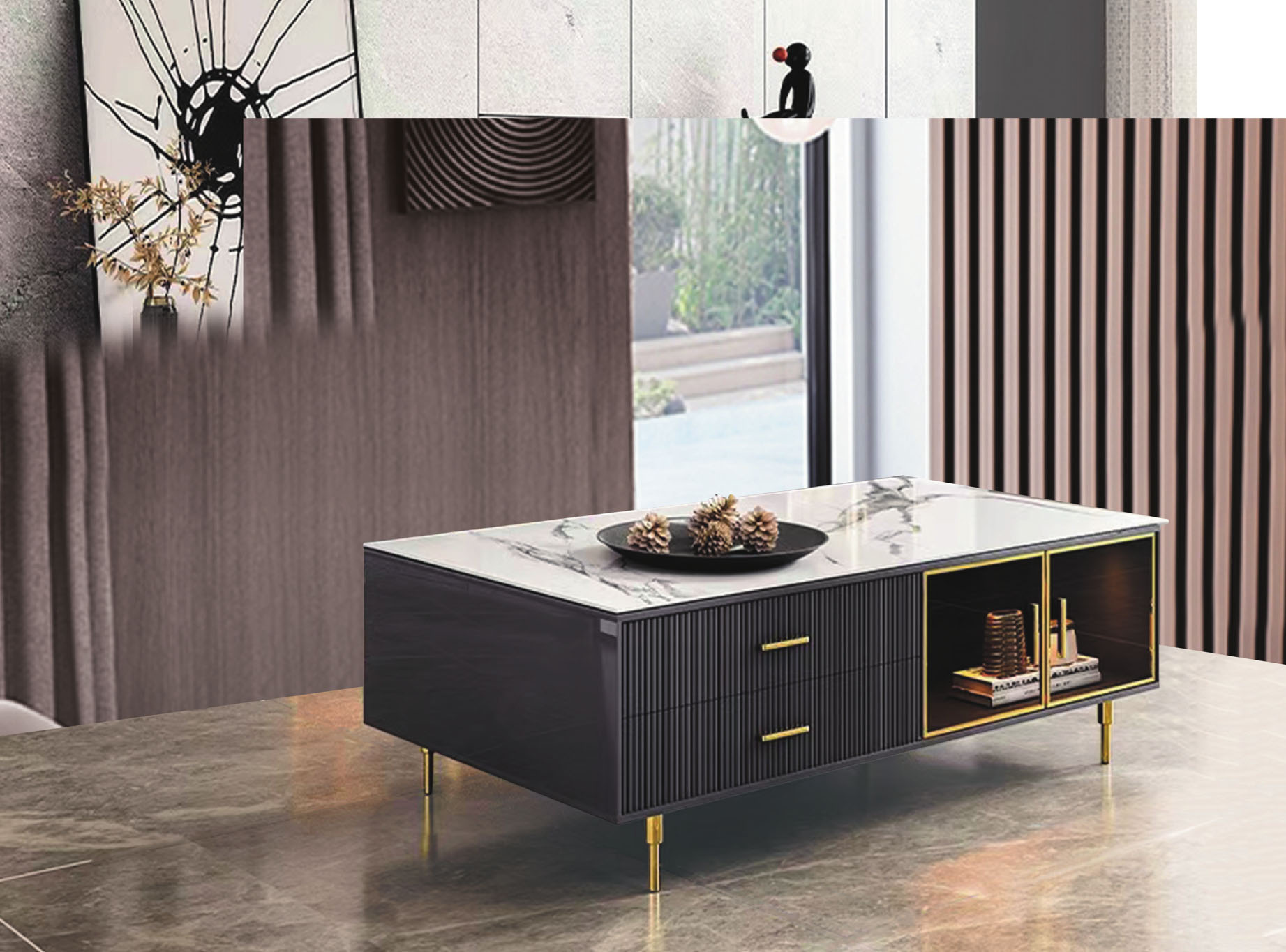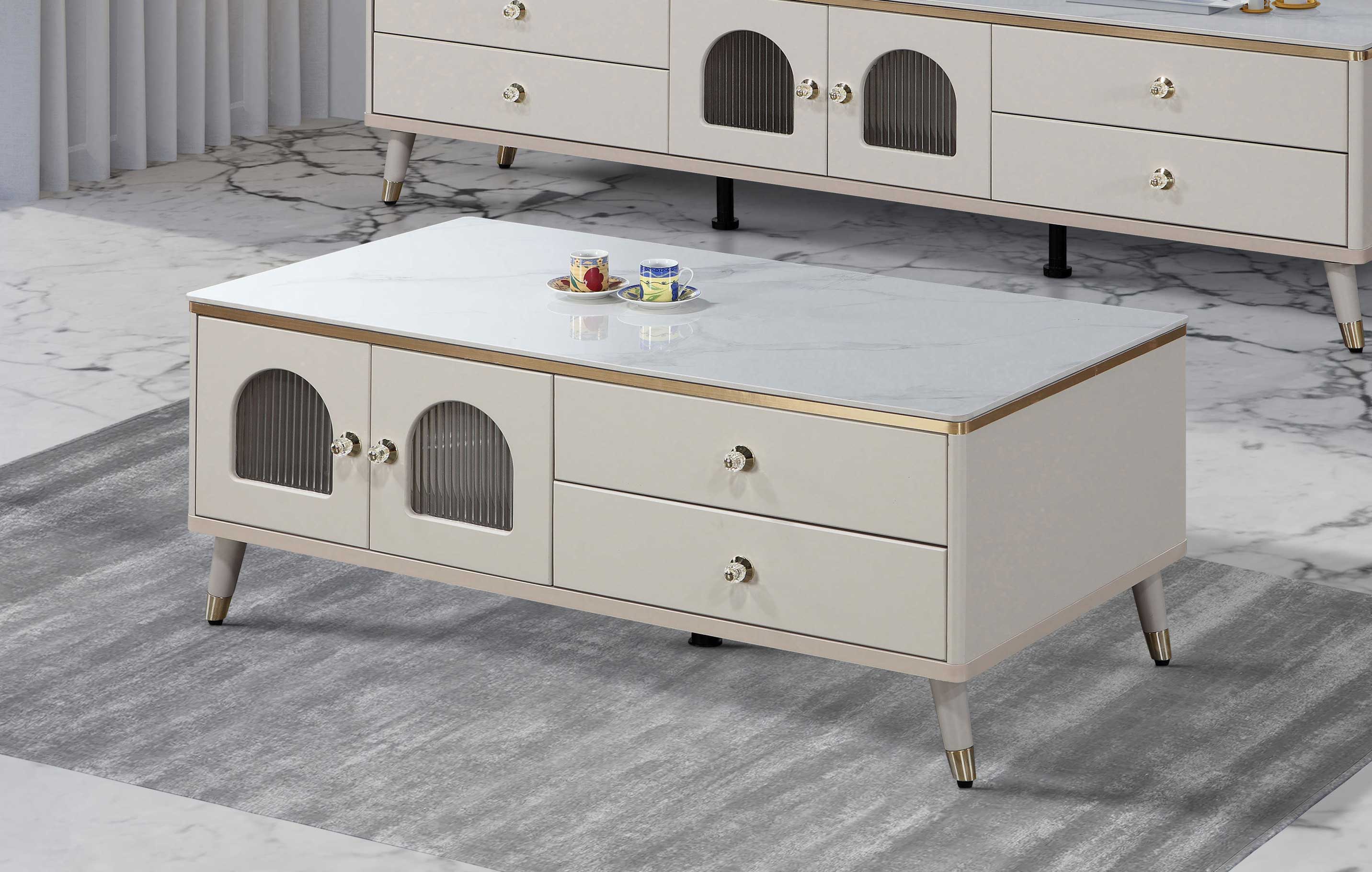 凱茜4.3尺四抽岩板大茶几
