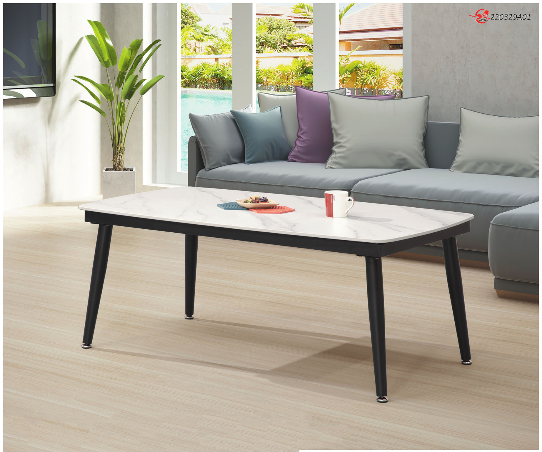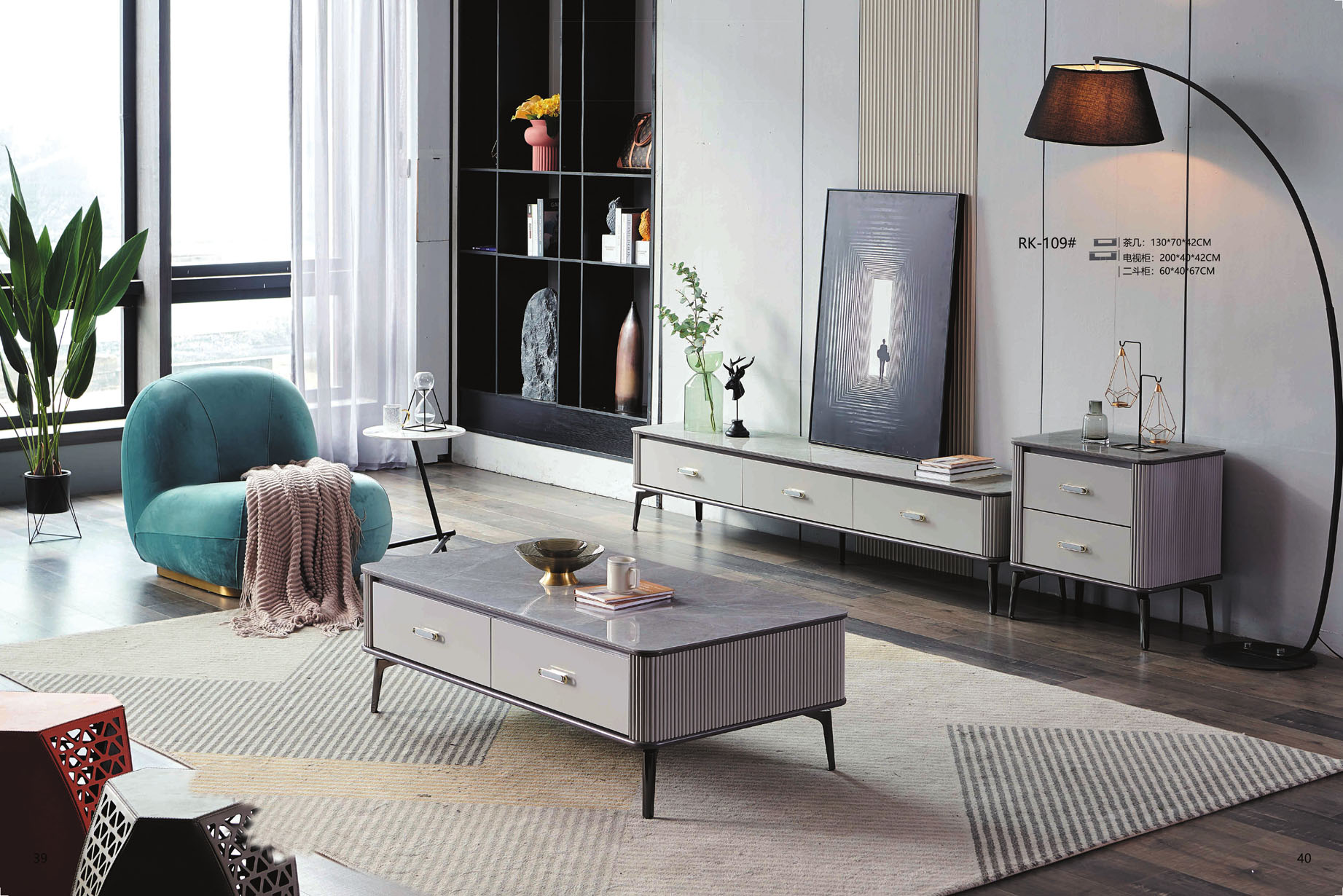 洛蒂4尺推門岩板大茶几