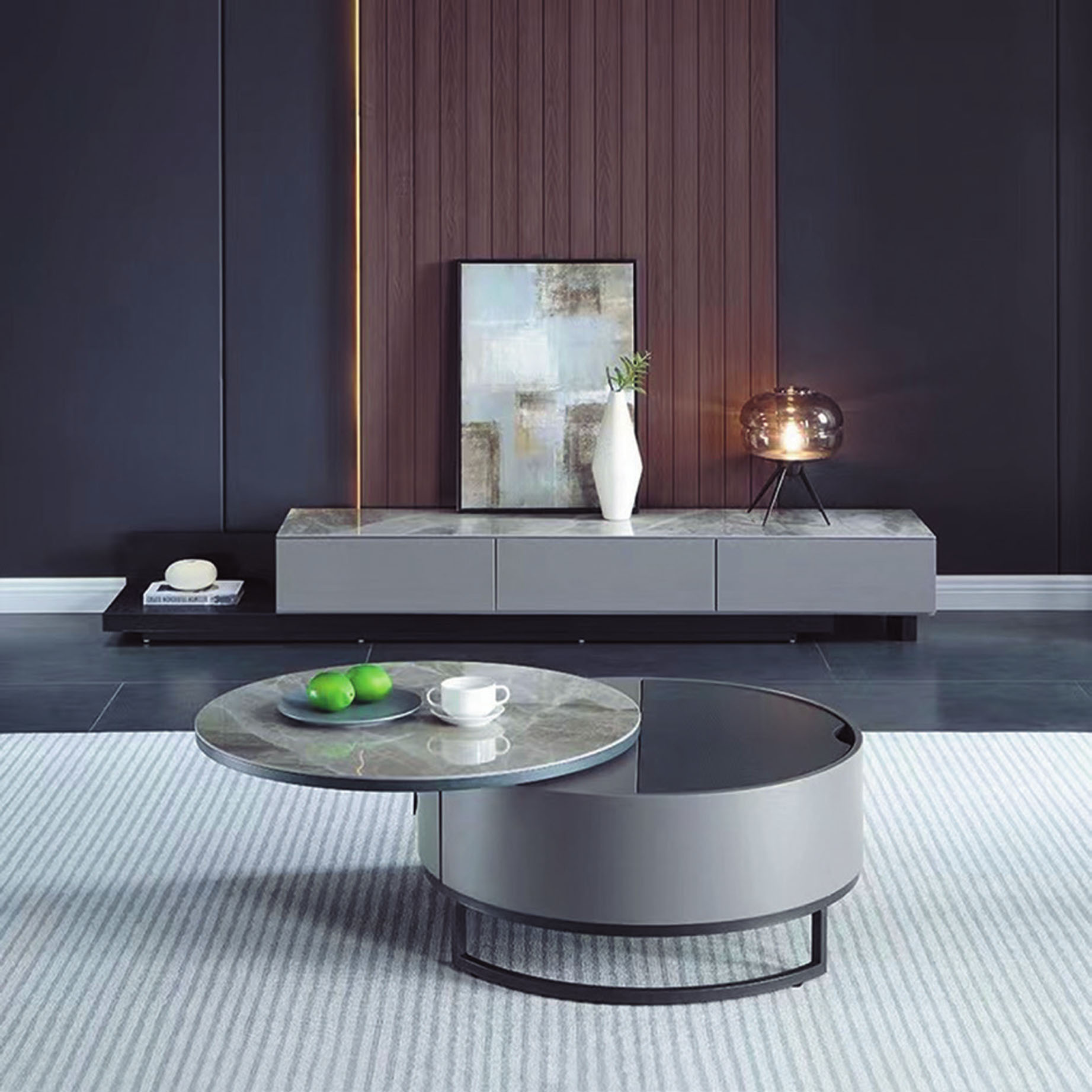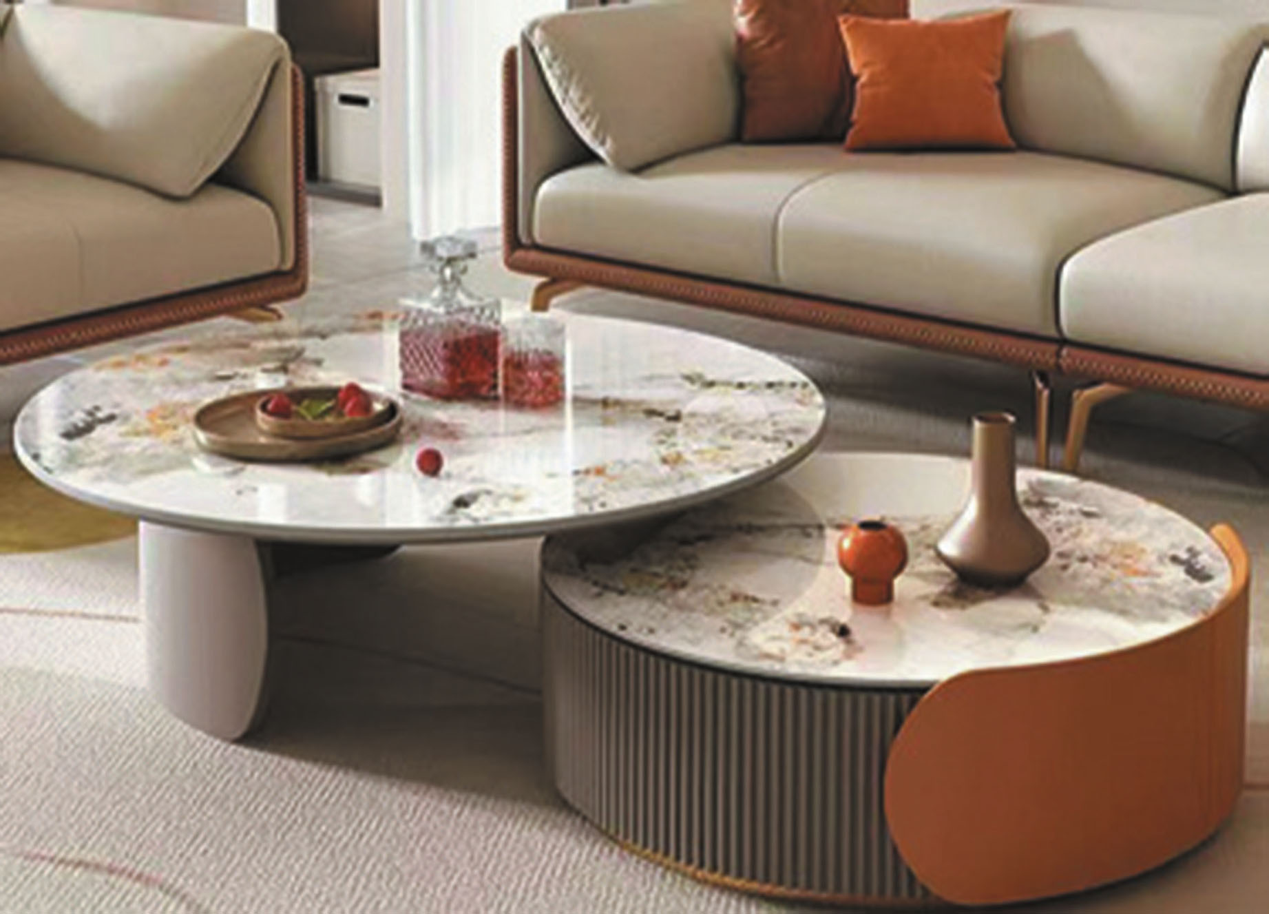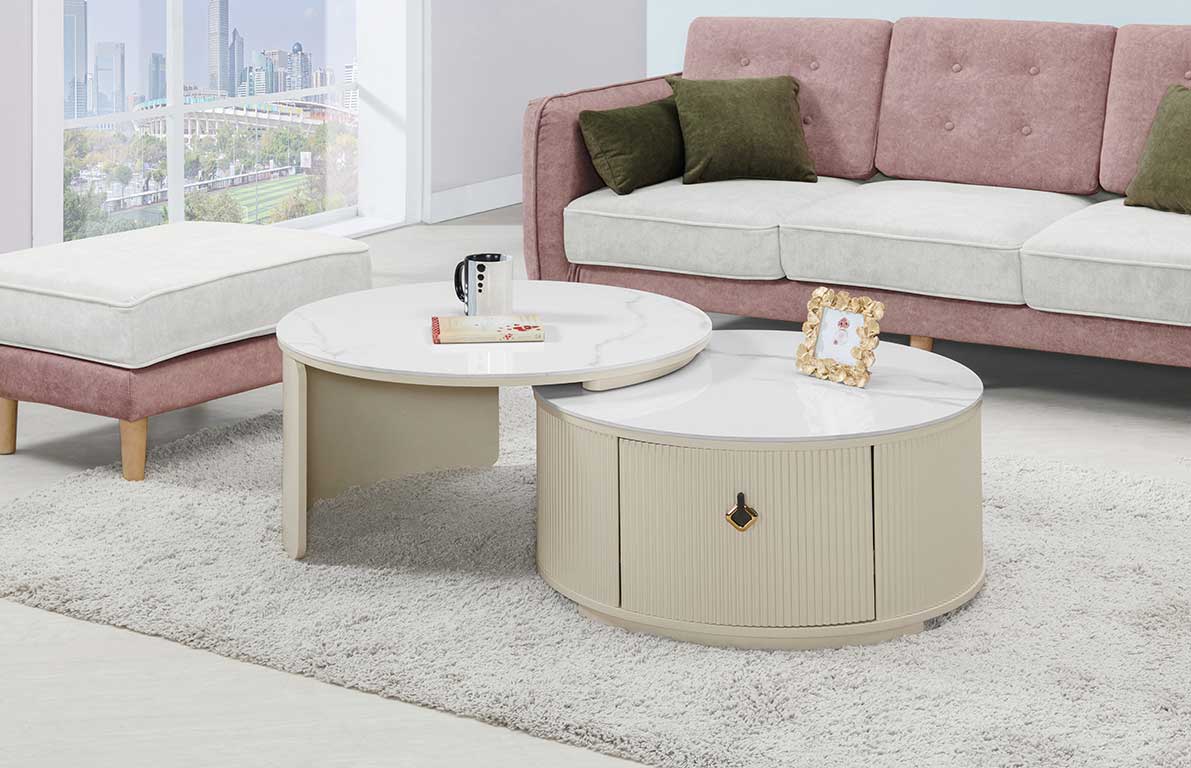 依藍雙圓岩板茶几