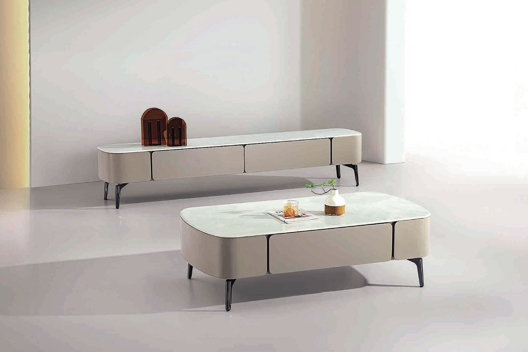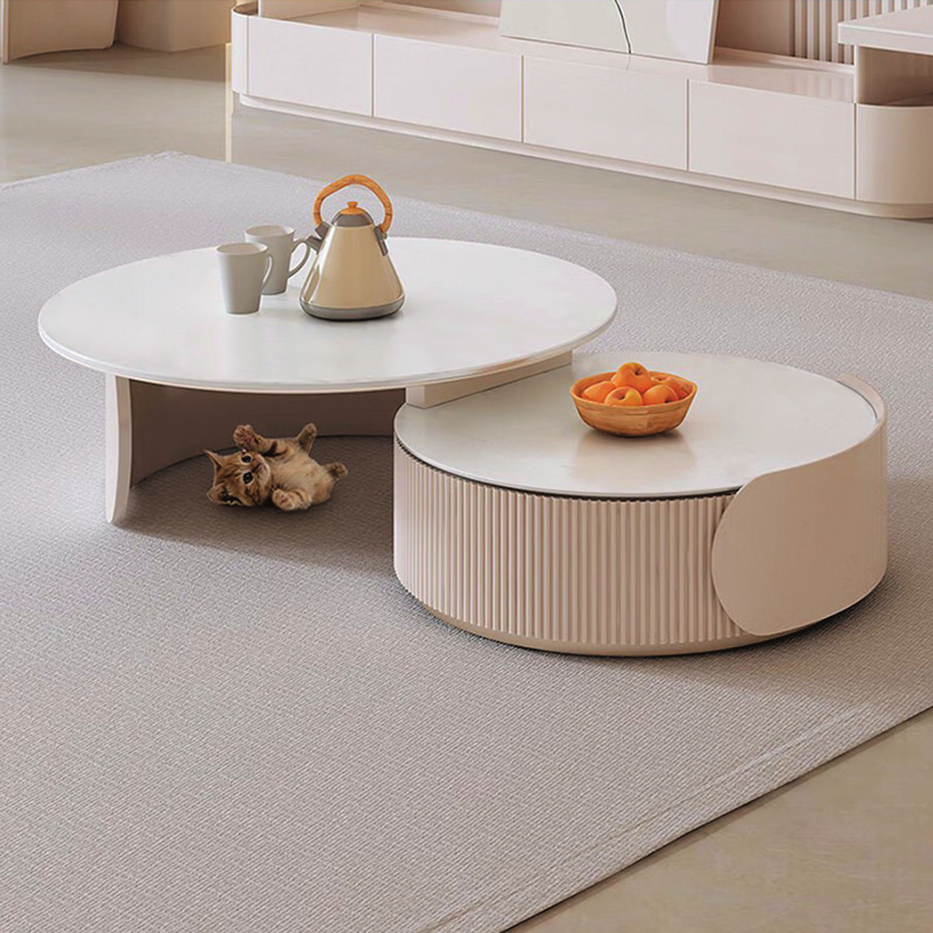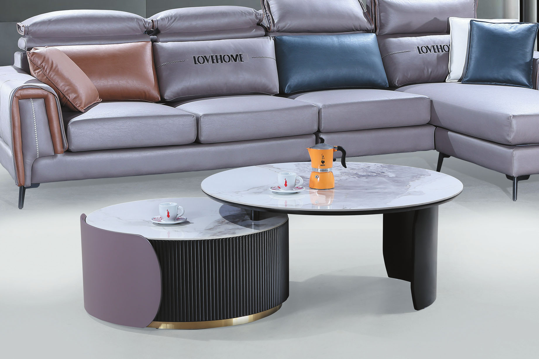 依藍雙圓岩板茶几
