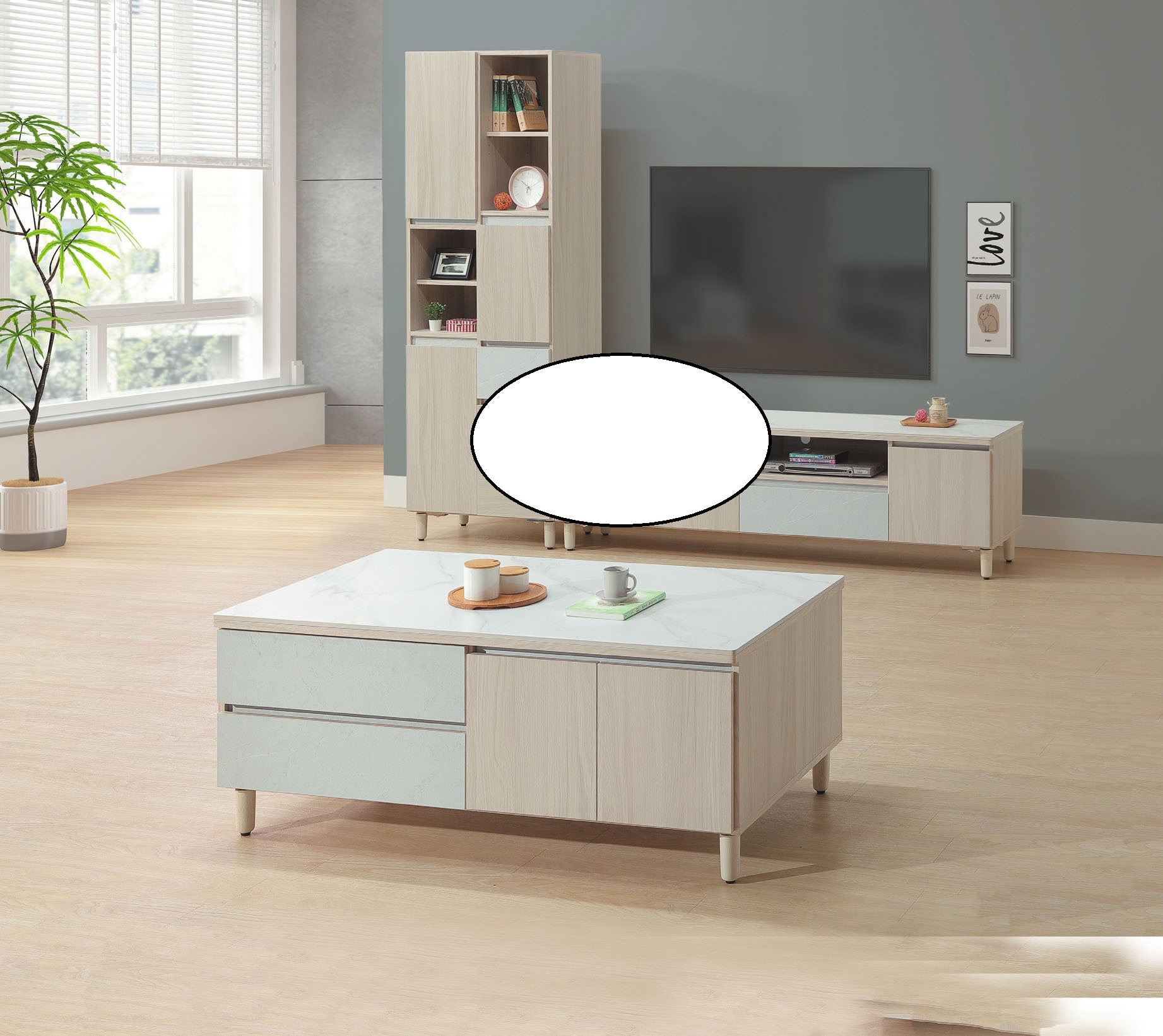 607 橢圓(淺色)大茶几
