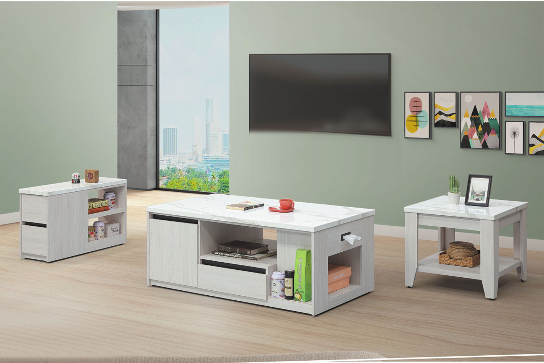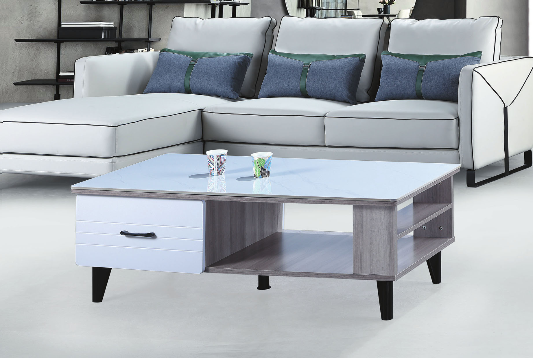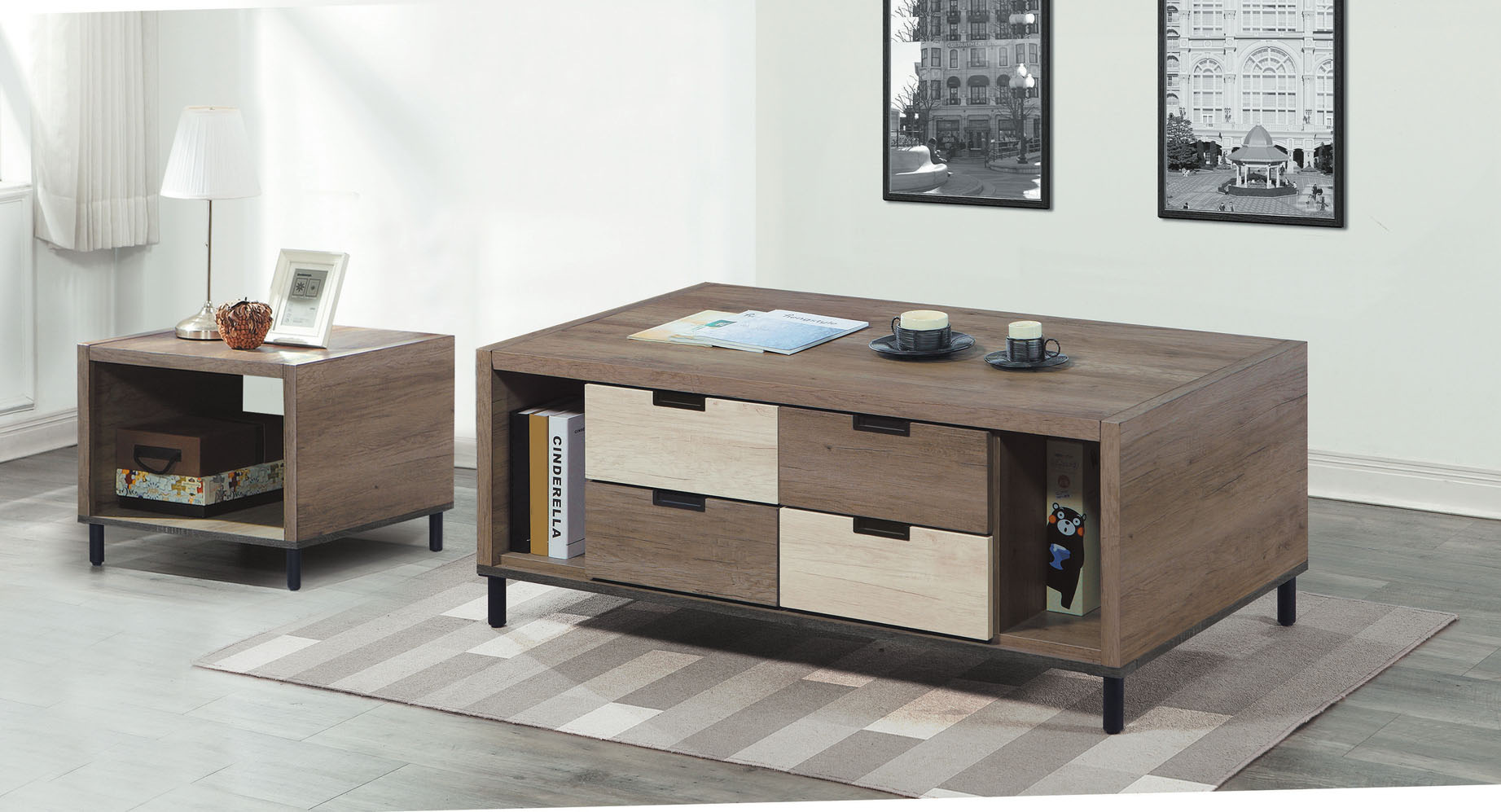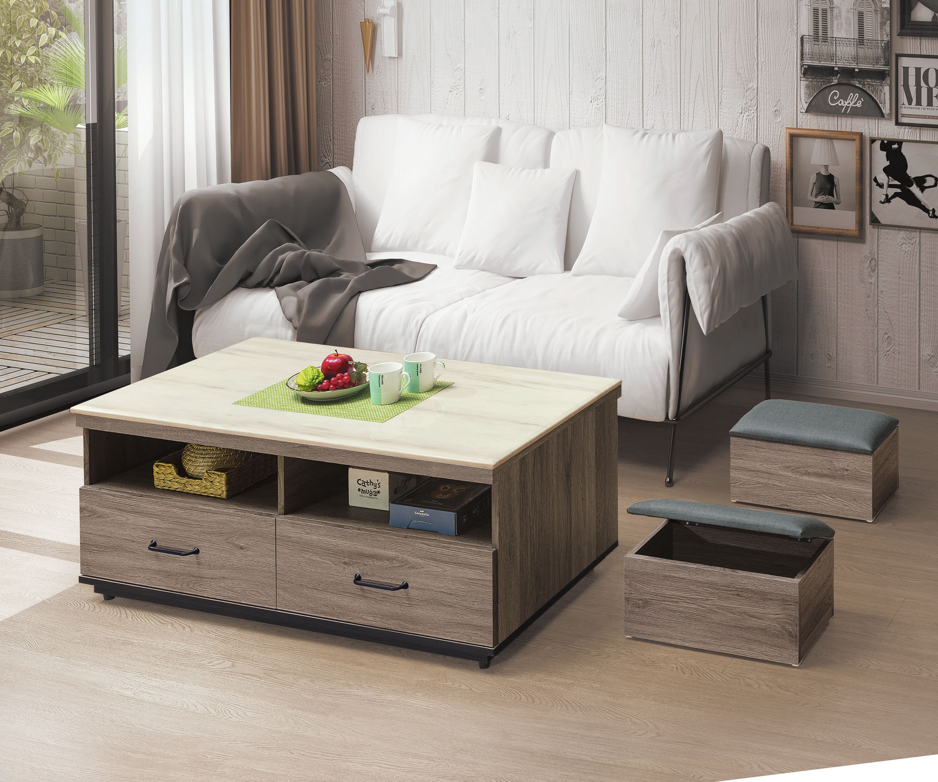 肯達二抽白色組合方几(全組)