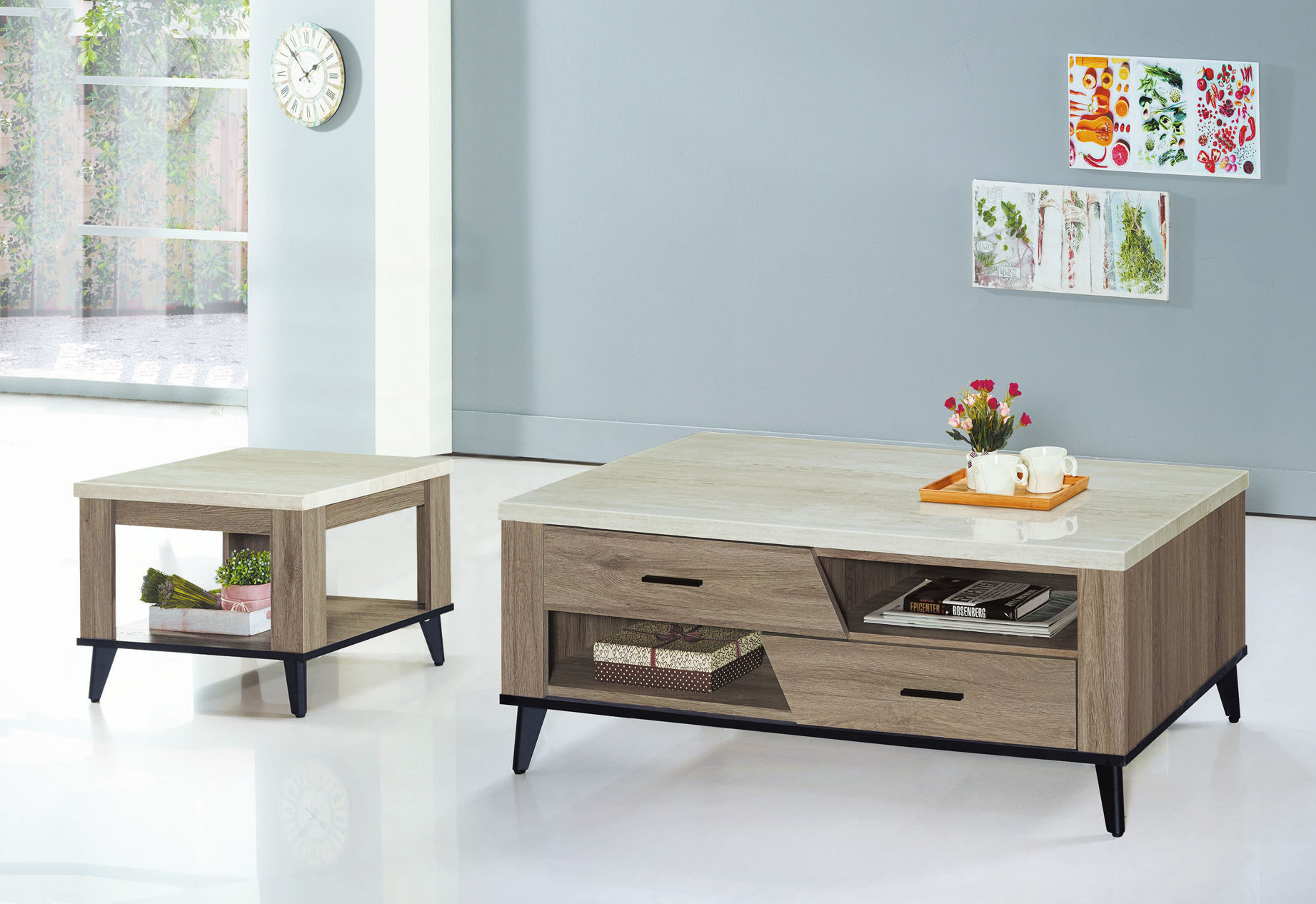 工業風石面子母茶几