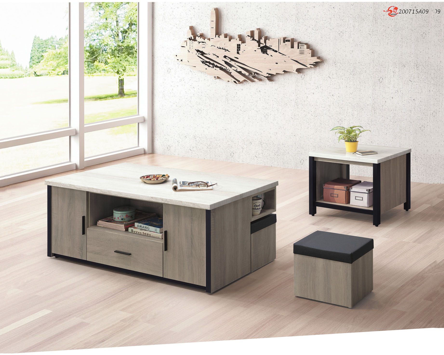 仲森二抽雙岩板組合方几(全組)
