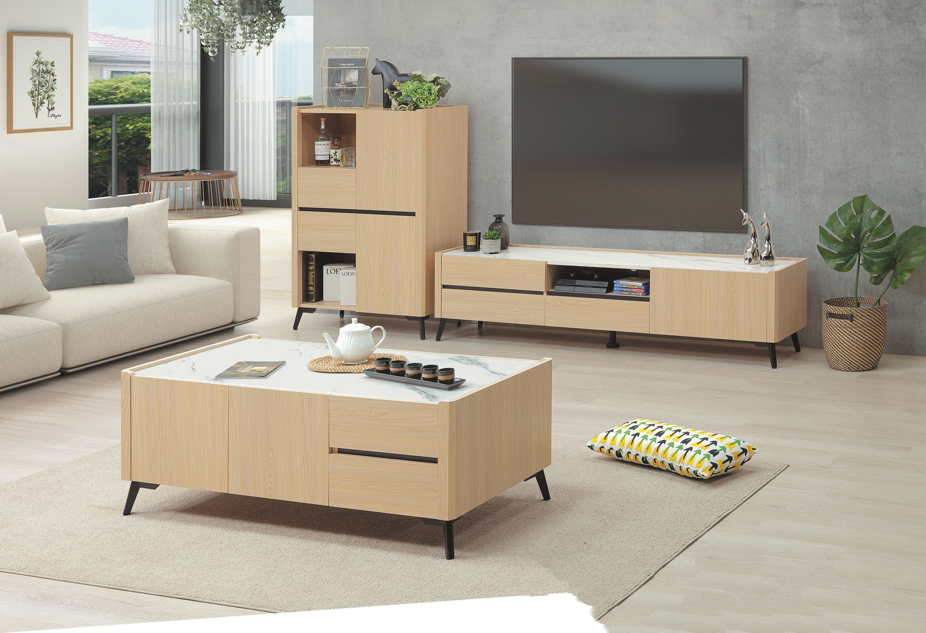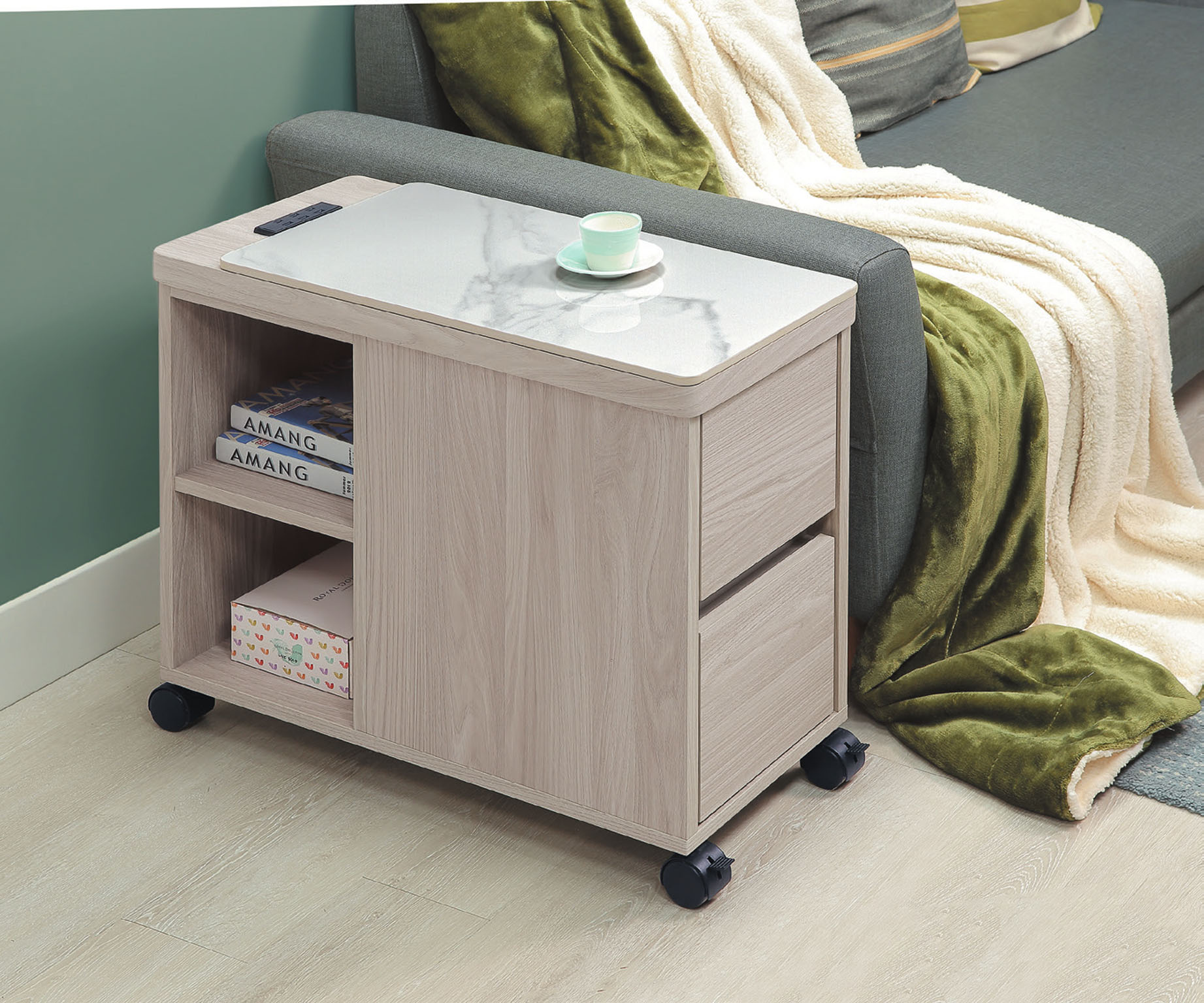 系統雲杉岩板活動沙發邊櫃