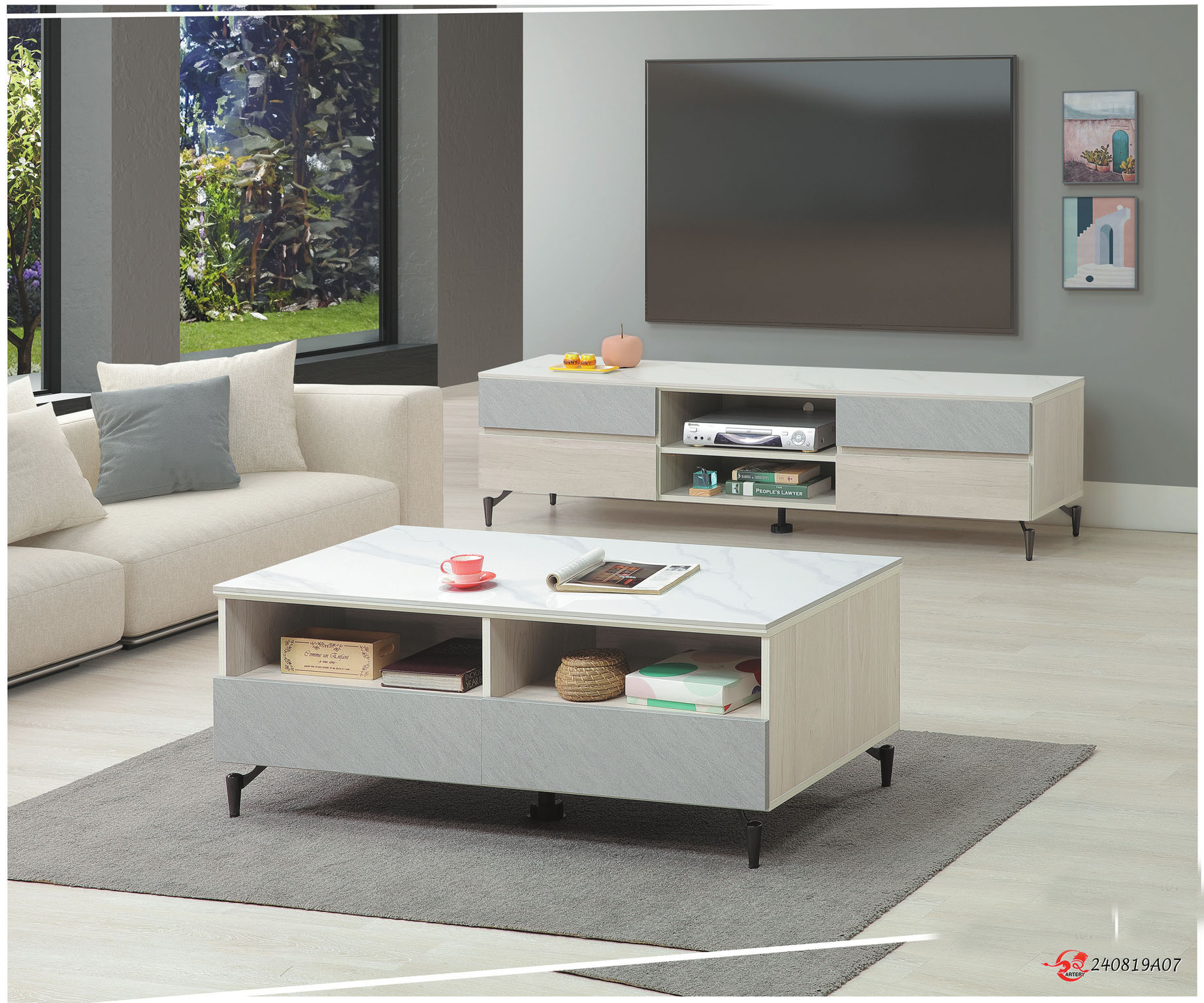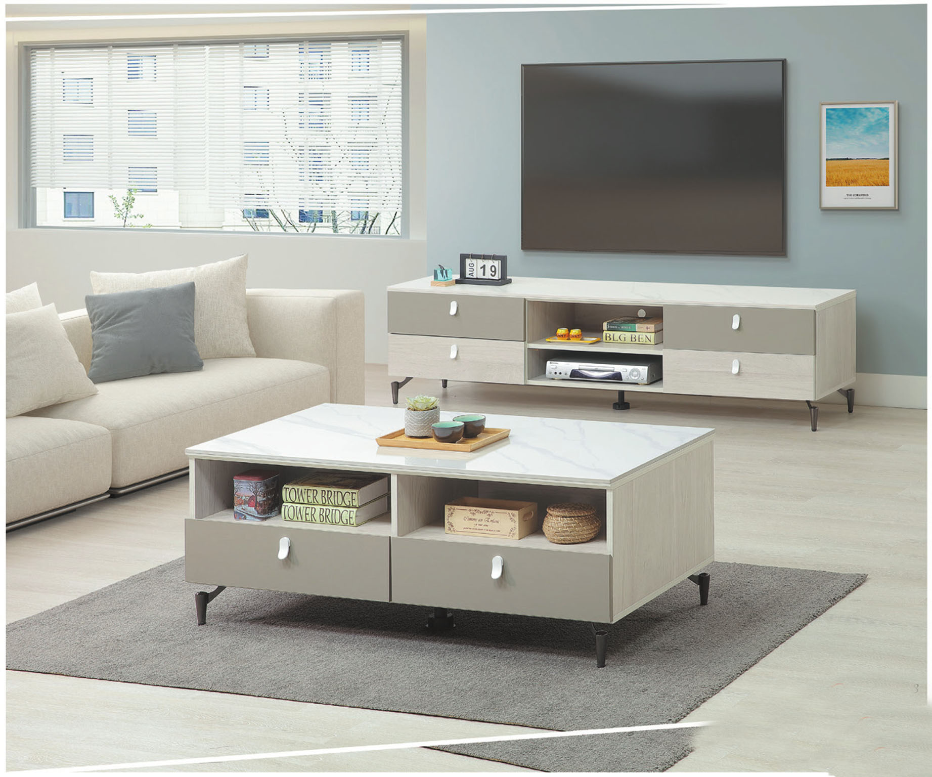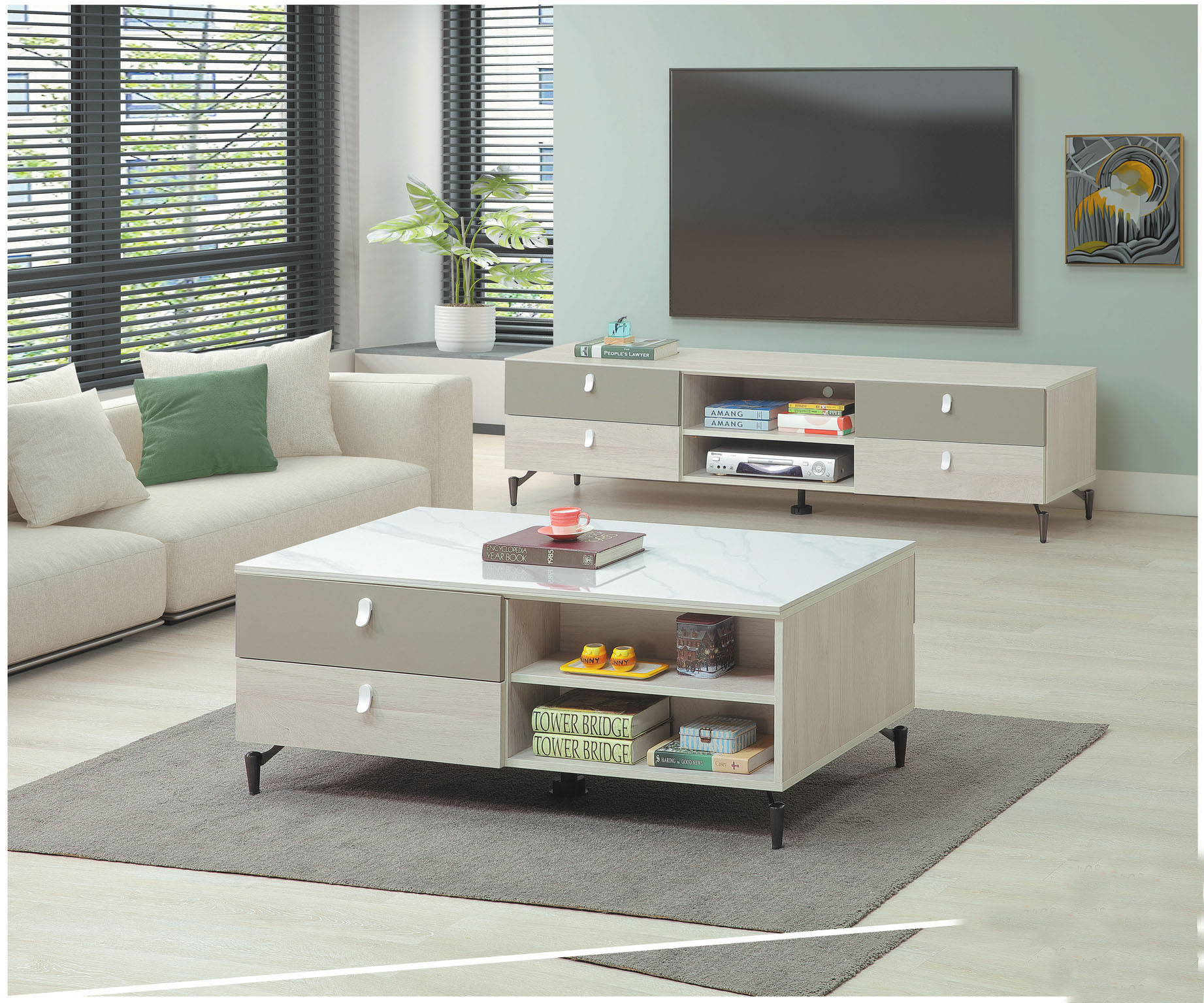 美亞4.1尺雙抽岩板大茶几
