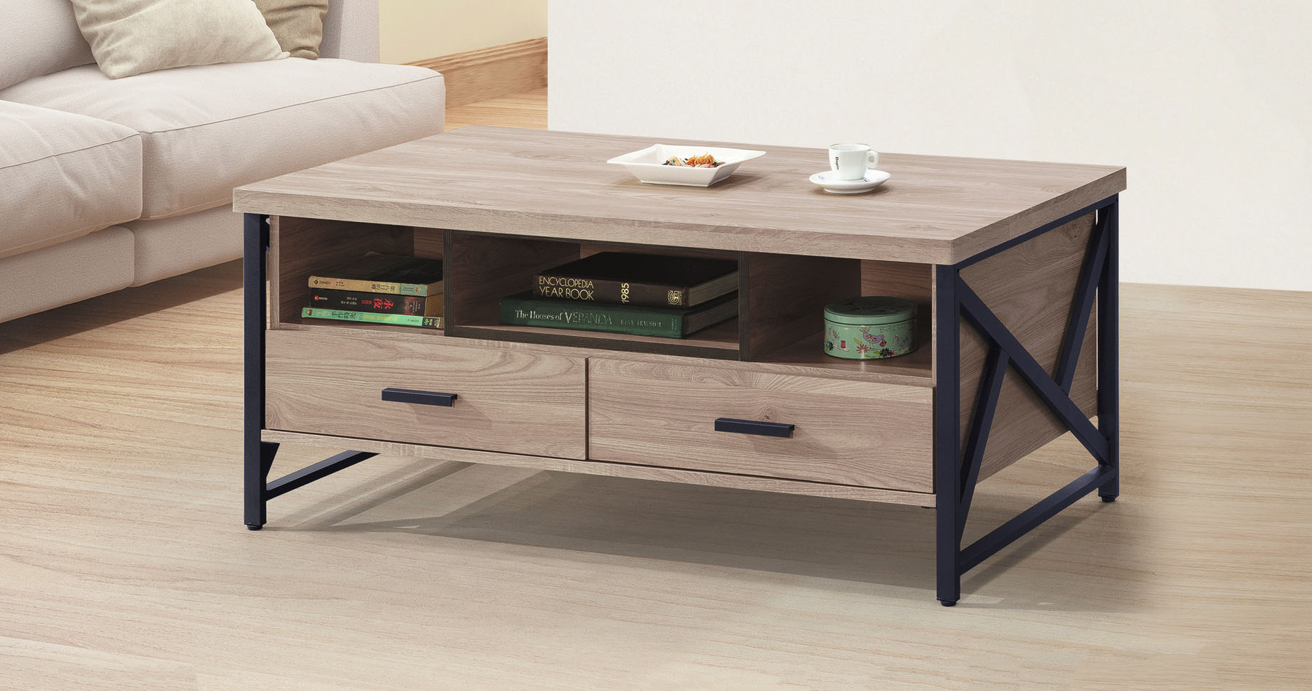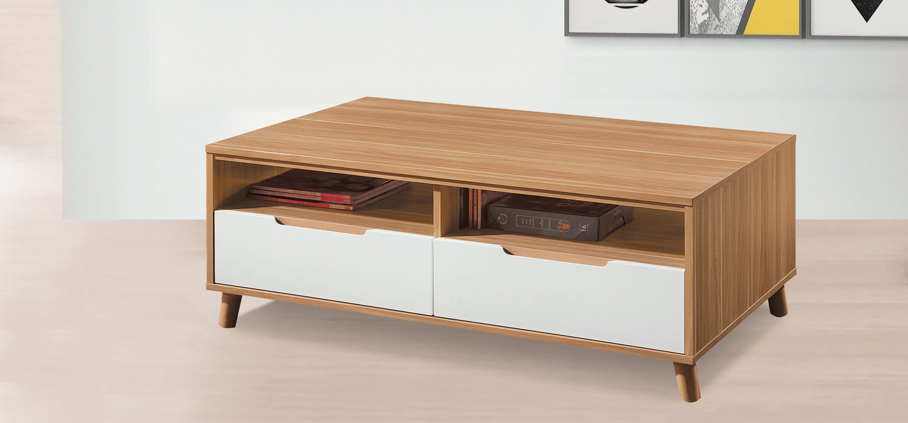 艾諾4尺原木色四抽大茶几