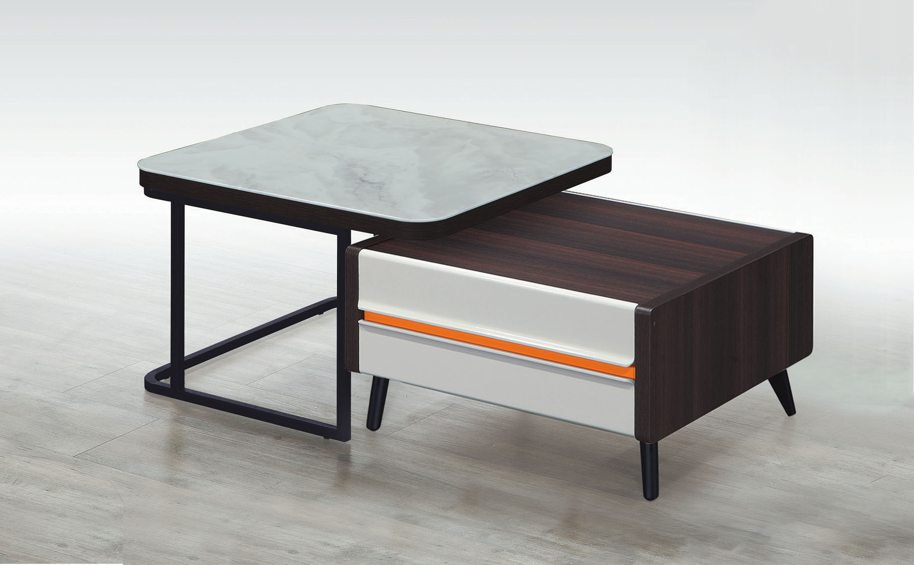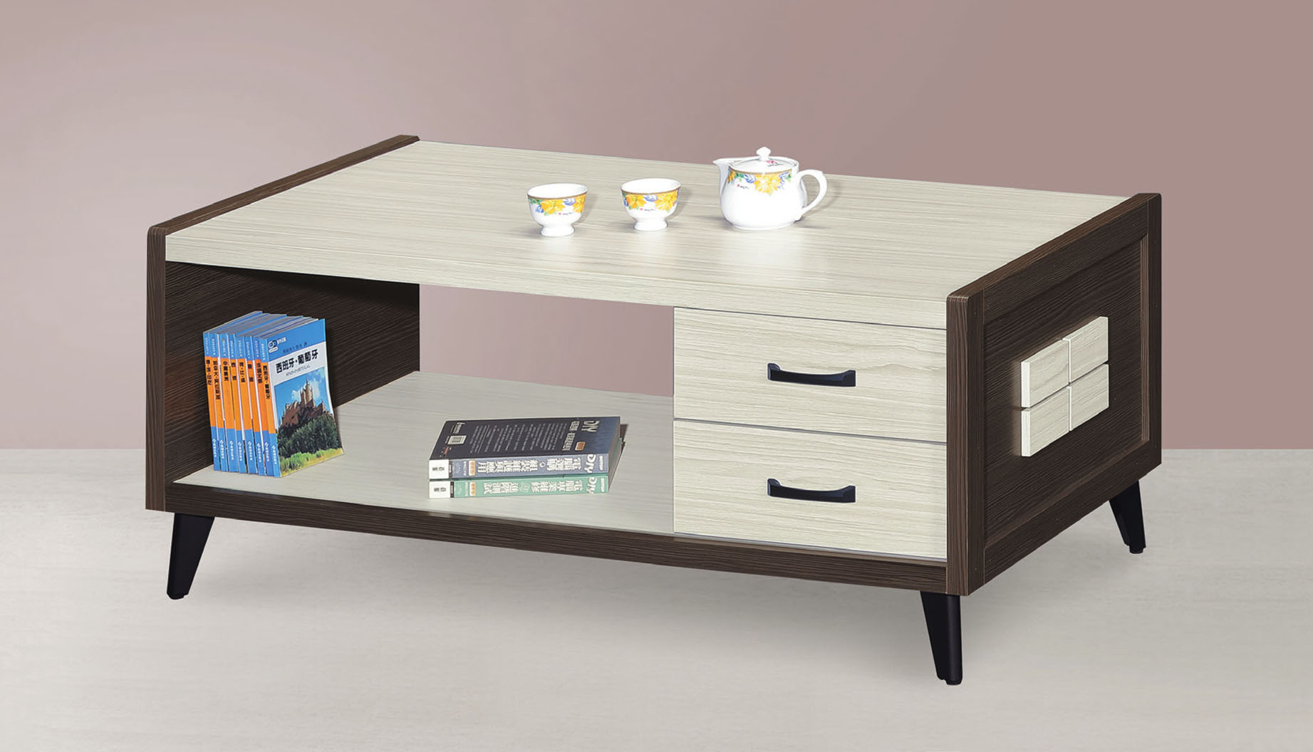 華驛旋轉式二抽大茶几