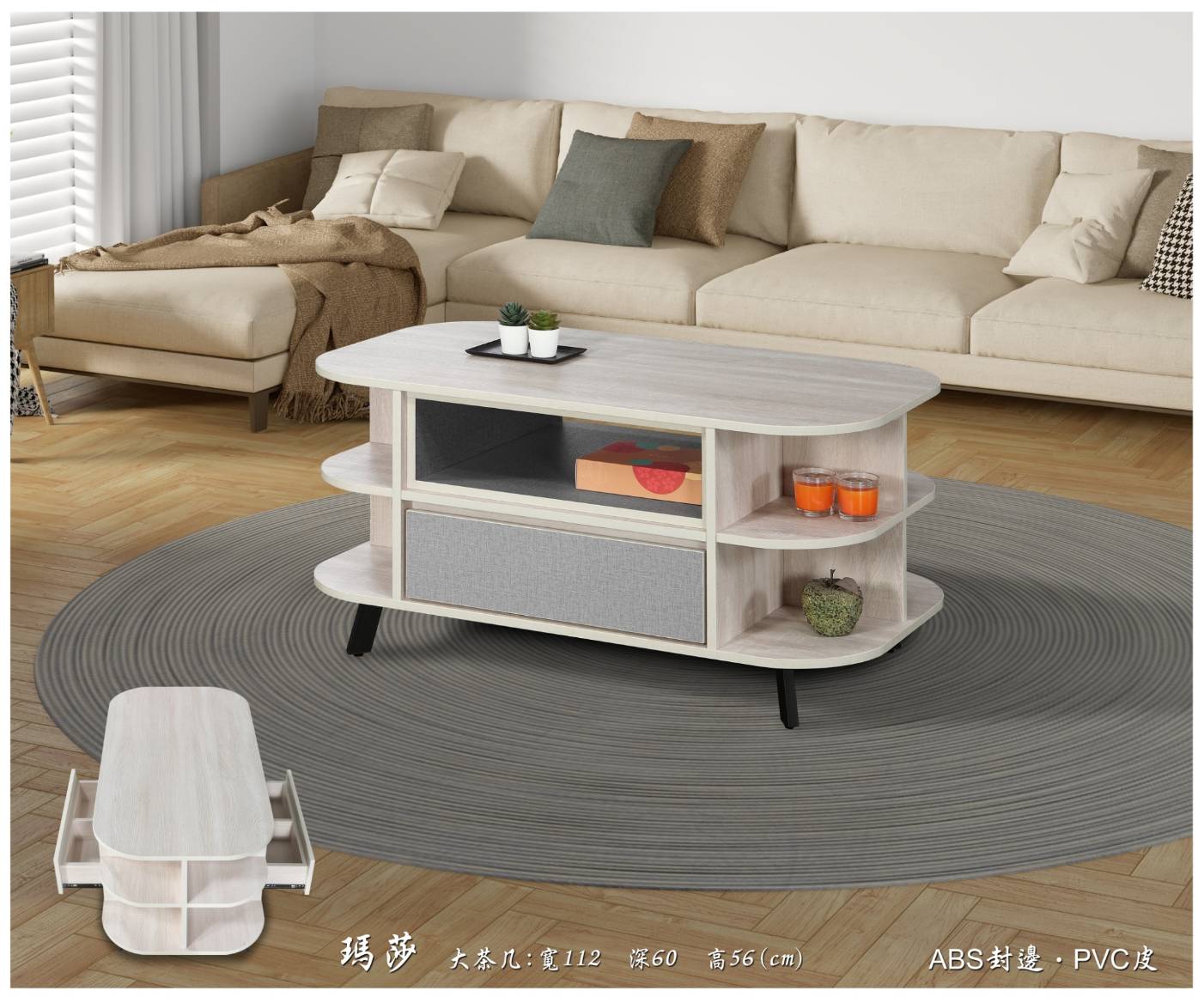 615 大茶几(淺色)