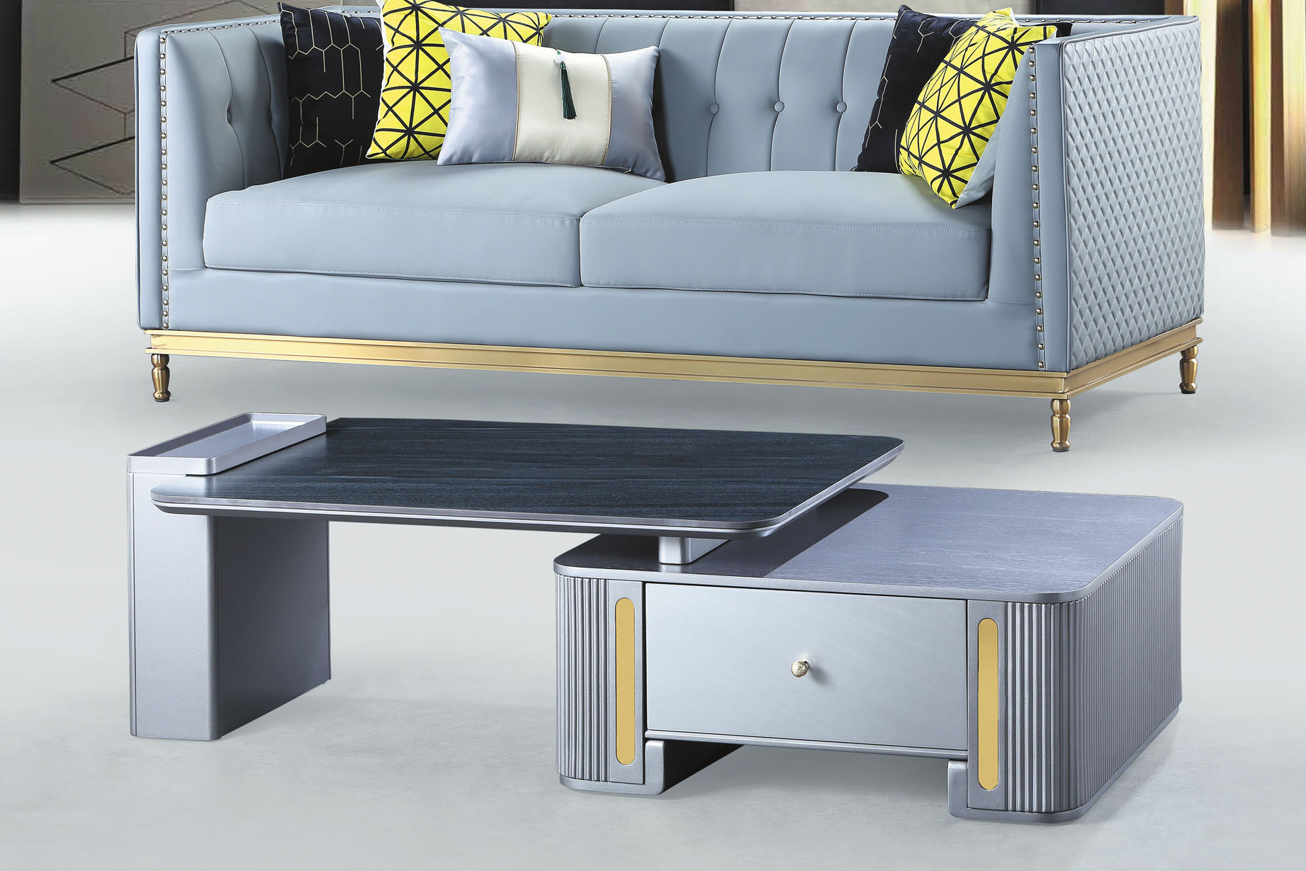 天馳二抽科技石伸縮大茶几