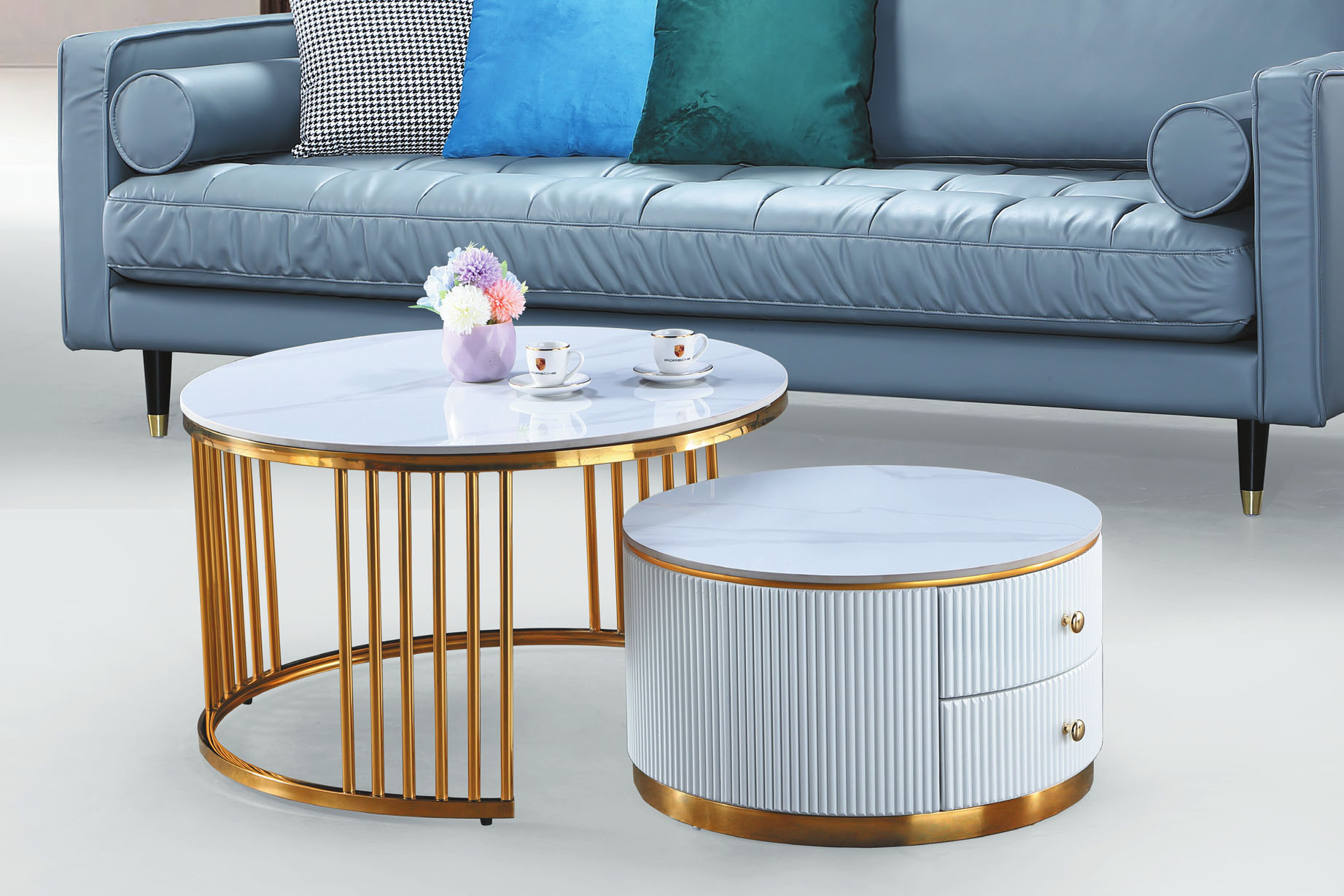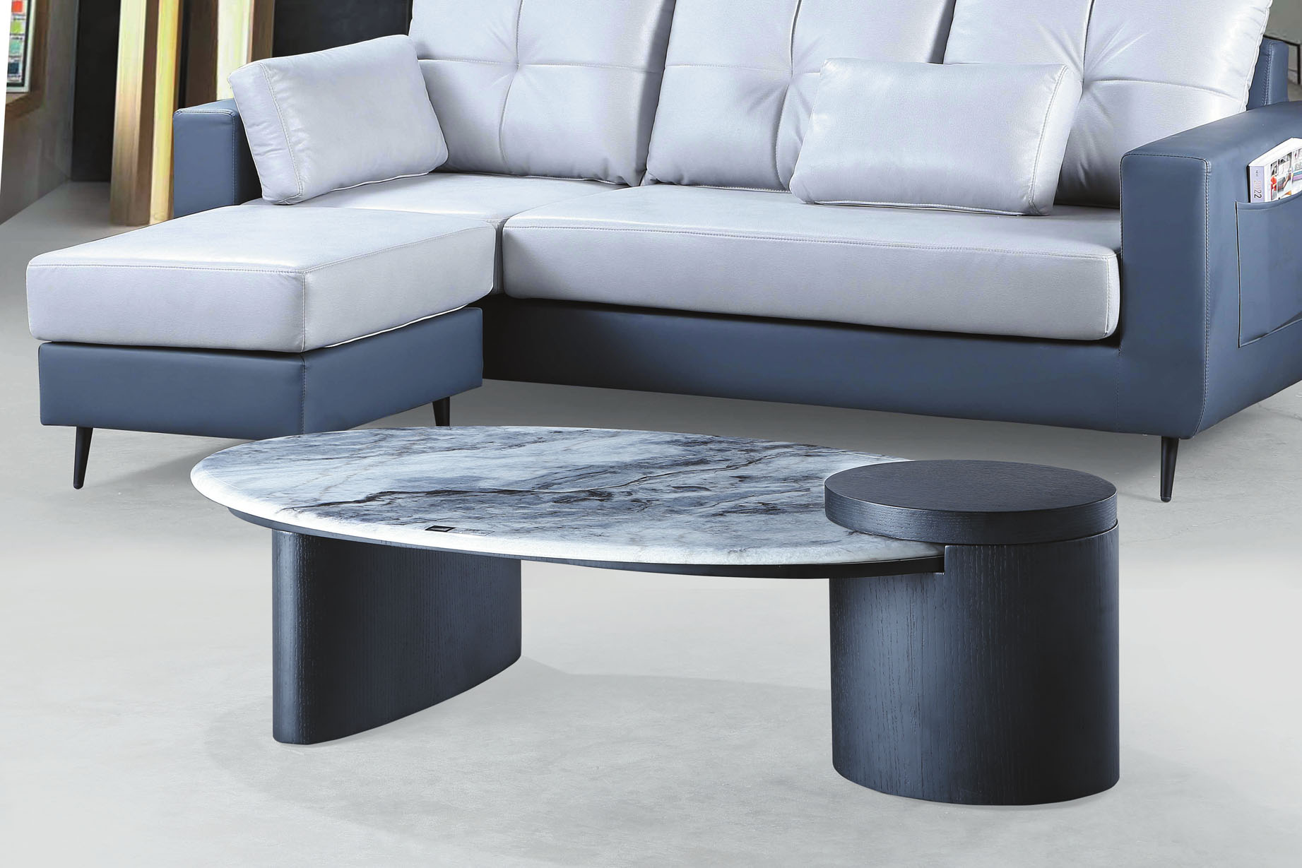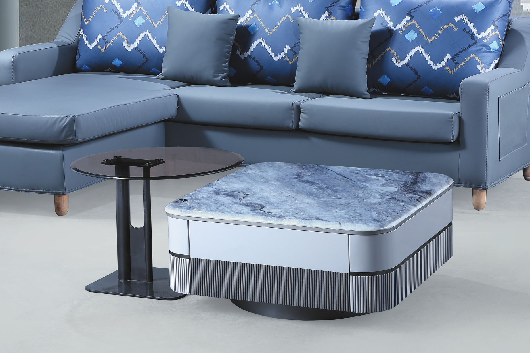 A201藍灰皮圓茶几