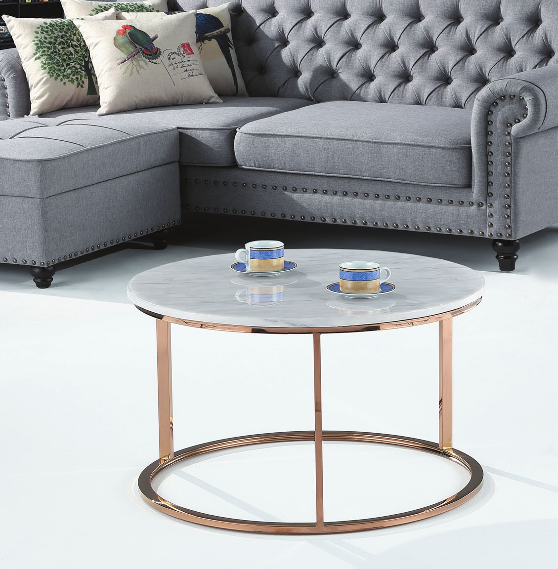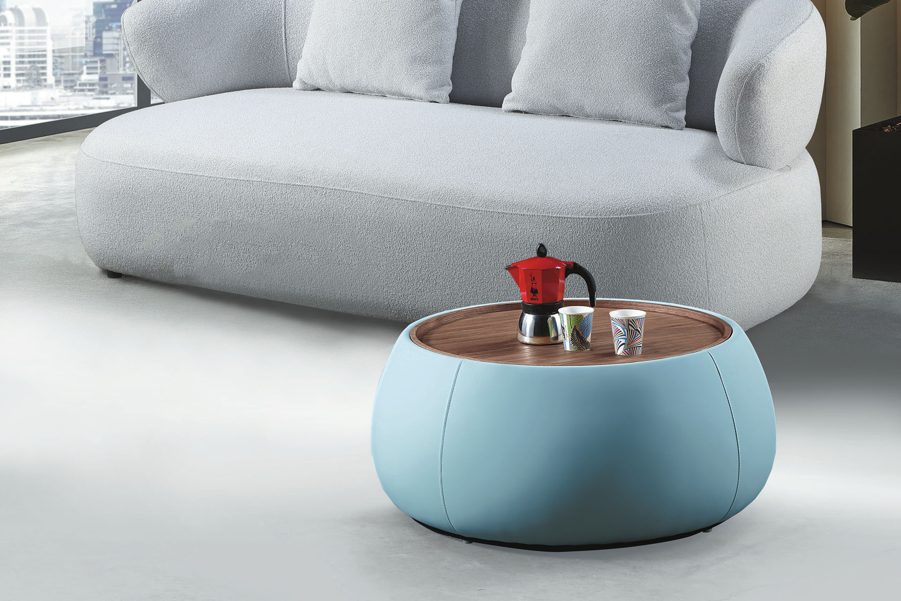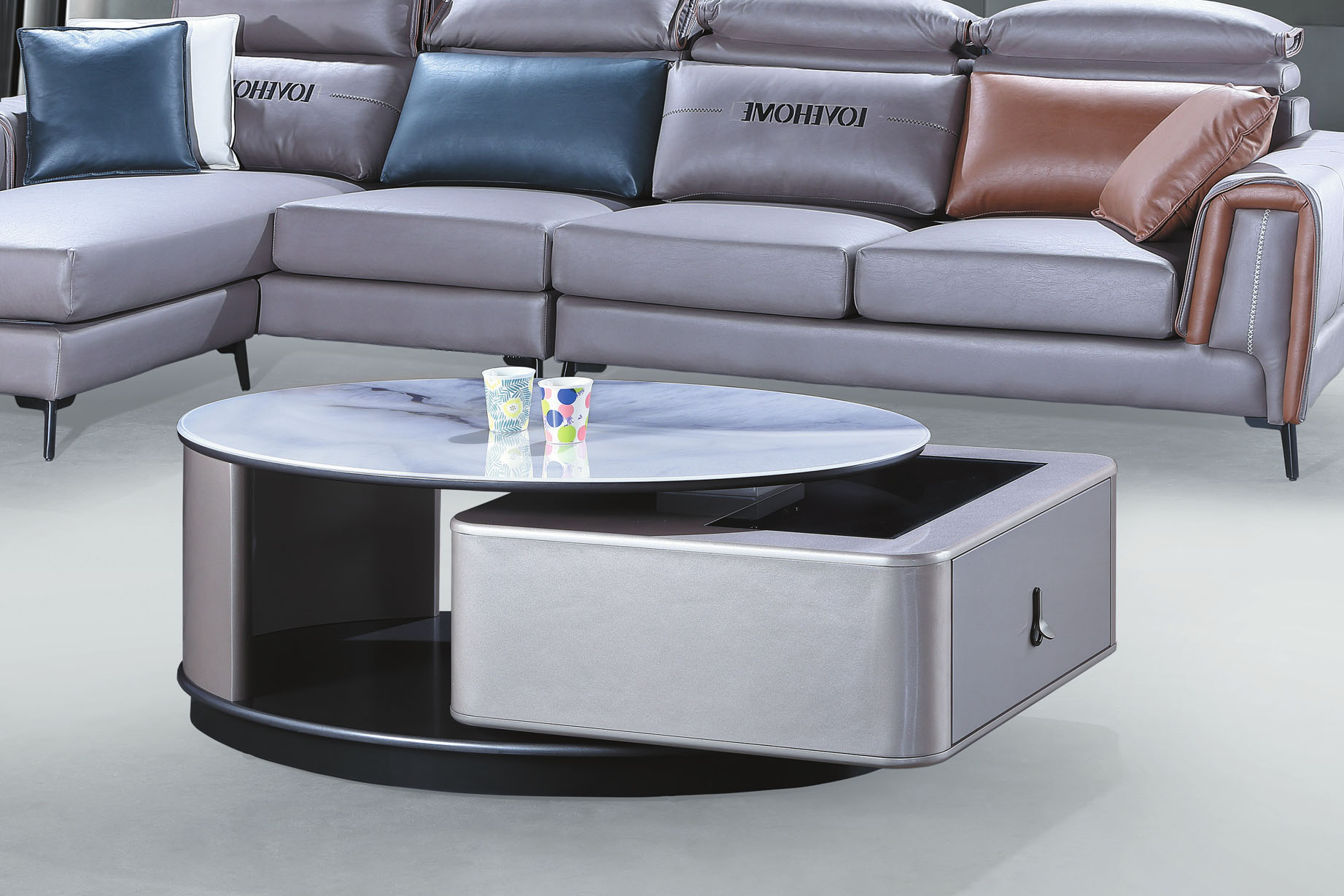 A201藍灰皮圓茶几