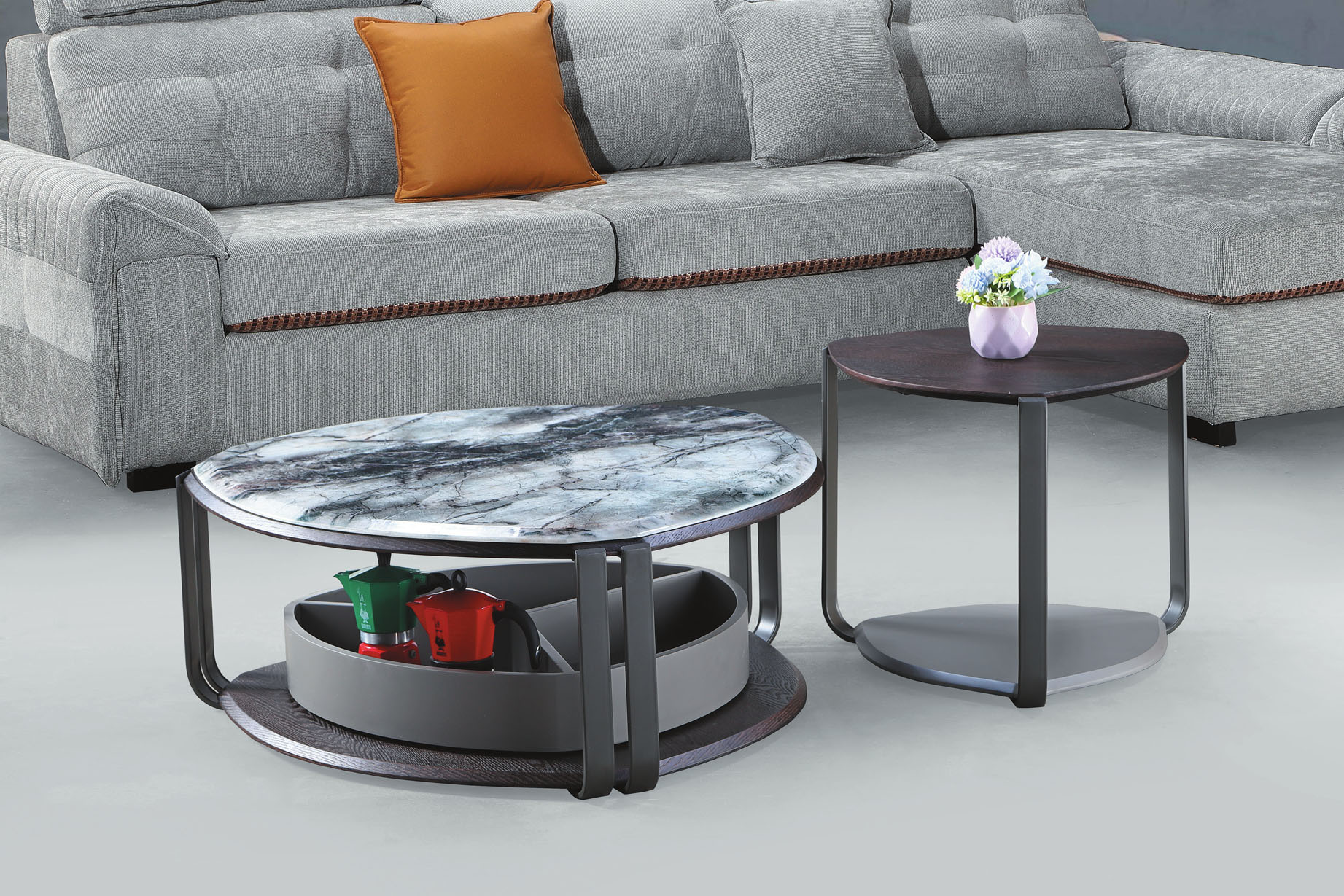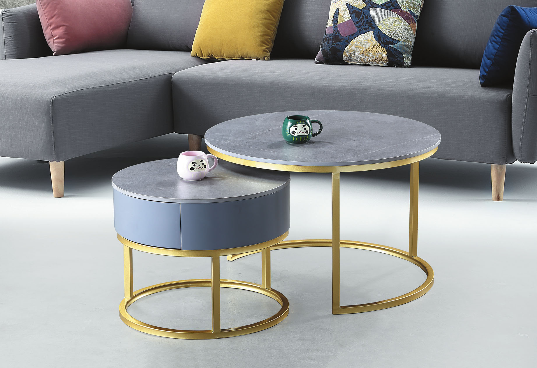 熊本二抽岩板組合圓几(全組)