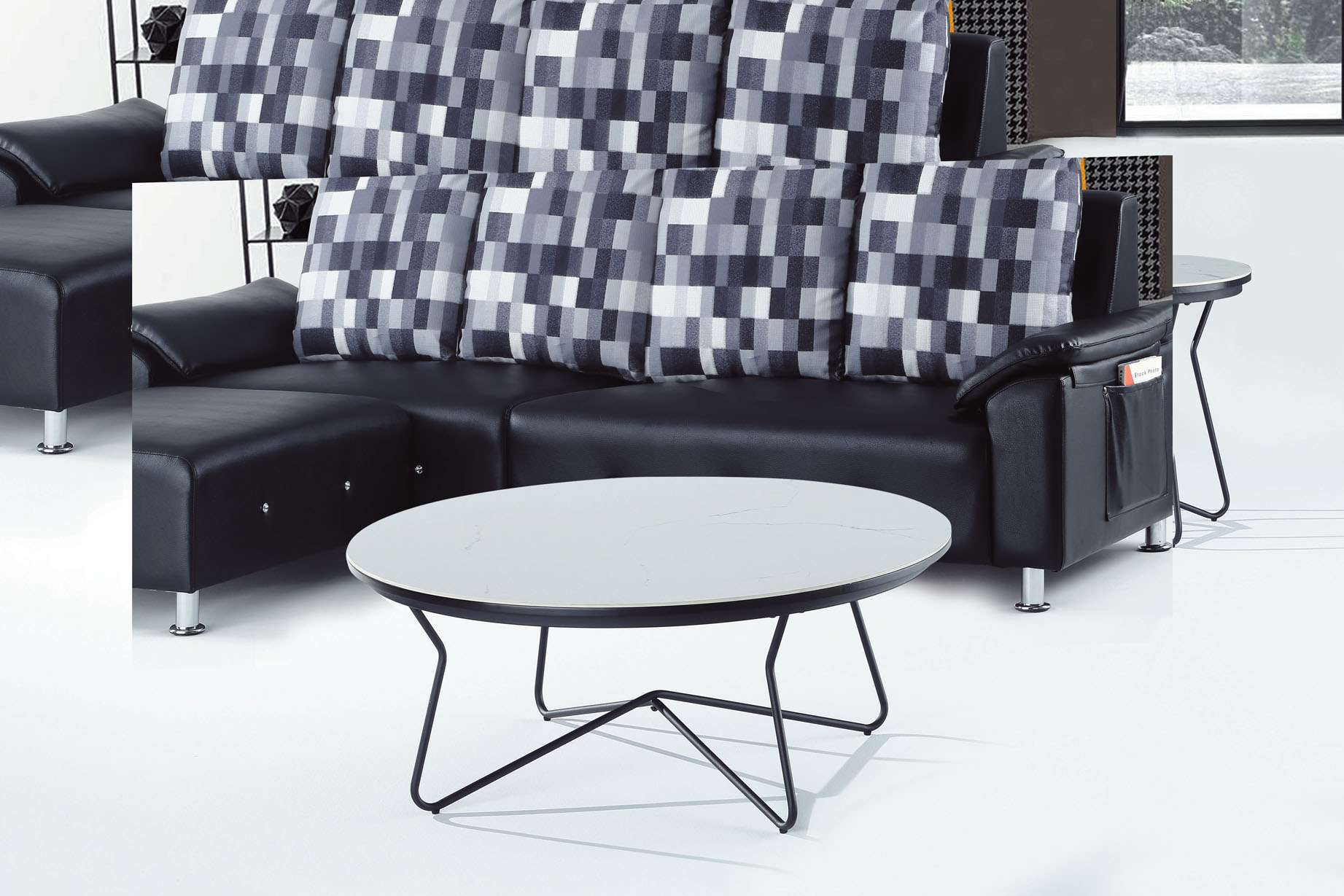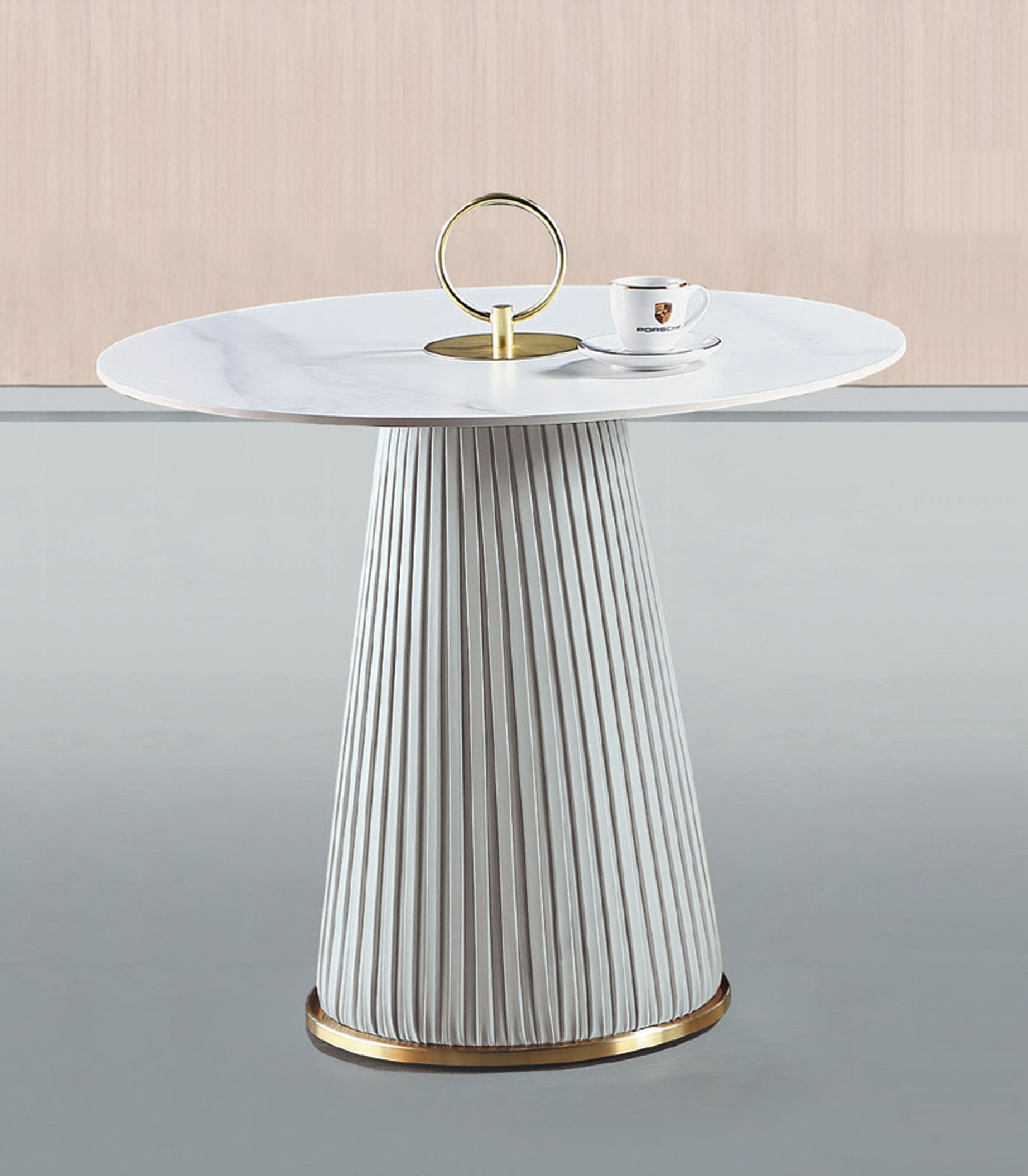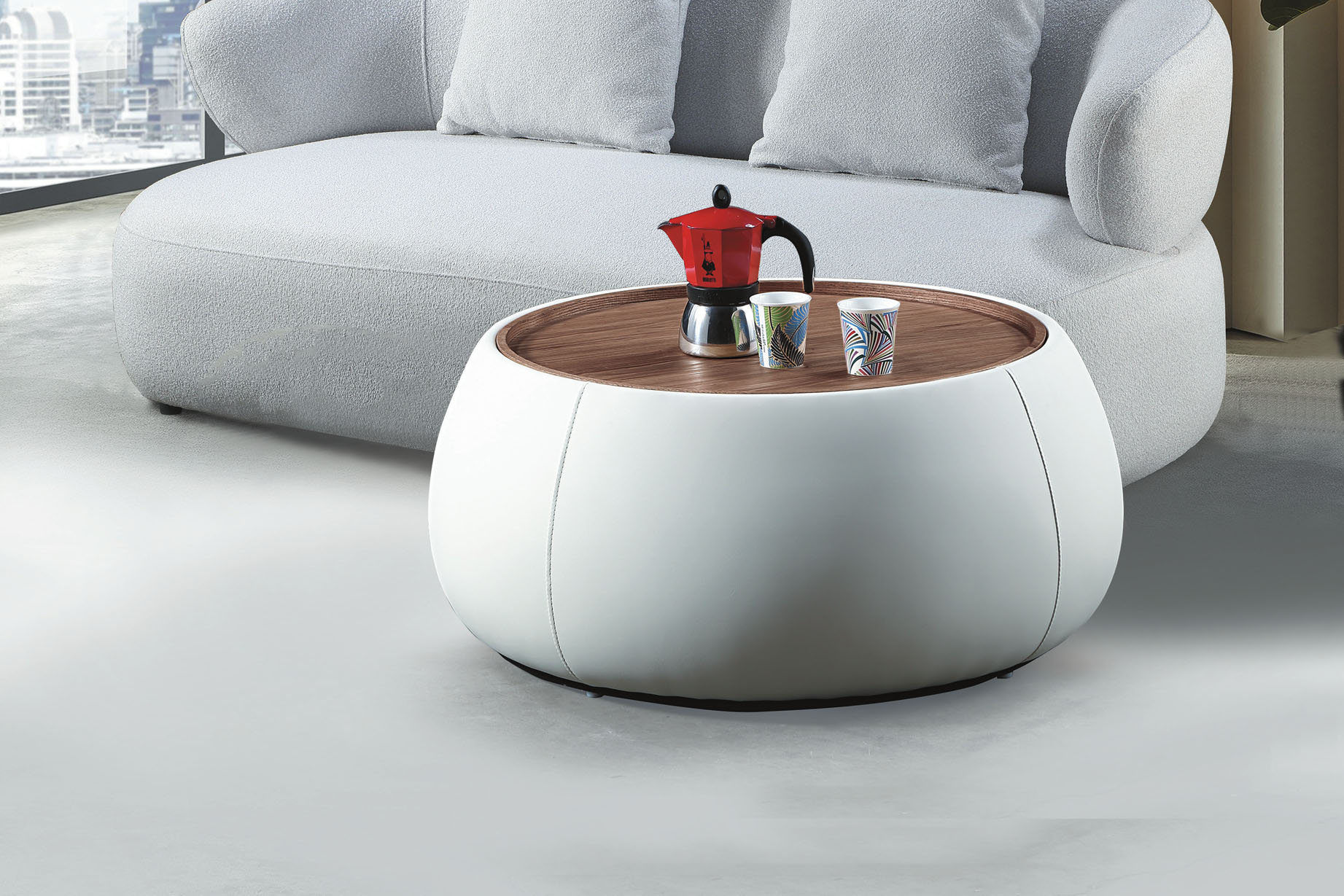 A201米白皮圓茶几