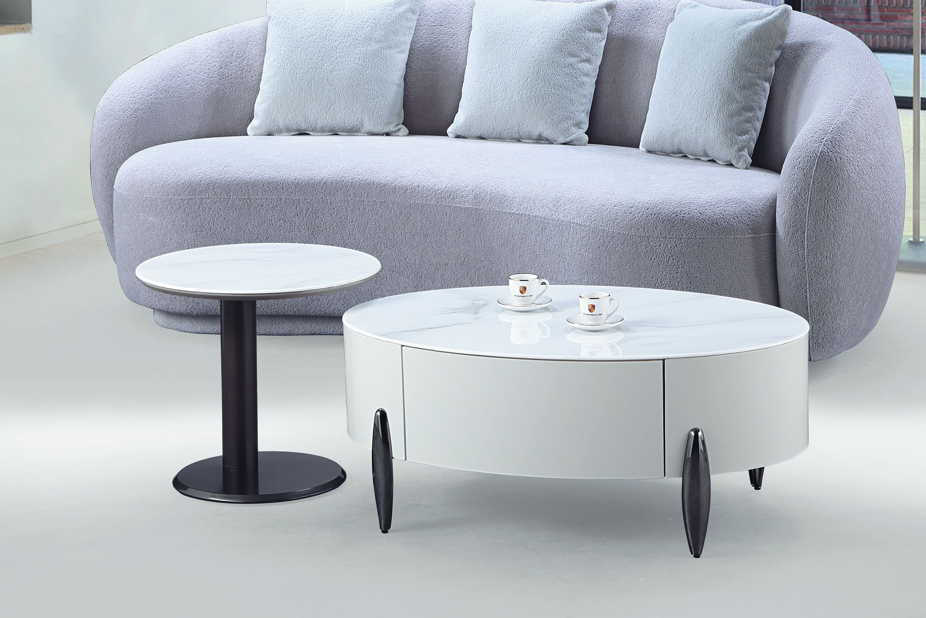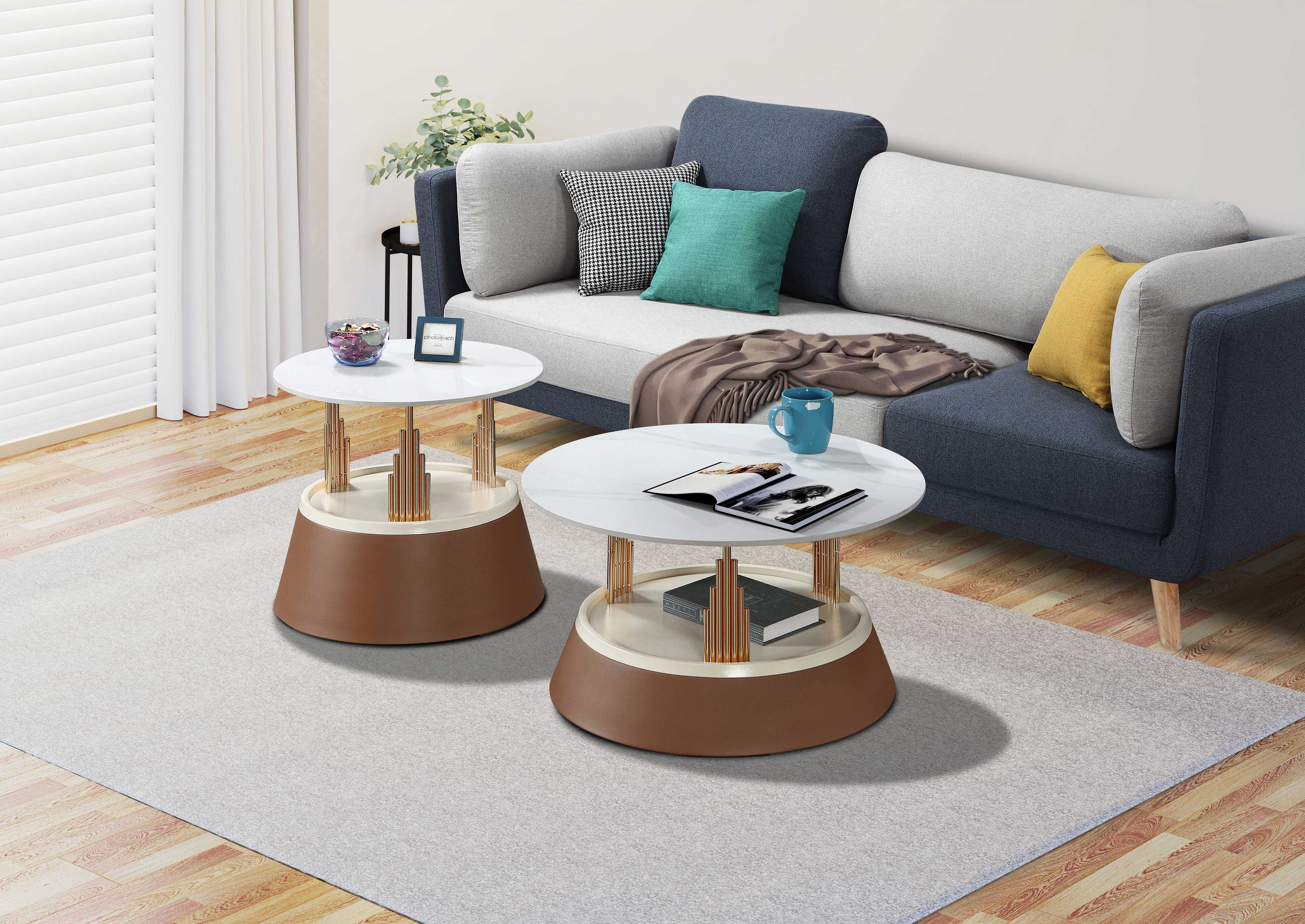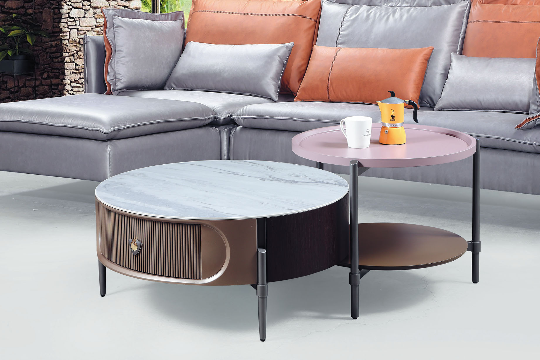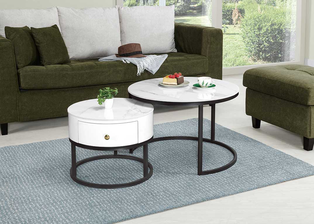 卡斯帕雙岩板組合圓几(全組)