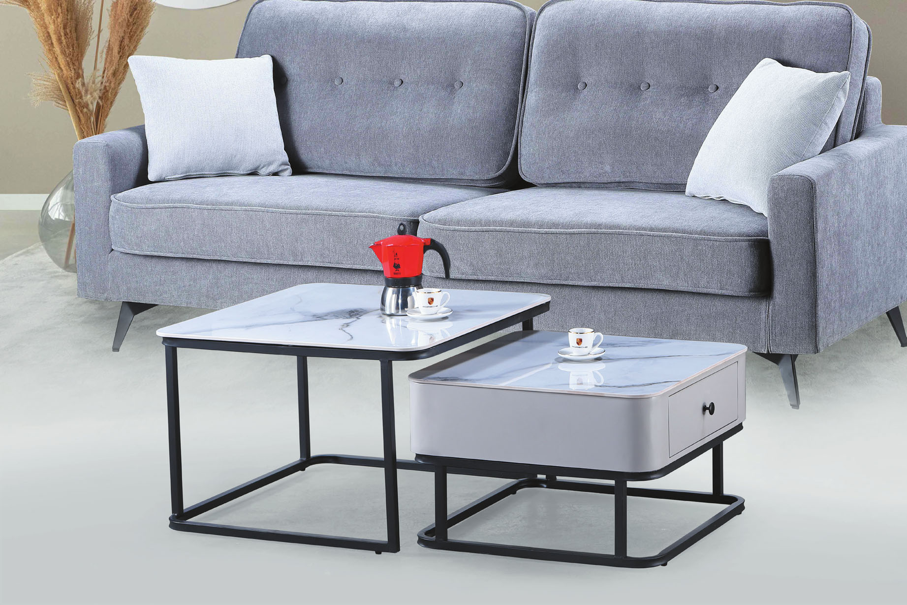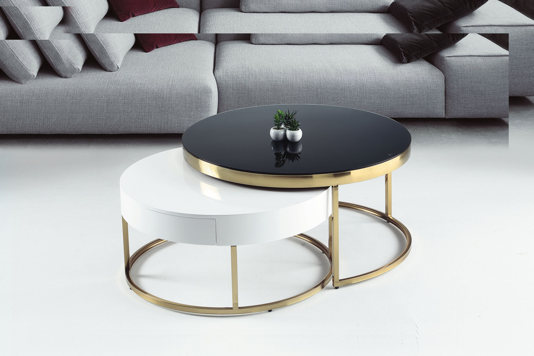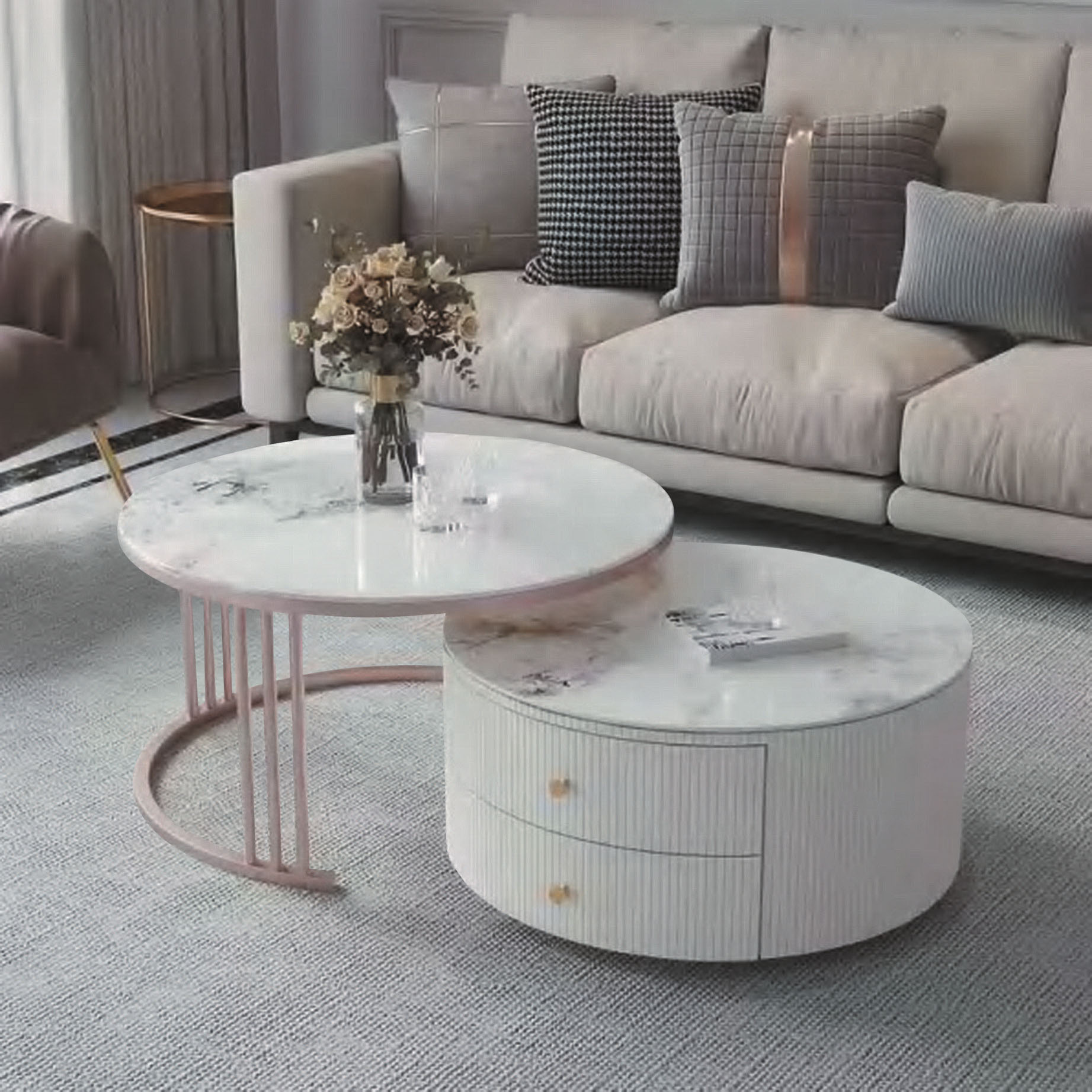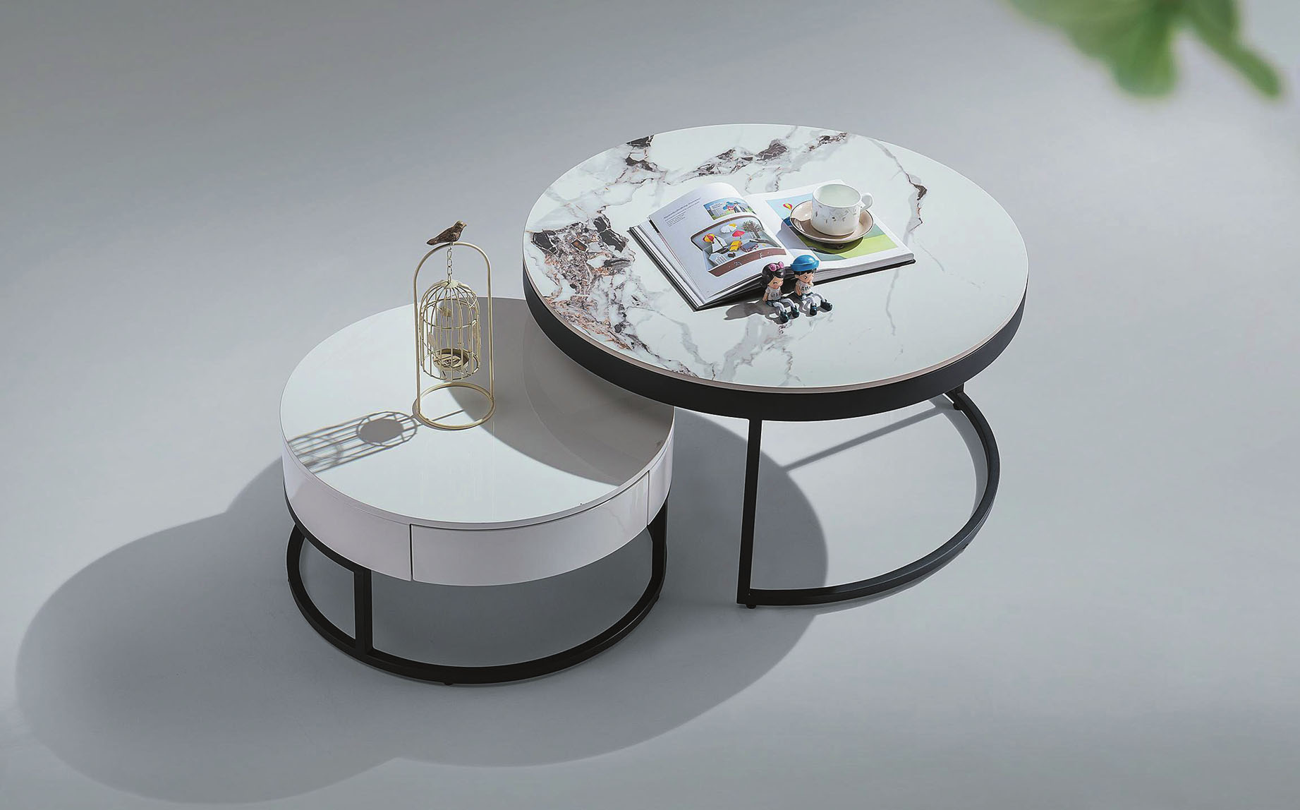 卡斯帕雙岩板組合圓几(全組)