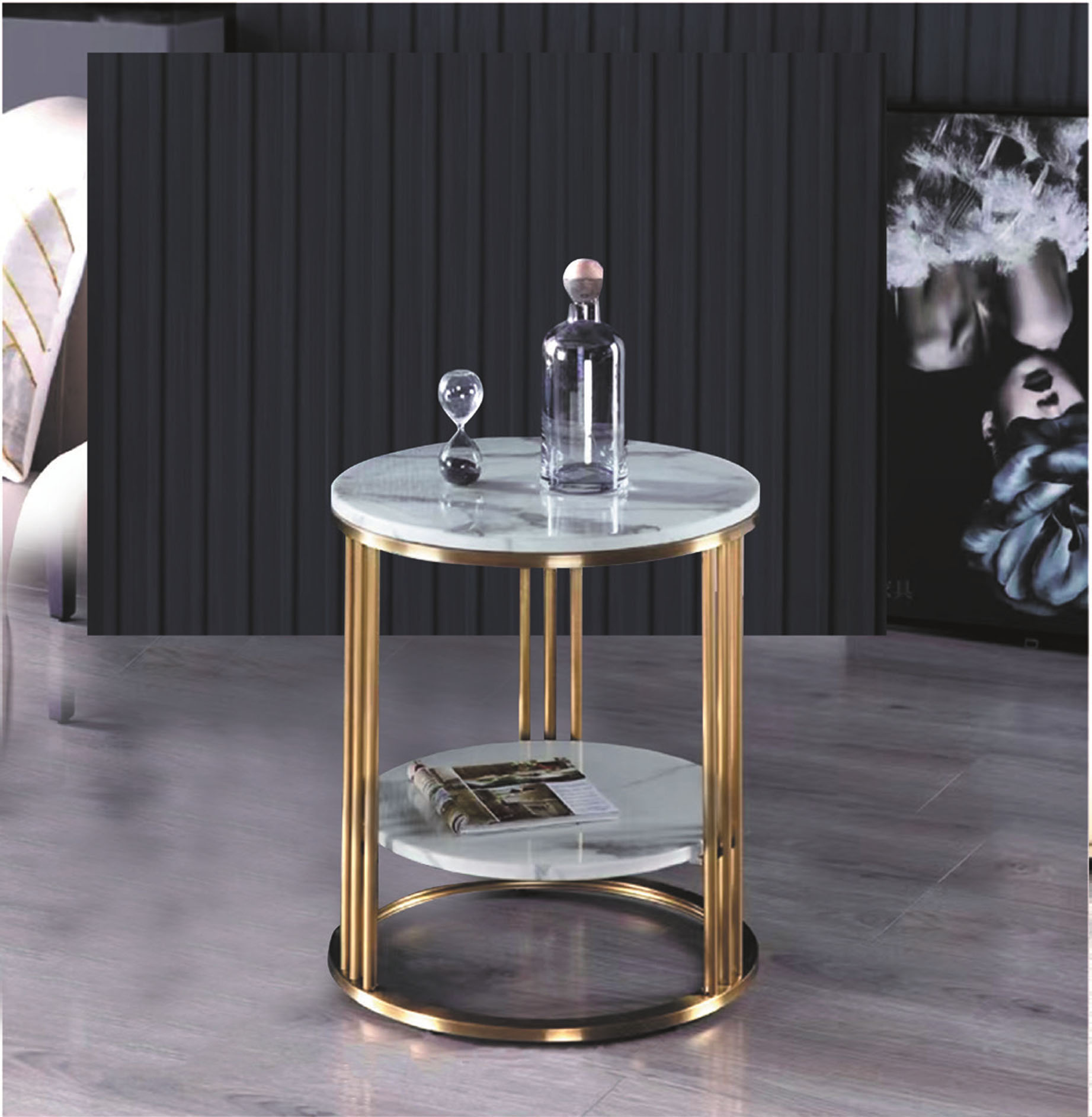 詩燦鋼琴雙岩板組合圓几(全組)