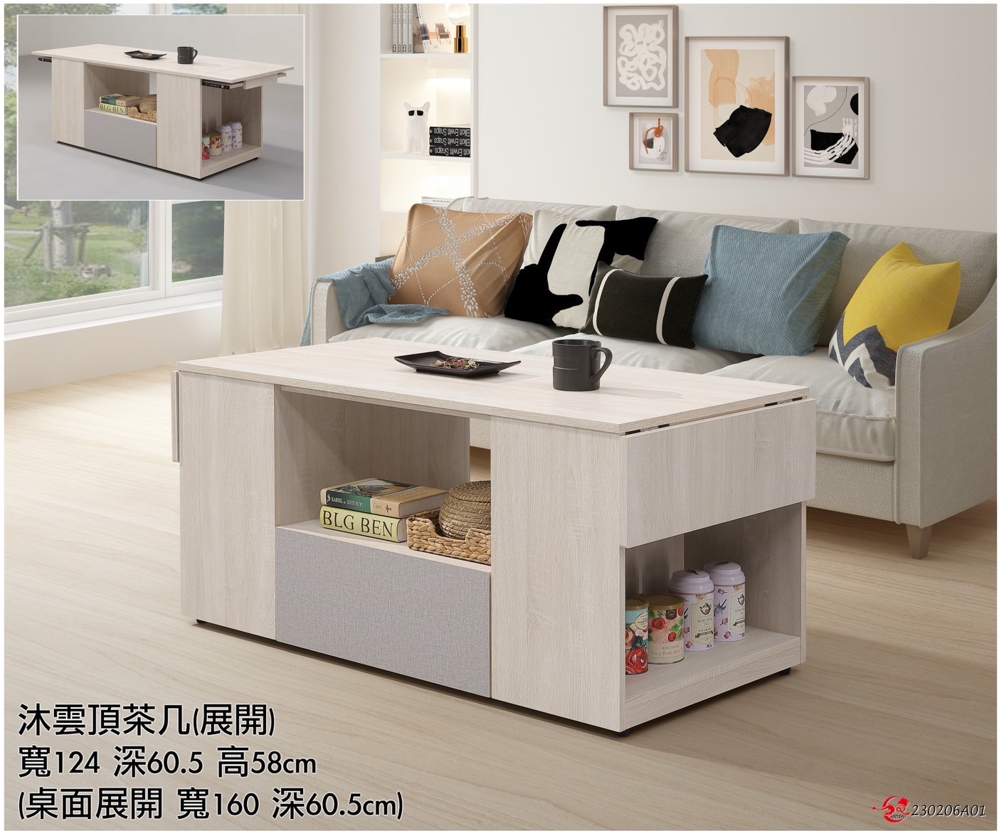 納特多功能升降茶几