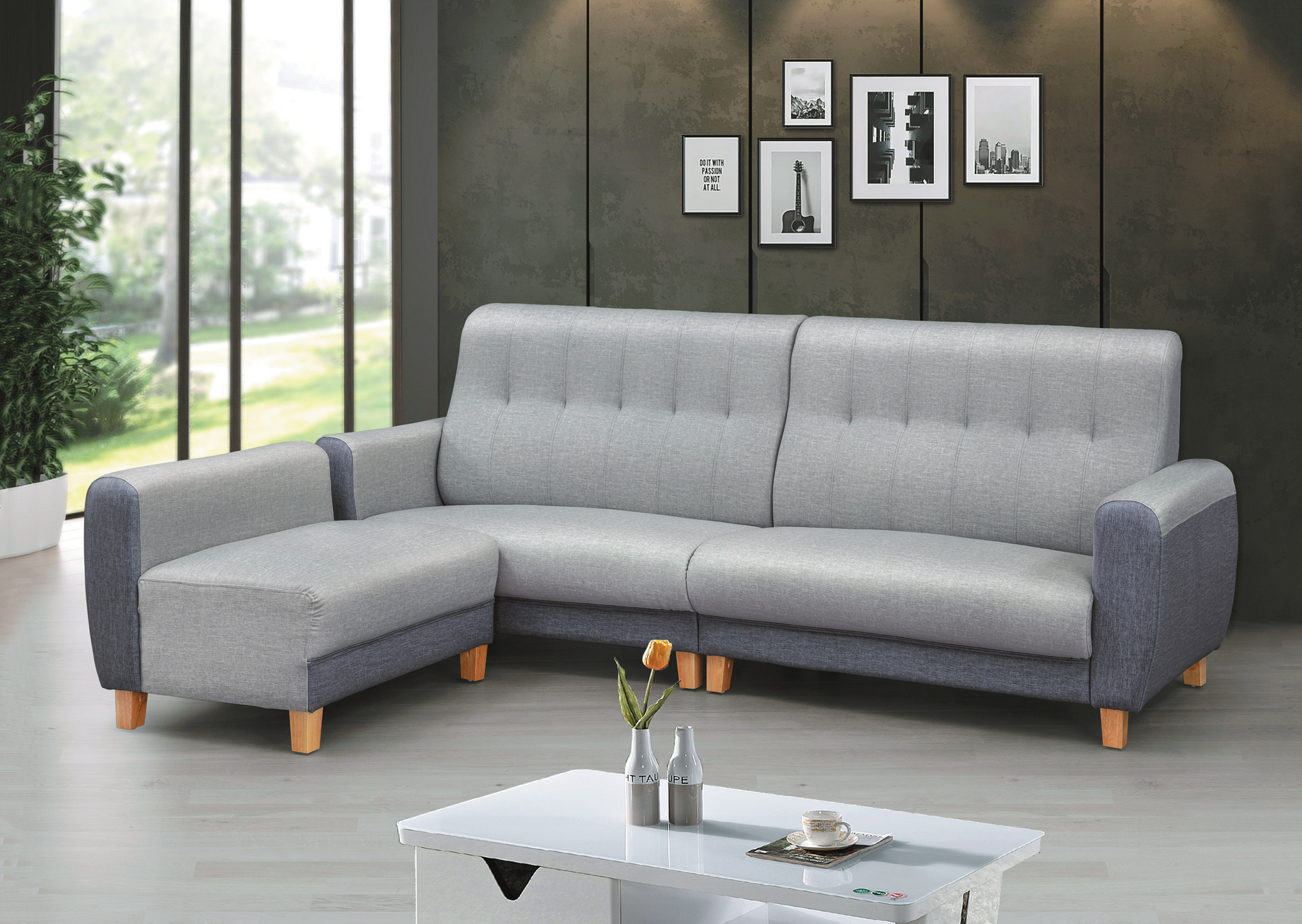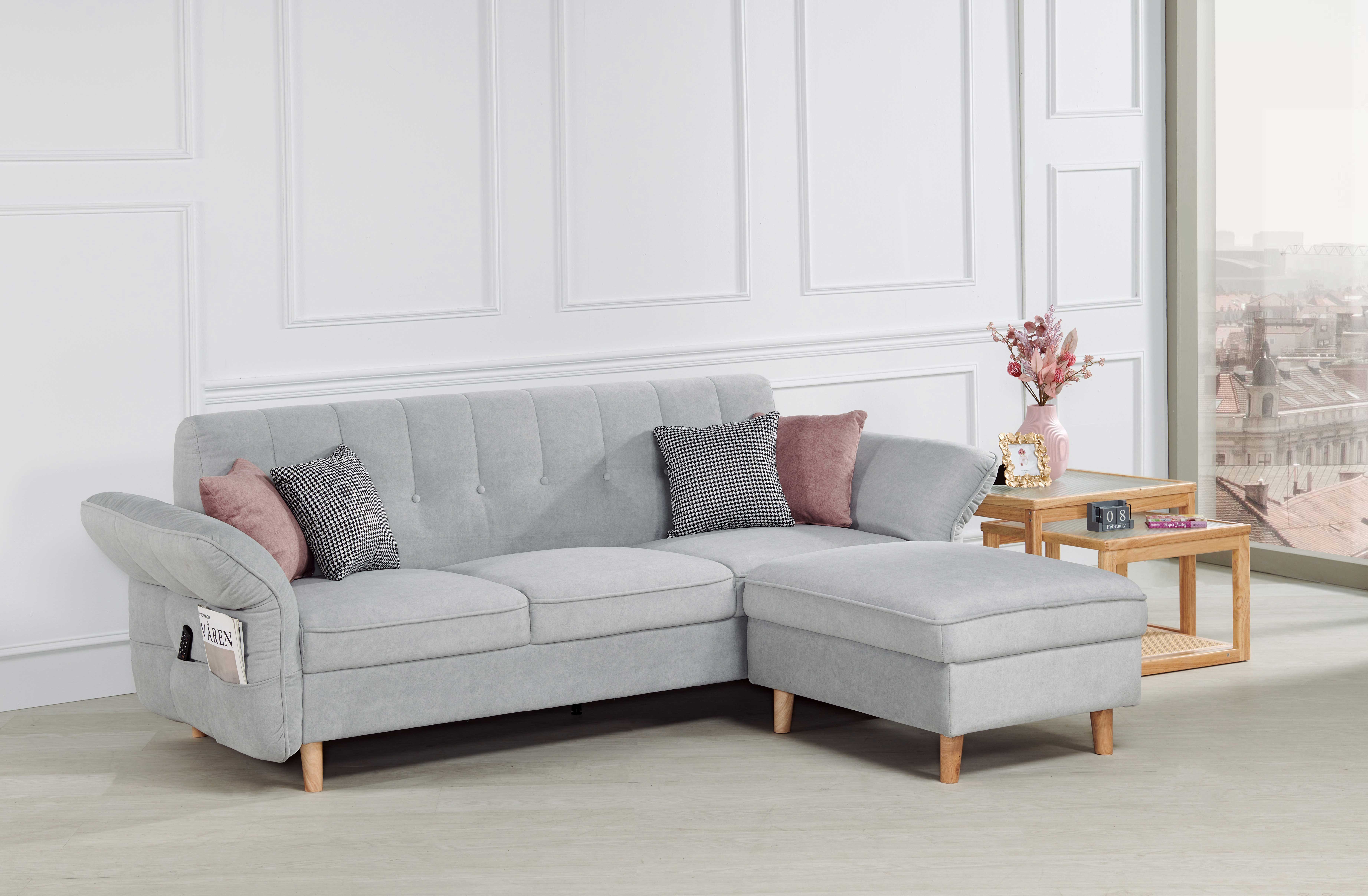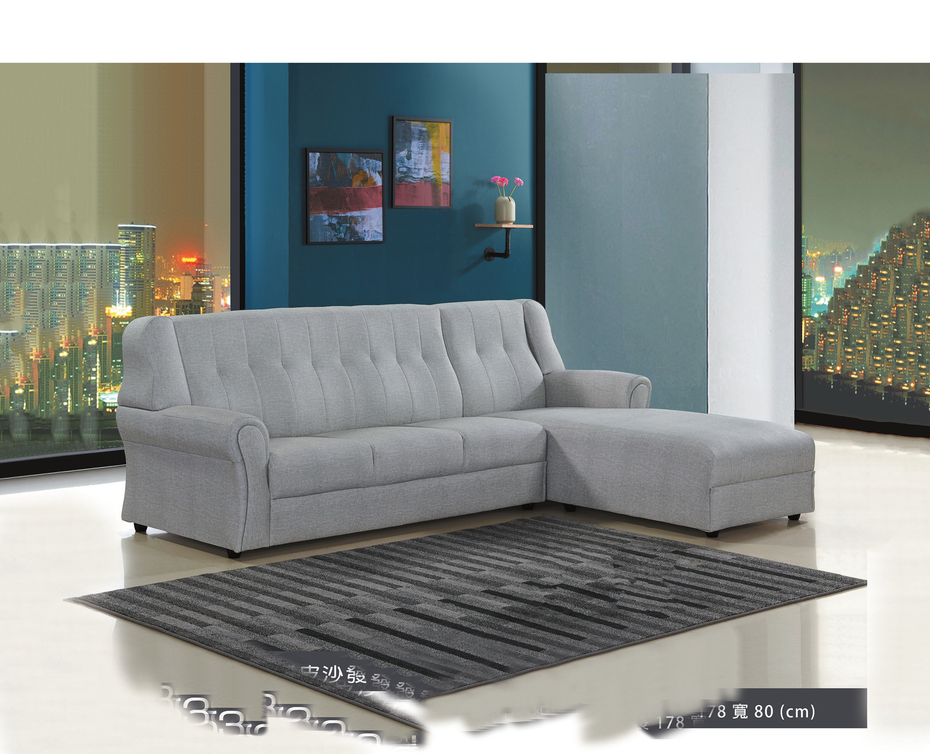 2355B 灰麻L型沙發
