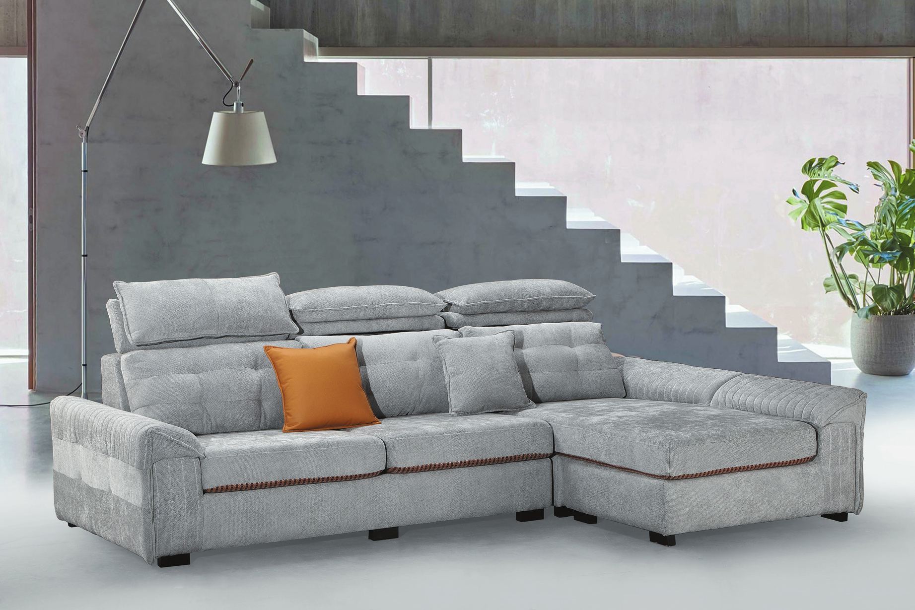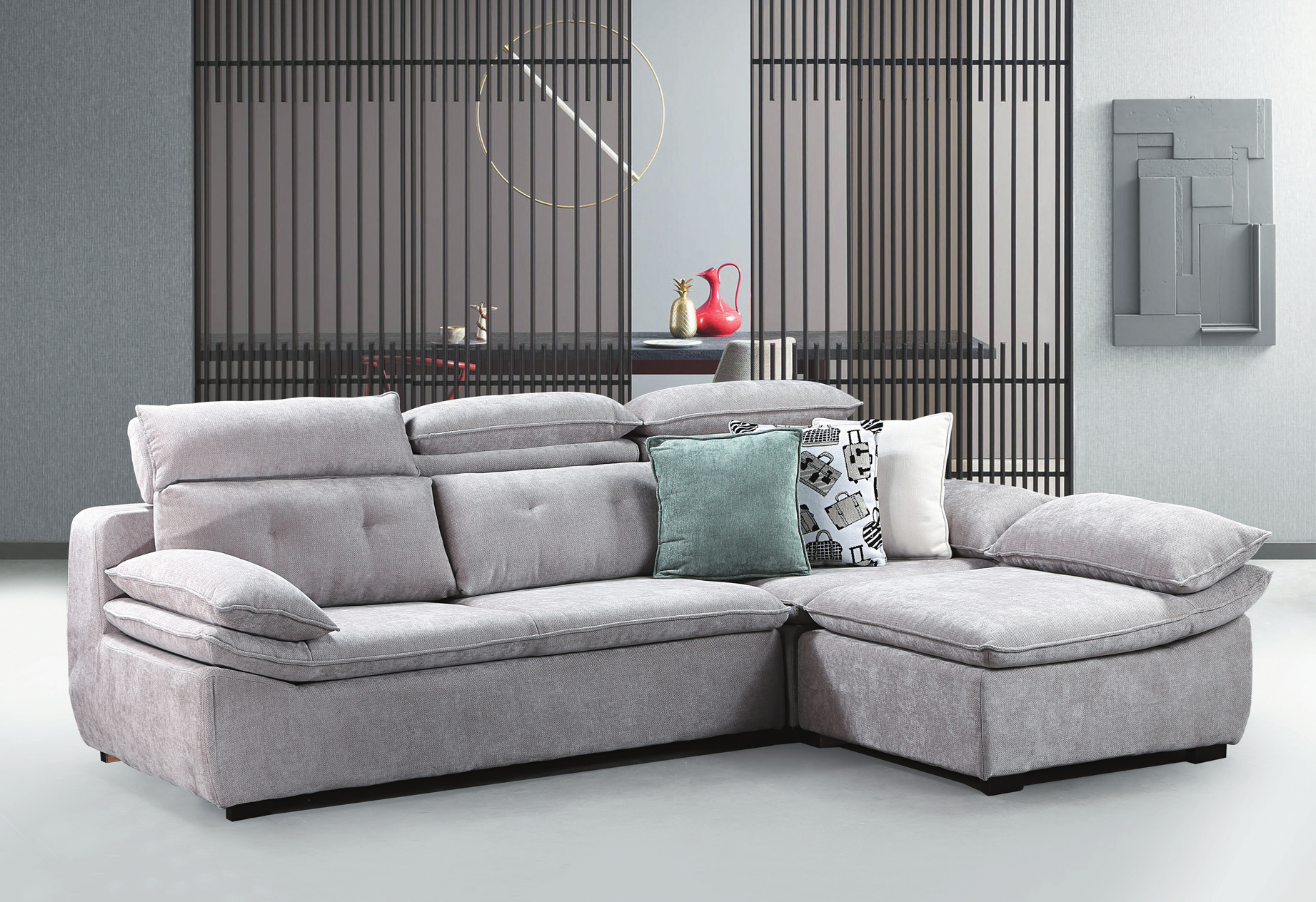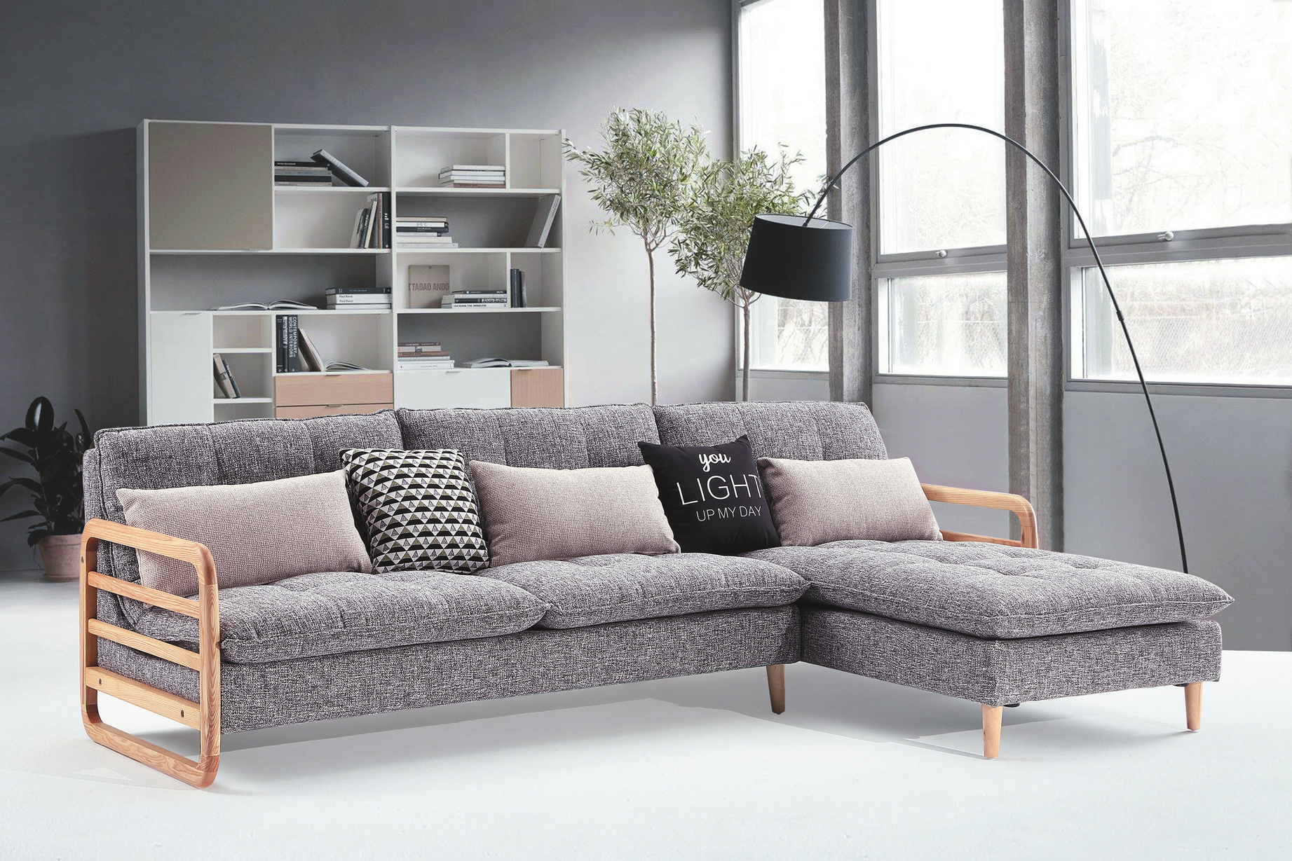 2355B 灰麻L型沙發