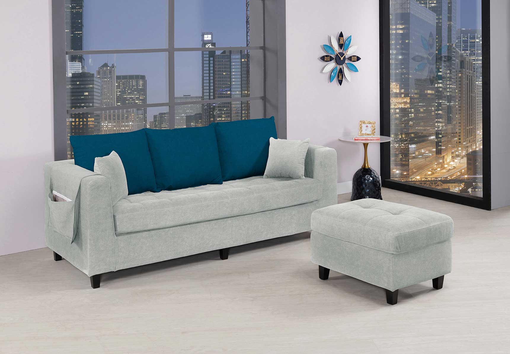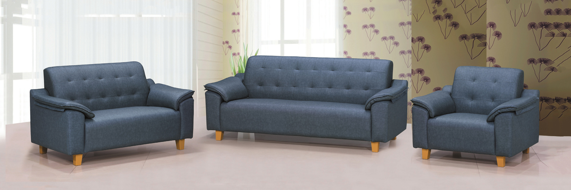 1805 沙發(藍)(三人+腳椅)