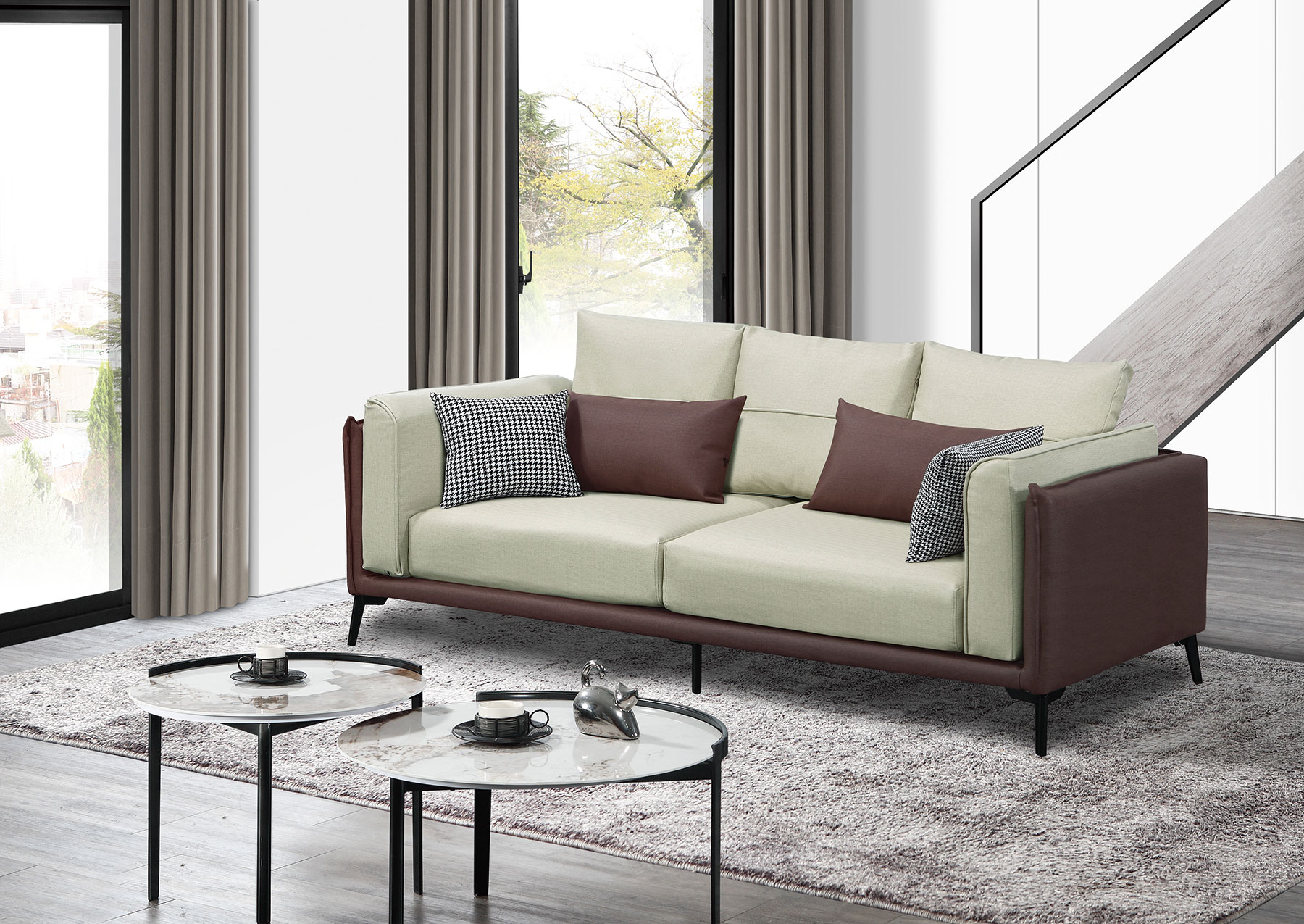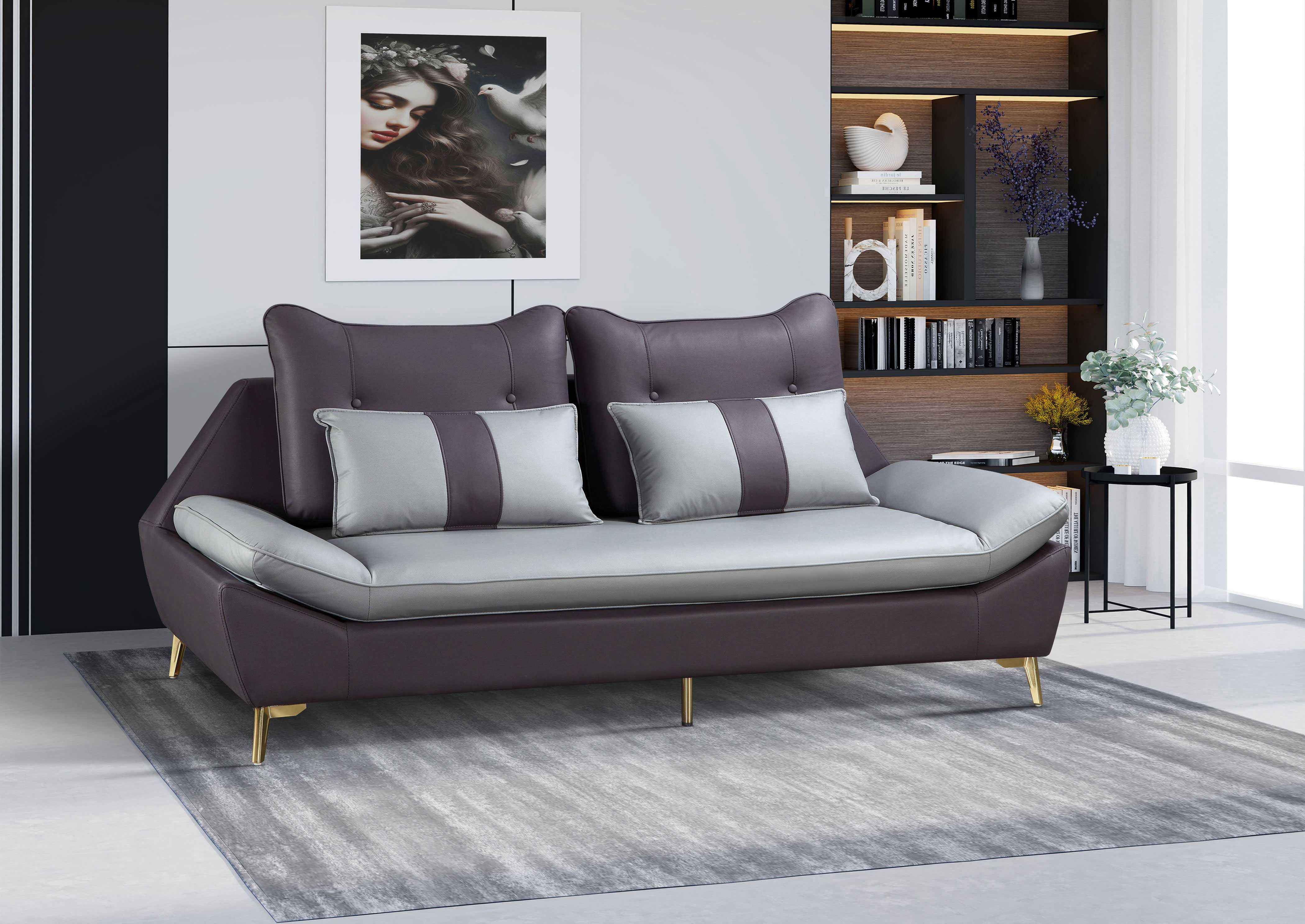 T93沙發(灰+咖啡皮)