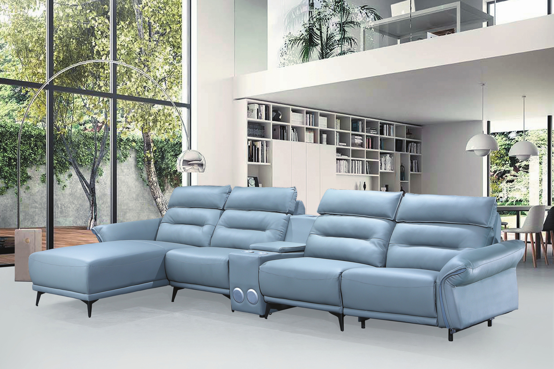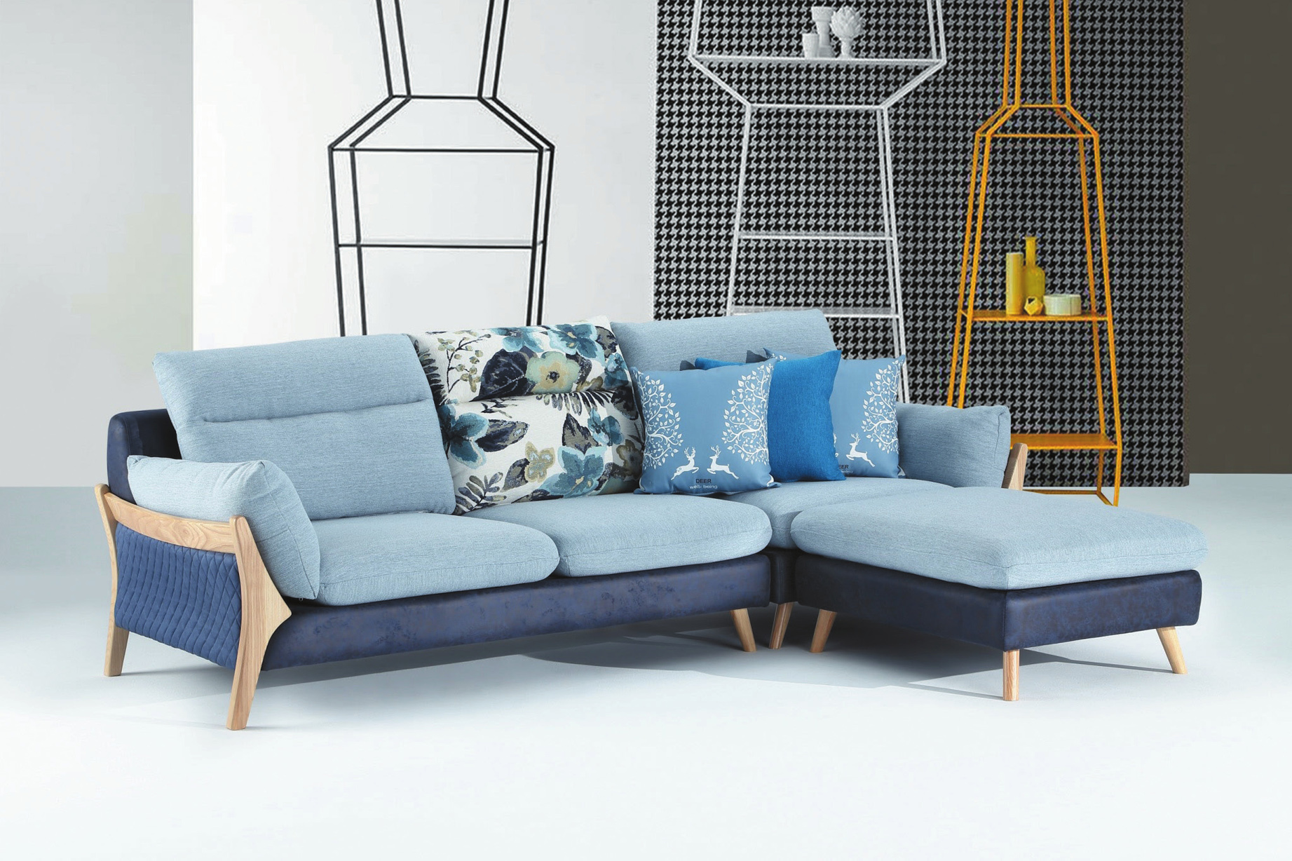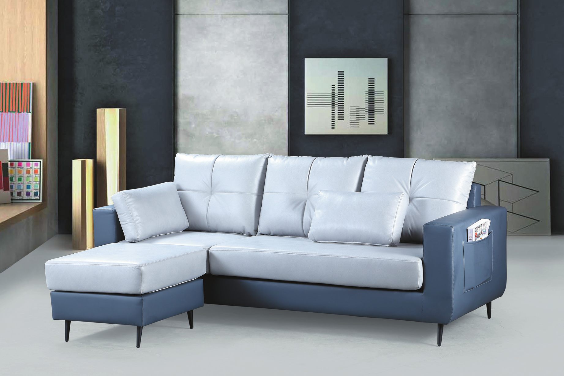 1701雙色皮L型沙發(藍色)