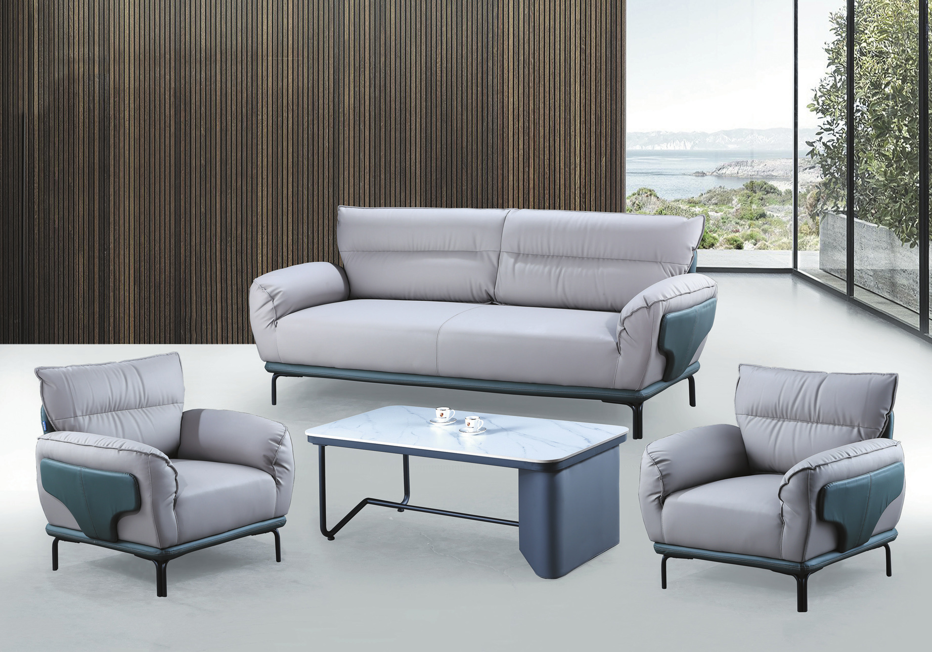 338型灰皮沙發