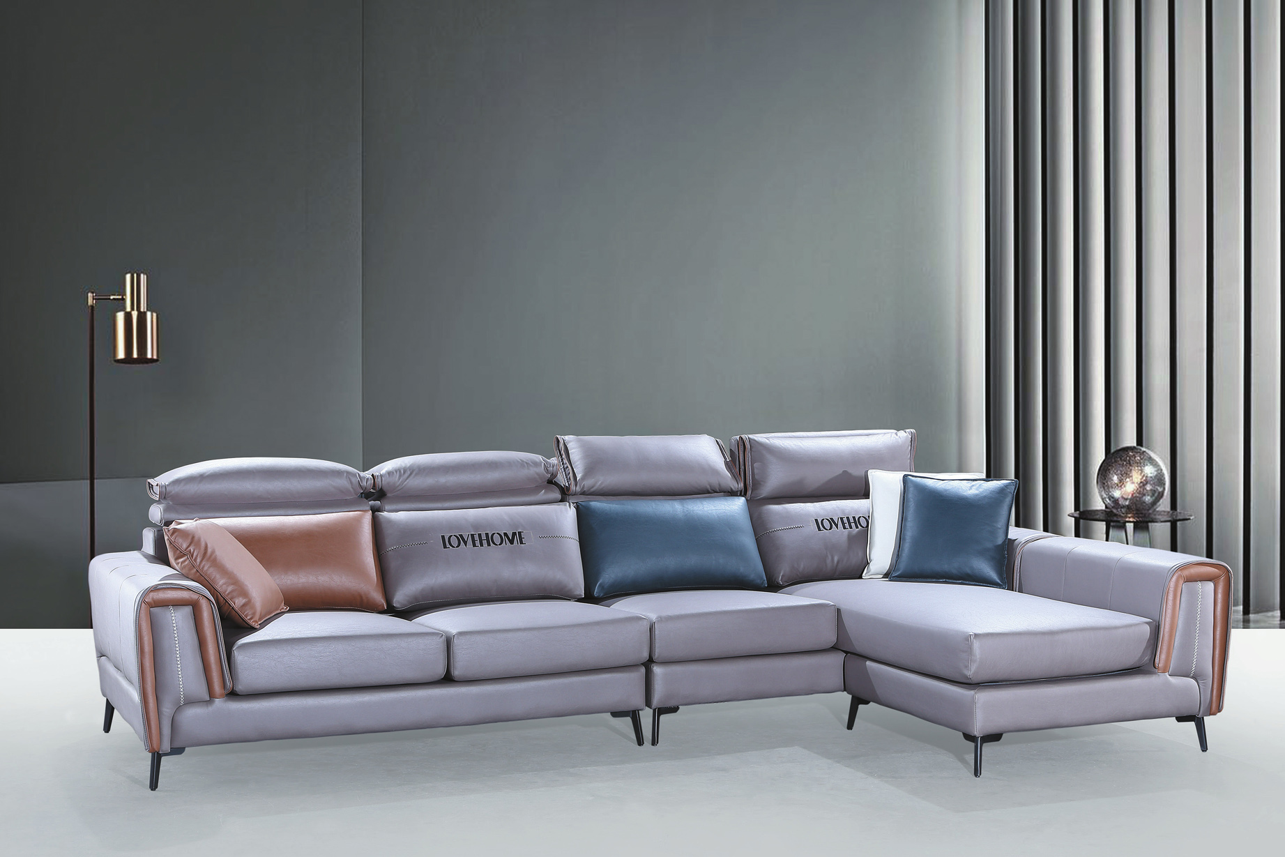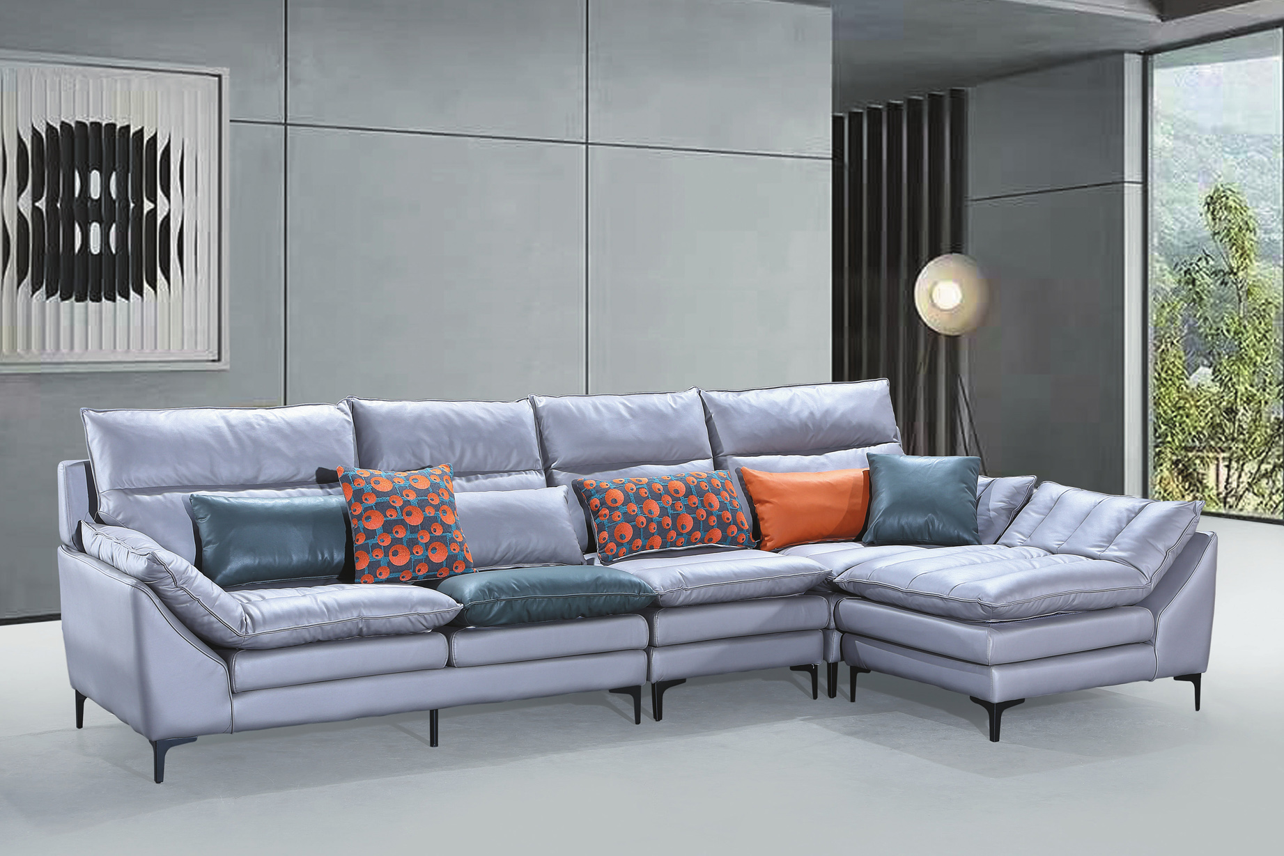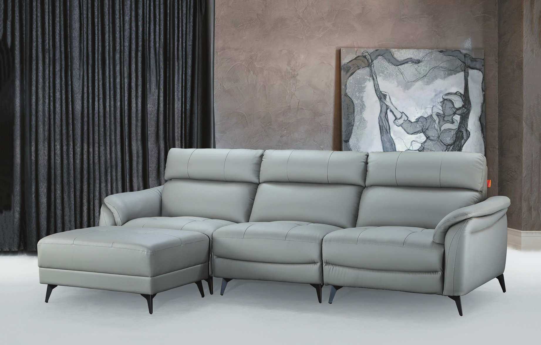 TK08B灰皮L型沙發