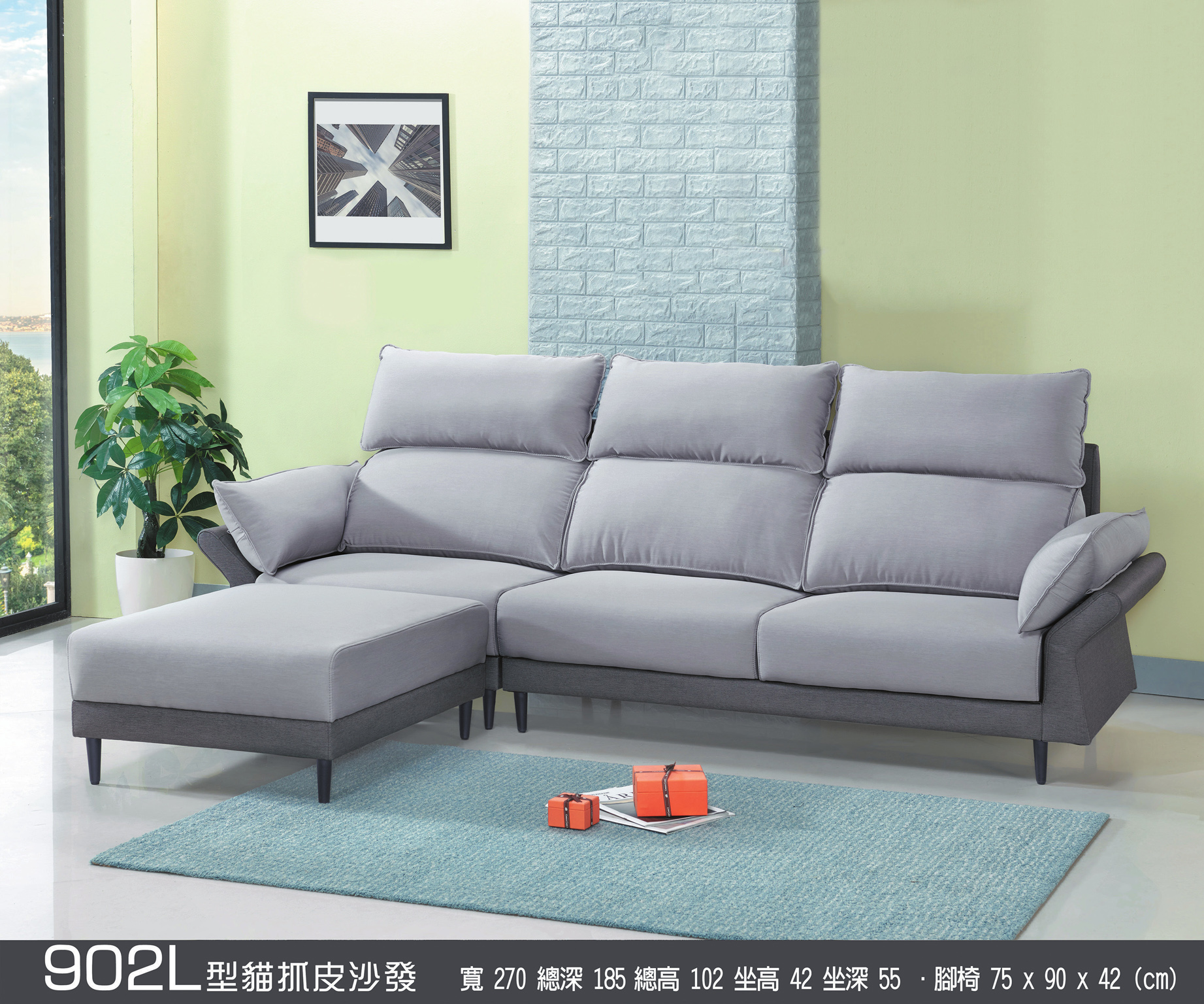 1618貓抓皮灰皮L型沙發