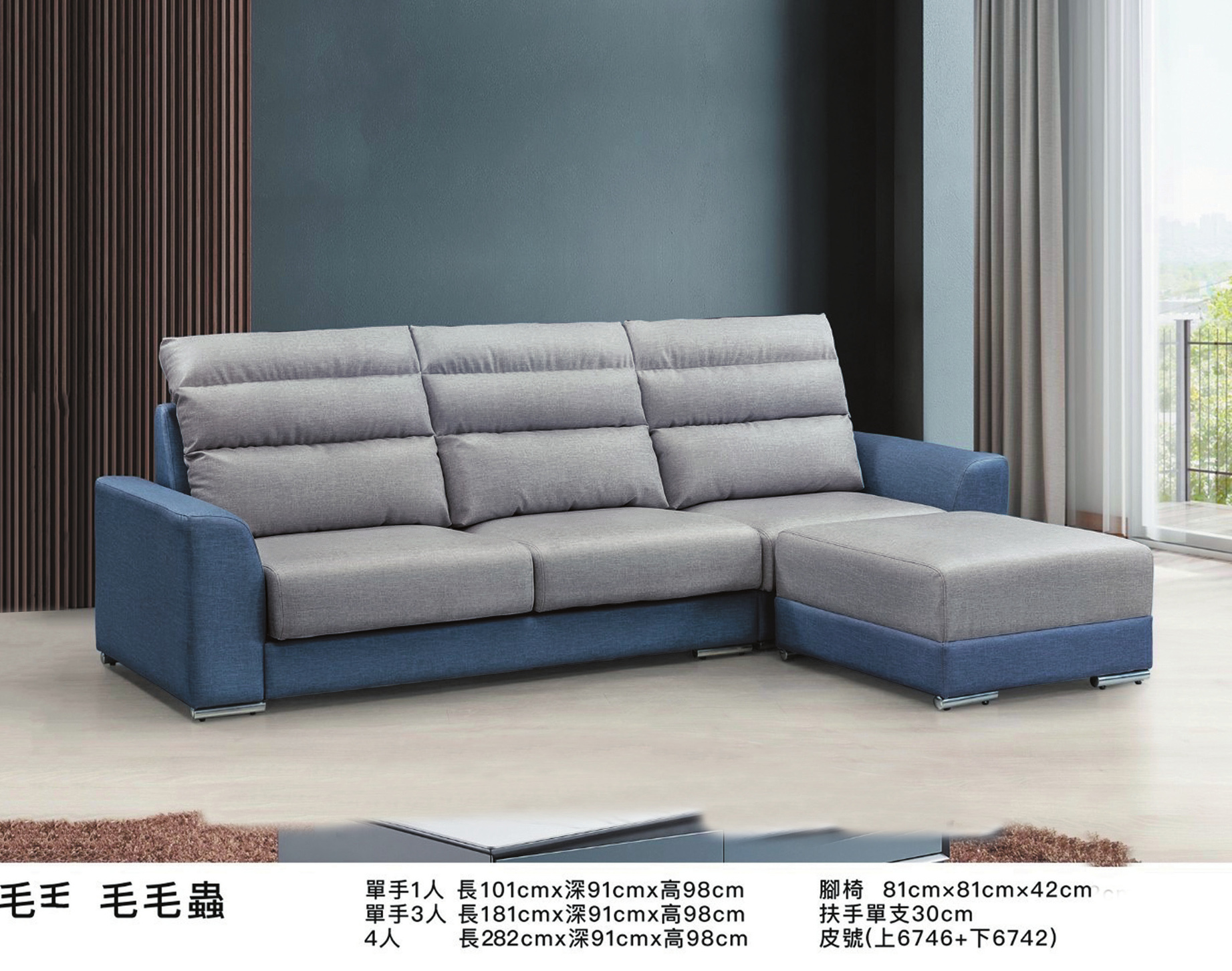 毛毛蟲L型沙發(2+1+腳椅)