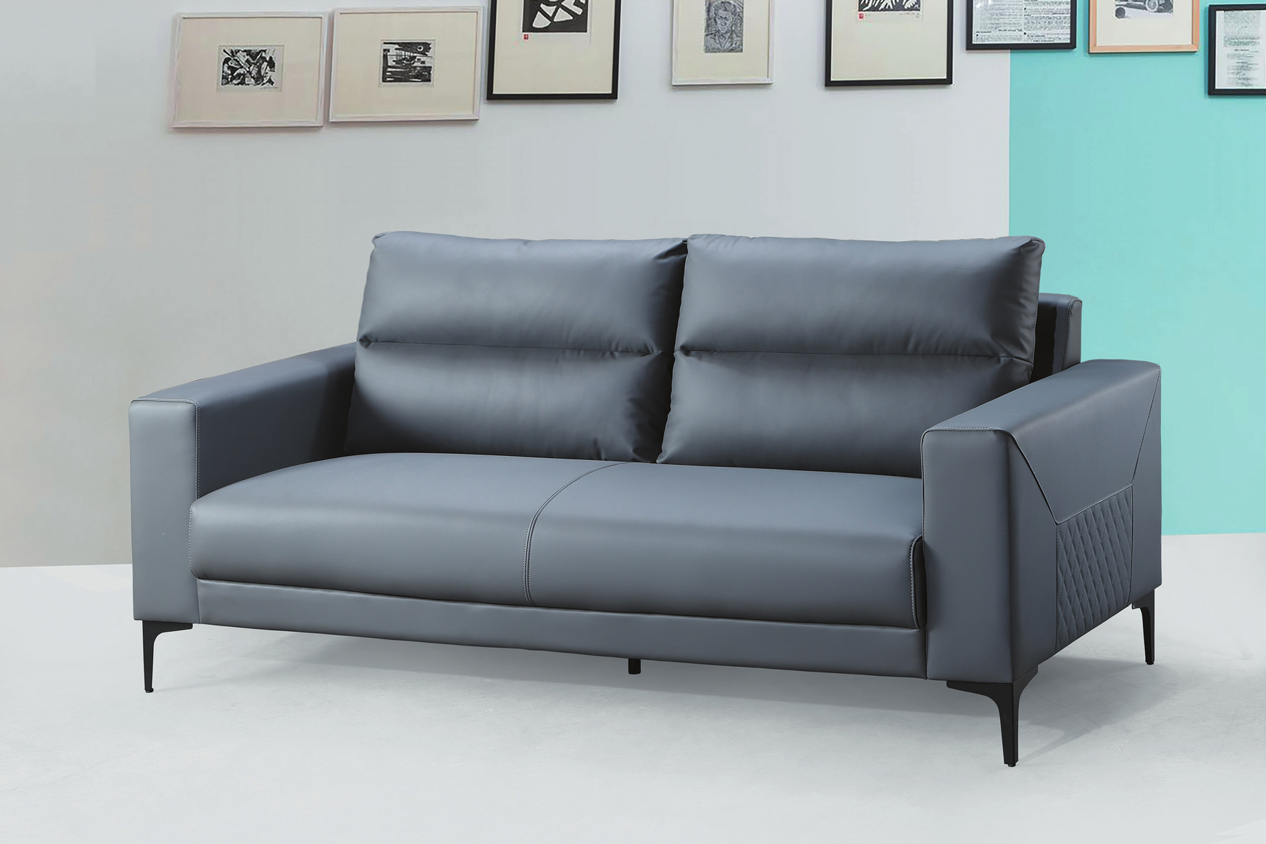 8175 深灰皮三人位沙發