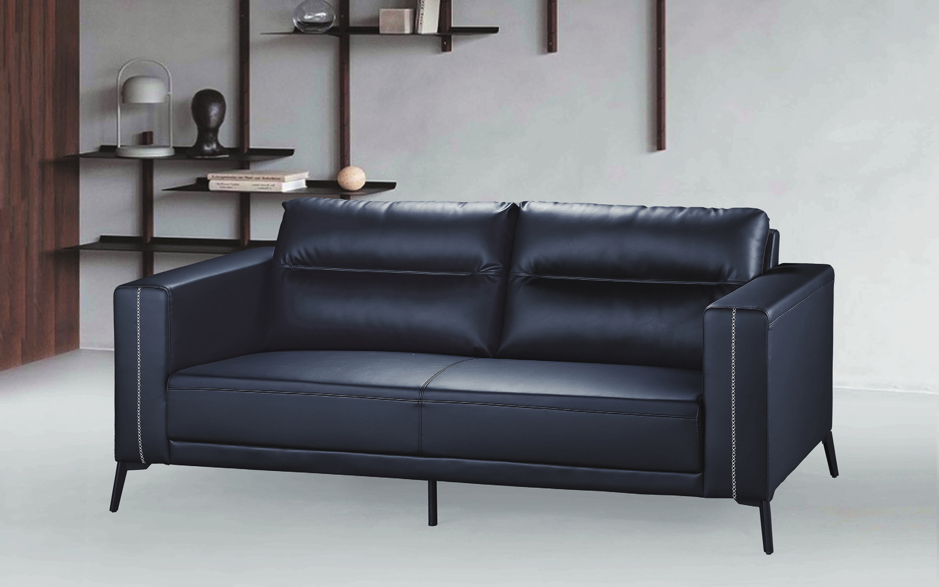 DM110三人位黑皮沙發