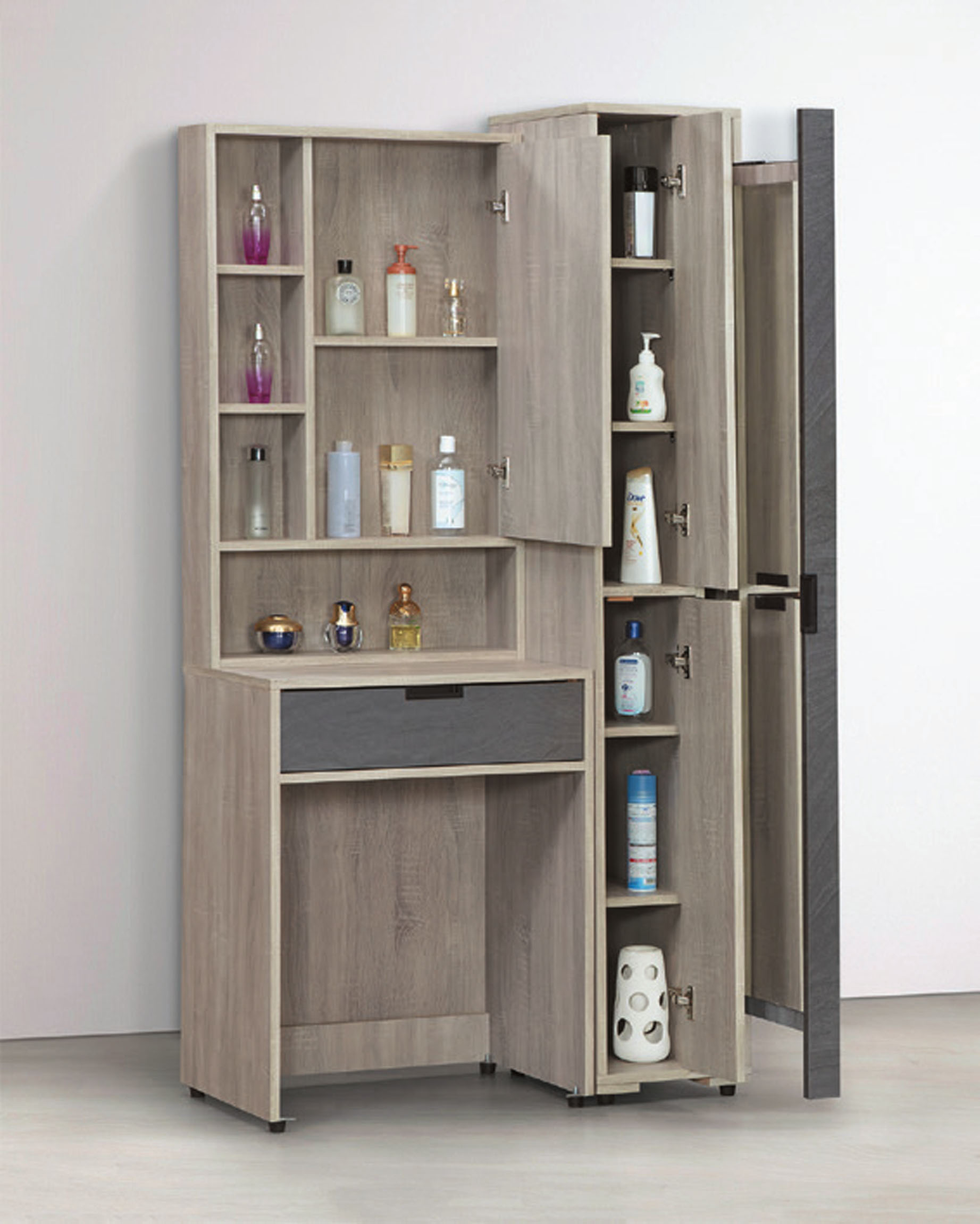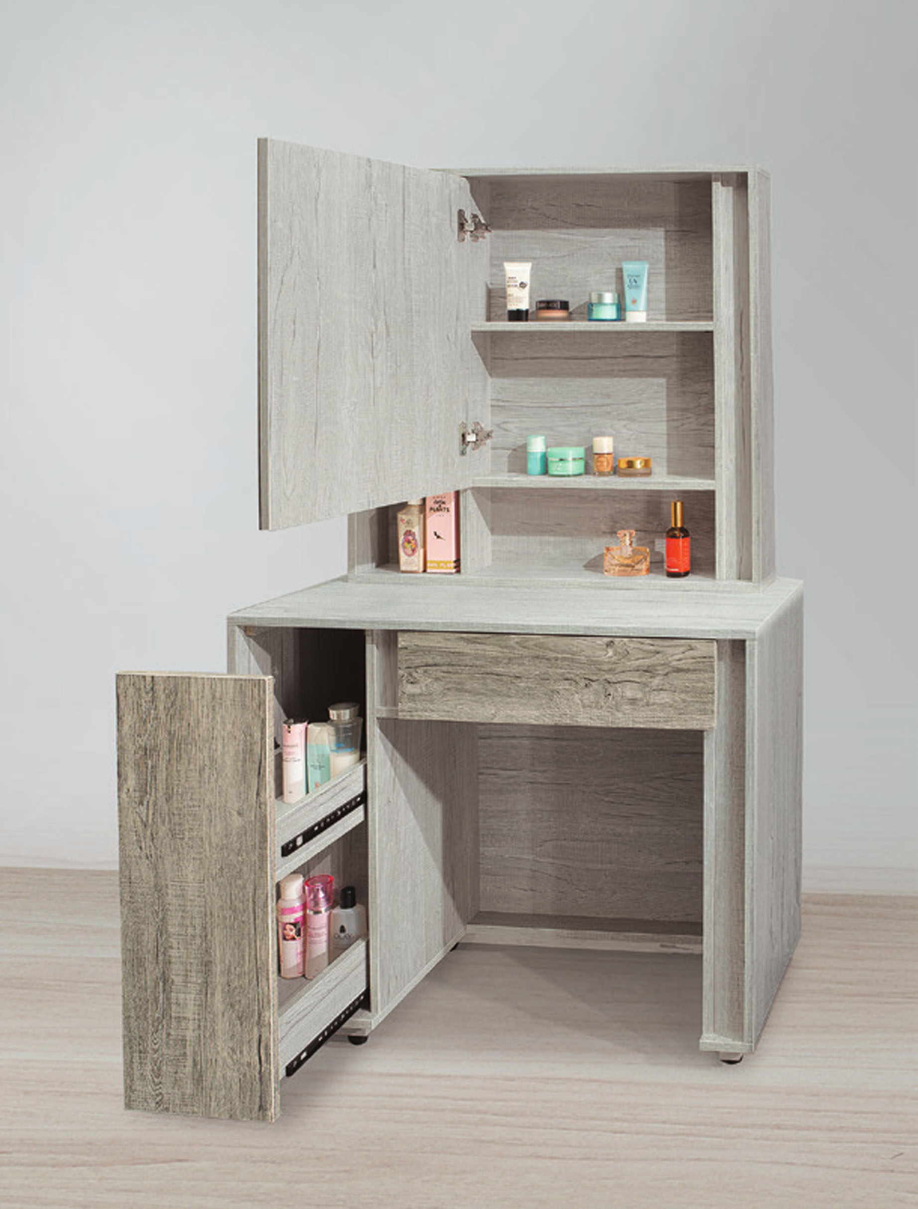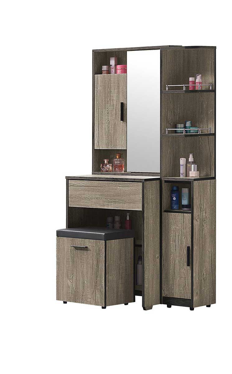 拉比灰橡2.7尺掀式鏡台(含椅)