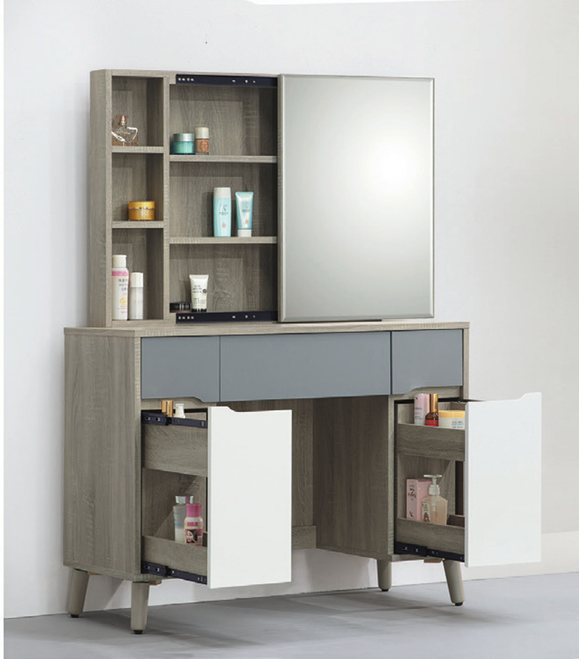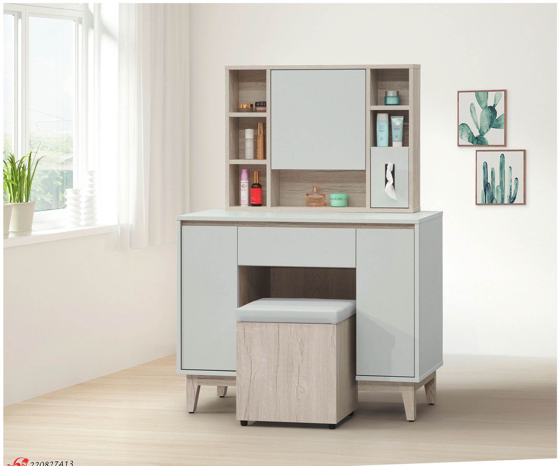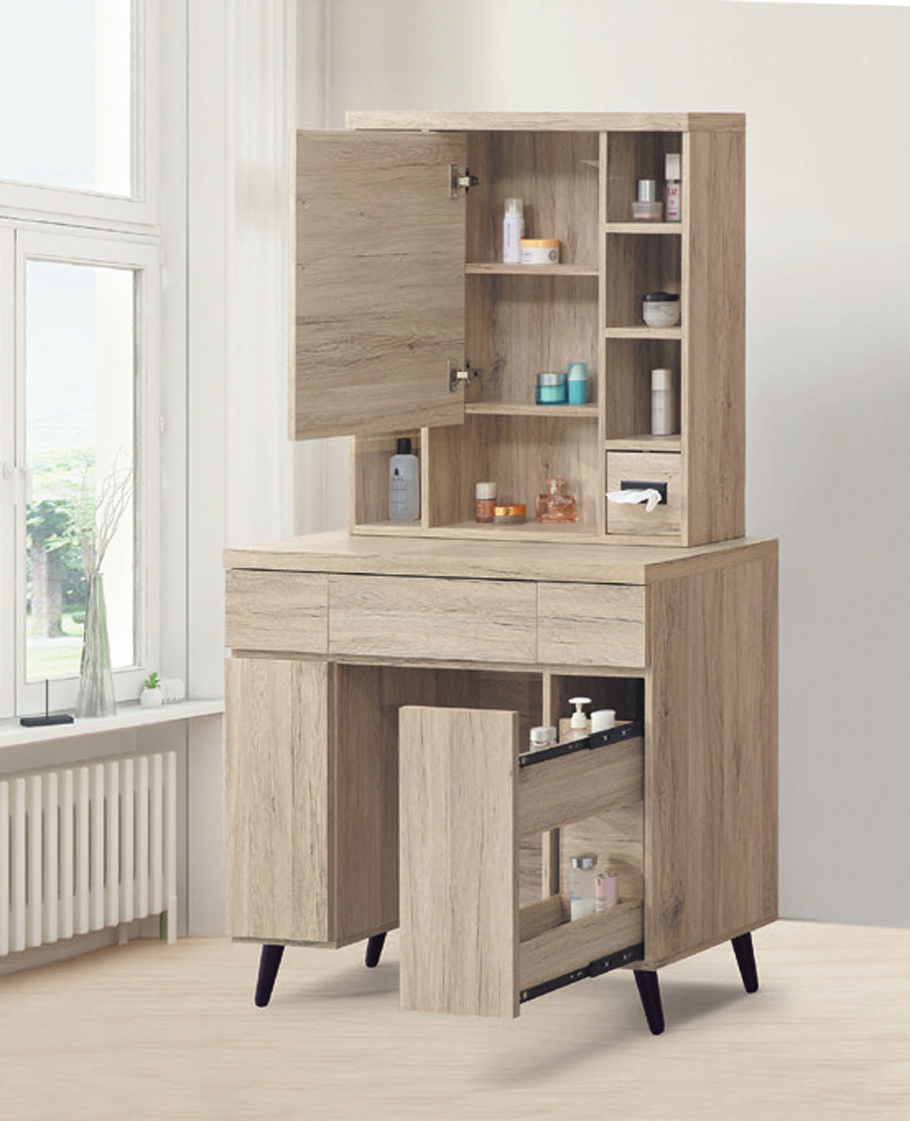 拉比灰橡2.7尺掀式鏡台(含椅)