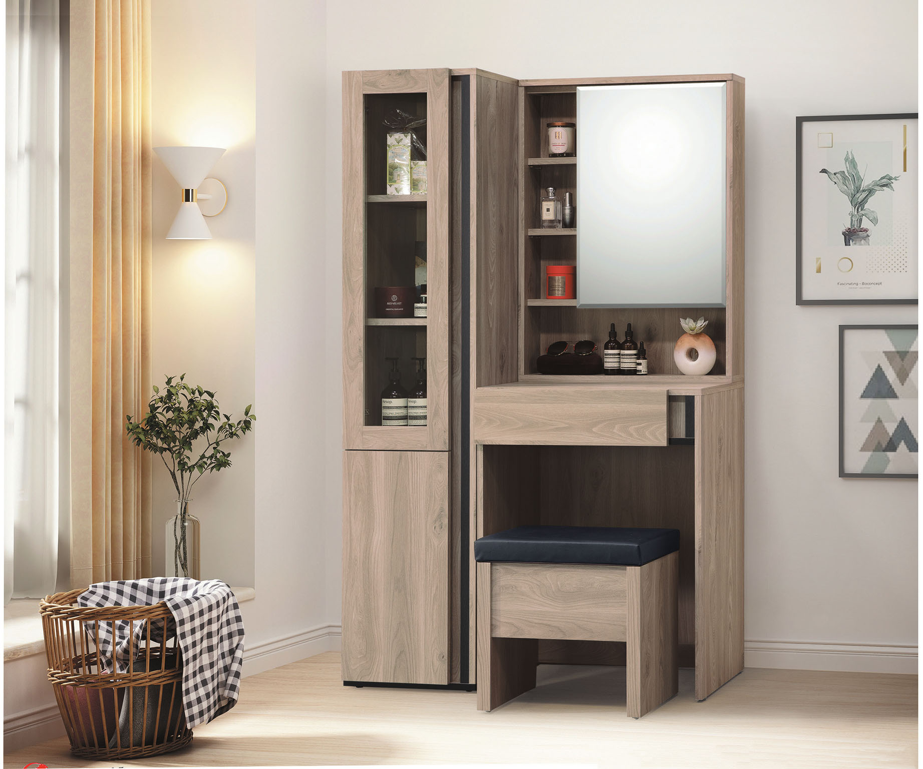 法諾梧桐色2.7尺掀式鏡台(含椅)